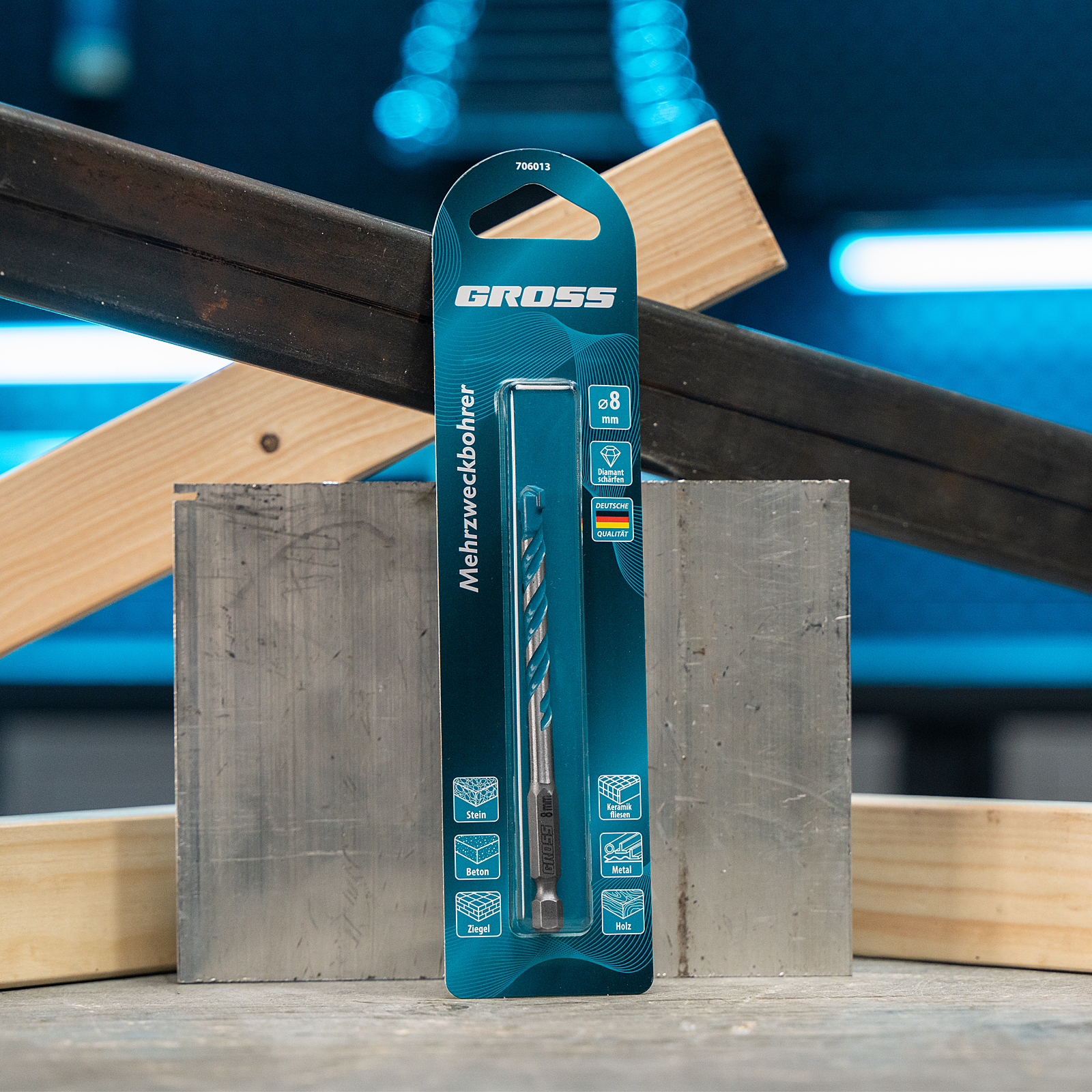 Универсальное сверло Gross Multipurpose PRO 706013 позволяет получать отверстия диаметром 8 мм в бетоне, камне и кирпиче. Подходит также для сверления древесины, металла и керамической плитки, что позволяет быстро переключаться между задачами без замены оснастки. Сверло пригодится при проведении строительных и ремонтных работ.