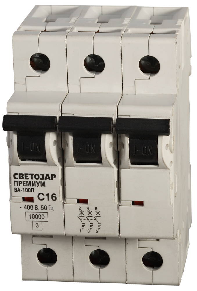 Автоматический 3-полюсный выключатель СВЕТОЗАР ″ПРЕМИУМ″ ″C″, 10 кА, 400 В выполняет функцию защиты установок от перегрузок и коротких замыканий. Он применяются в промышленных зданиях. Главная особенность при выборе выключателя: он должен соответствовать напряжению и расчётному току цепи. Прибор выключает сеть при 5-10 кратном превышении номинальной силы тока. Выключатель превосходит параметры ГОСТ (от -5°С до +40°С), поскольку устойчив к температурам от -40°С до +45°С.
