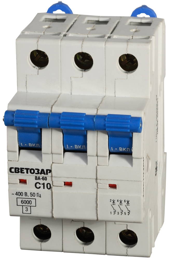 СВЕТОЗАР ВА-60, 3P, 10А, C, 6кА, автоматический выключатель (SV-49063-10-C)
