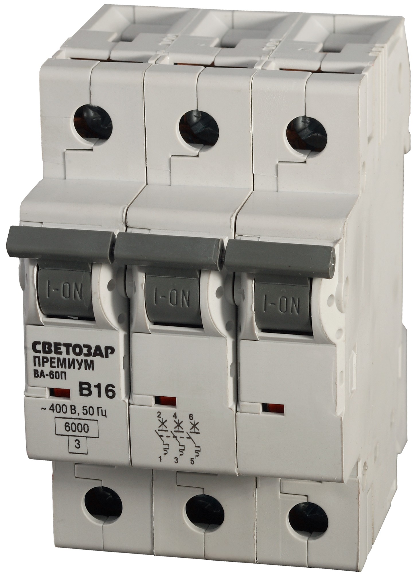 Автоматический 3-полюсный выключатель СВЕТОЗАР ″ПРЕМИУМ″ ″B″, 6 кА, 400 В предназначен для защиты электрических сетей жилых и административных зданий. Он образует размыкание цепи при перегрузке в сети и коротком замыкании. Прибор выключает сеть при 3-5 кратном превышении номинальной силы тока. Выключатель превосходит параметры ГОСТ (от -5°С до +40°С), поскольку устойчив к температурам от -40°С до +45°С.