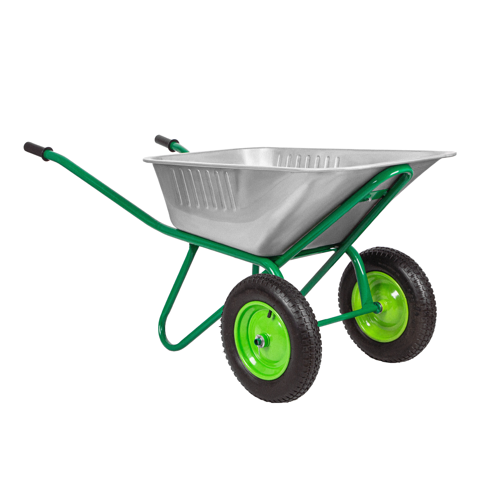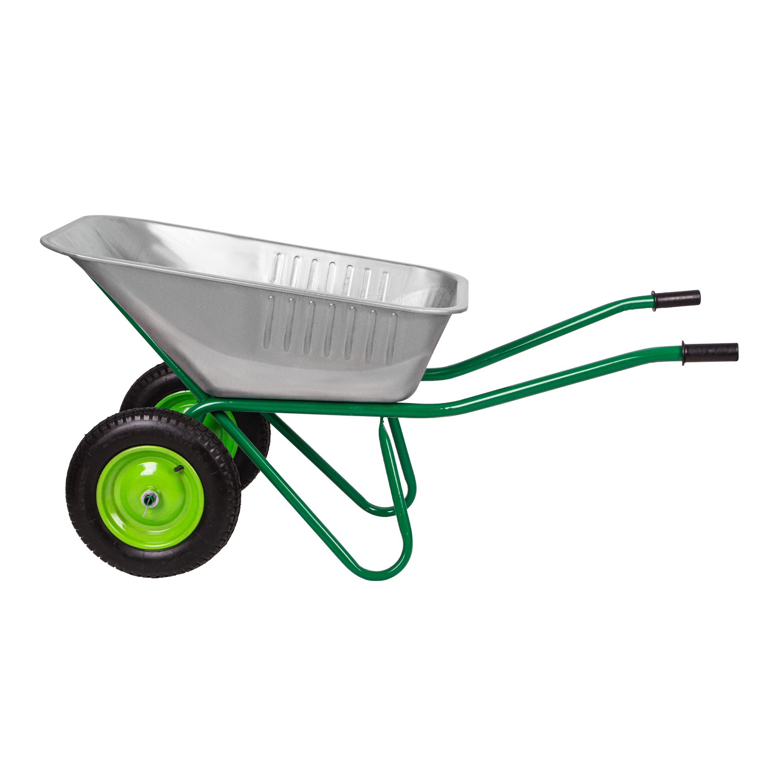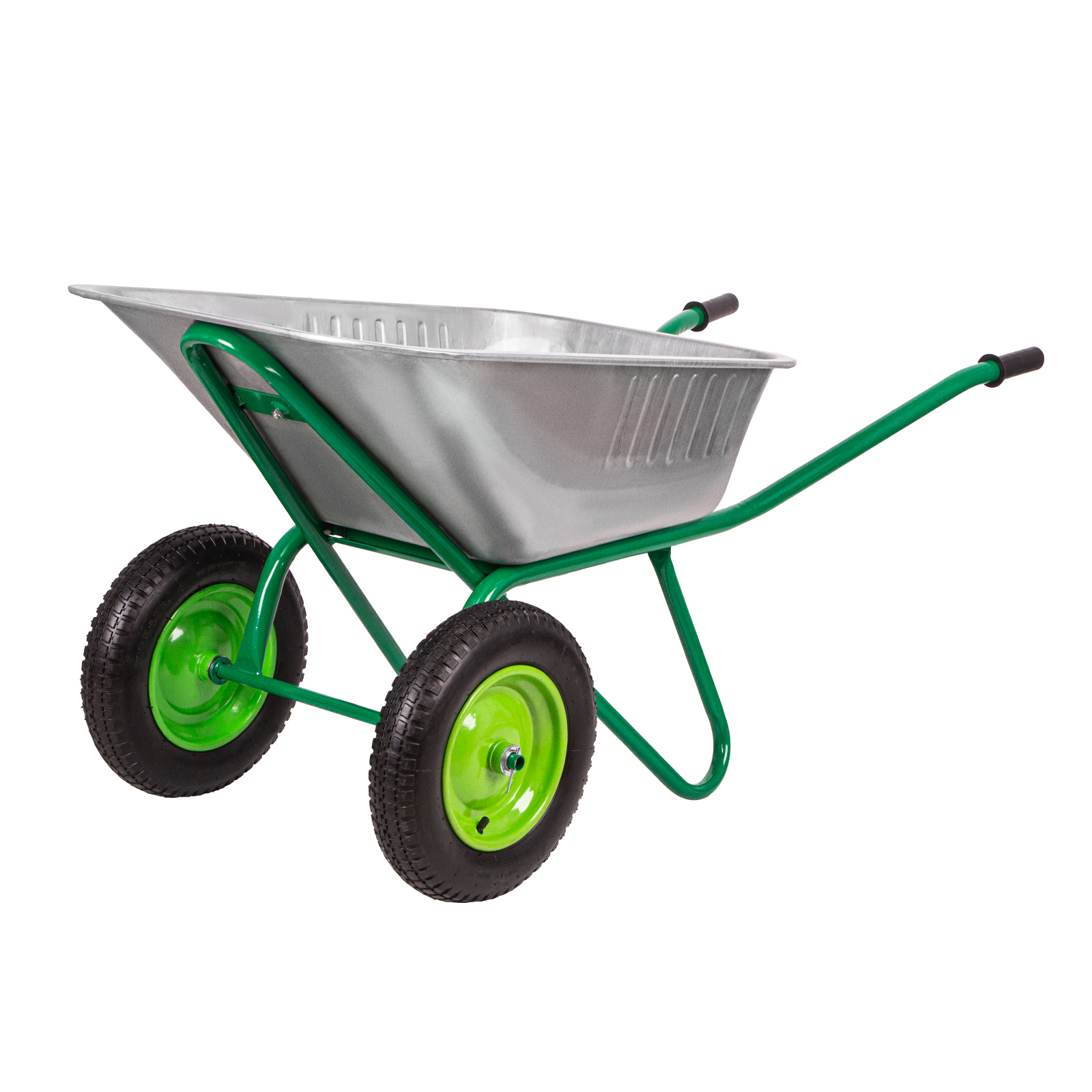 - Двухколесная конструкция — тачка отличается повышенной устойчивостью на поворотах, что особенно удобно при перемещении тяжелых и крупногабаритных грузов.