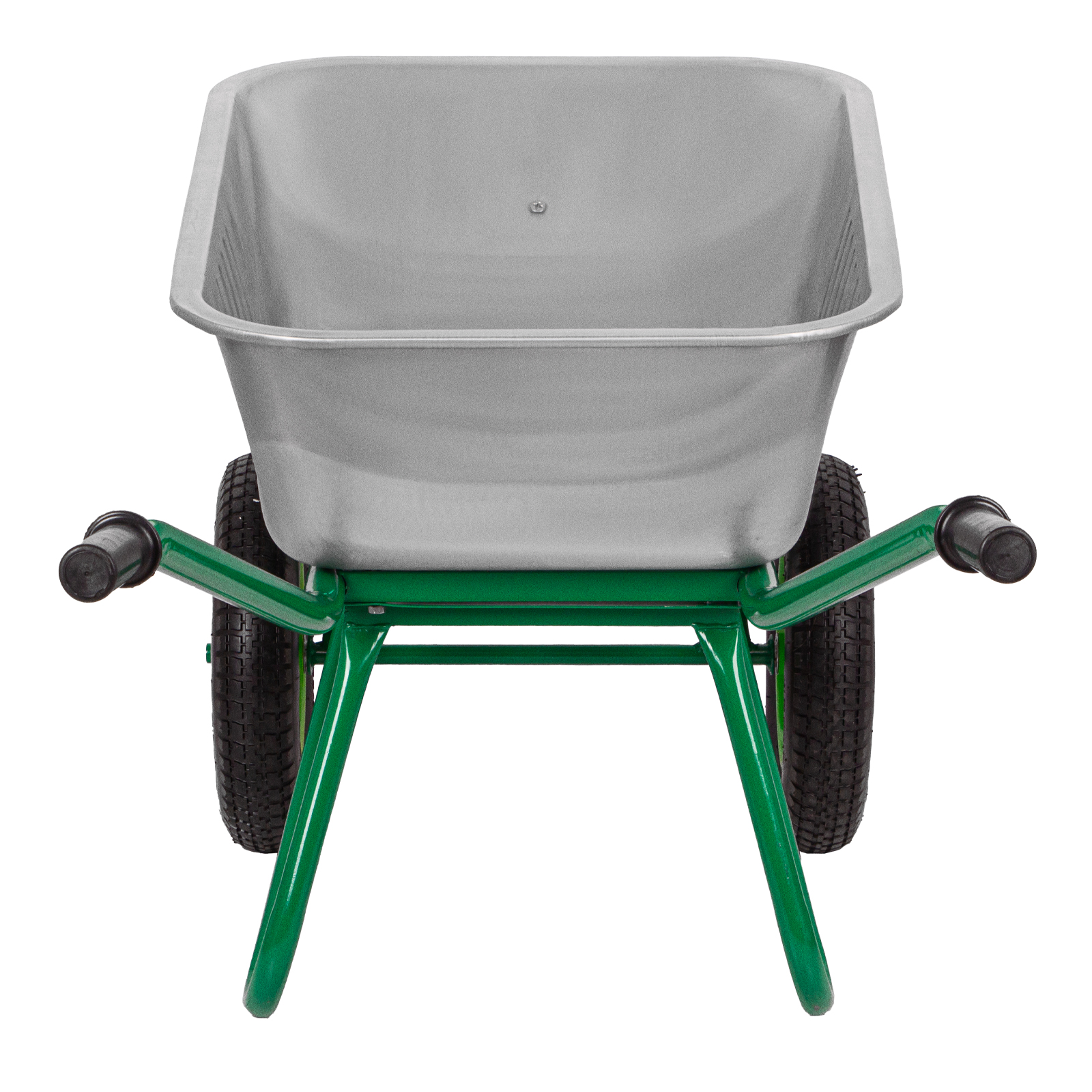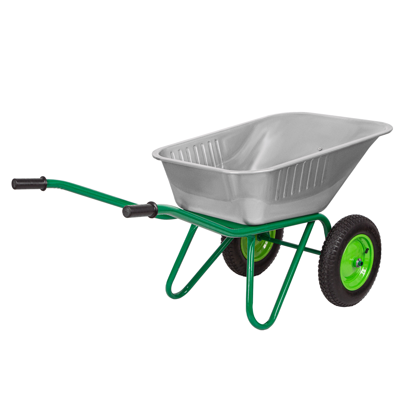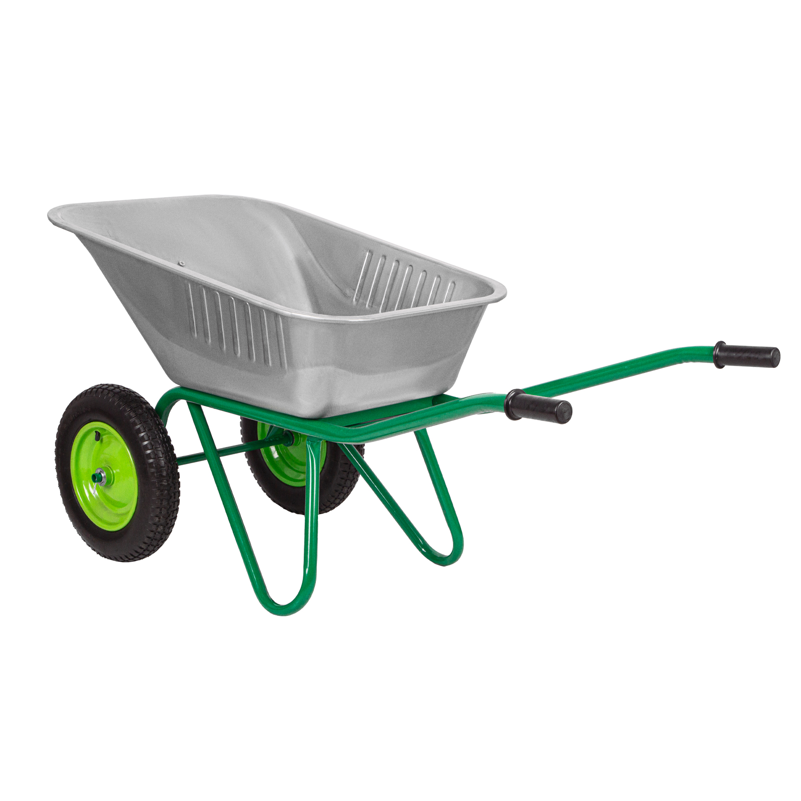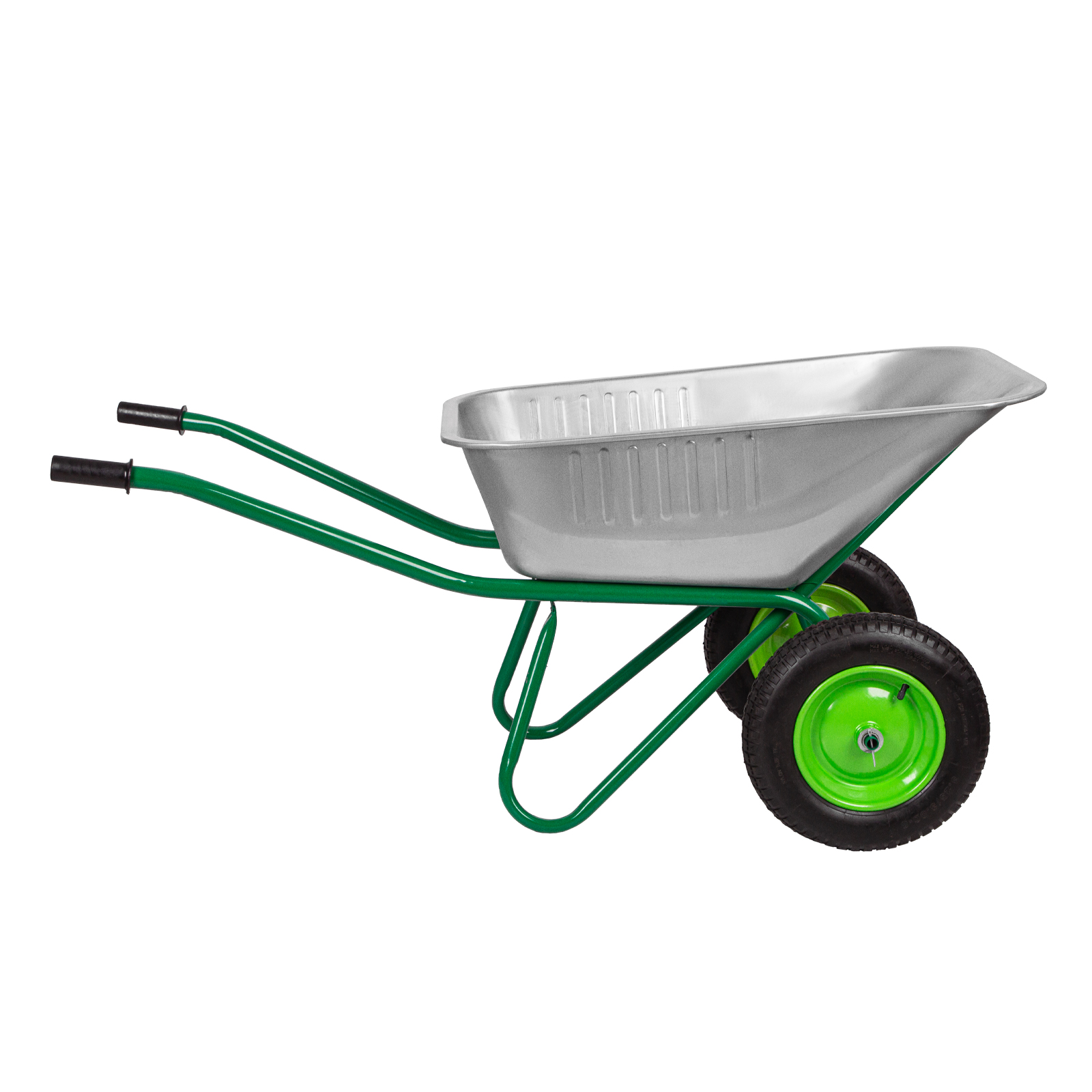 - Двухколесная конструкция — тачка отличается повышенной устойчивостью на поворотах, что особенно удобно при перемещении тяжелых и крупногабаритных грузов.