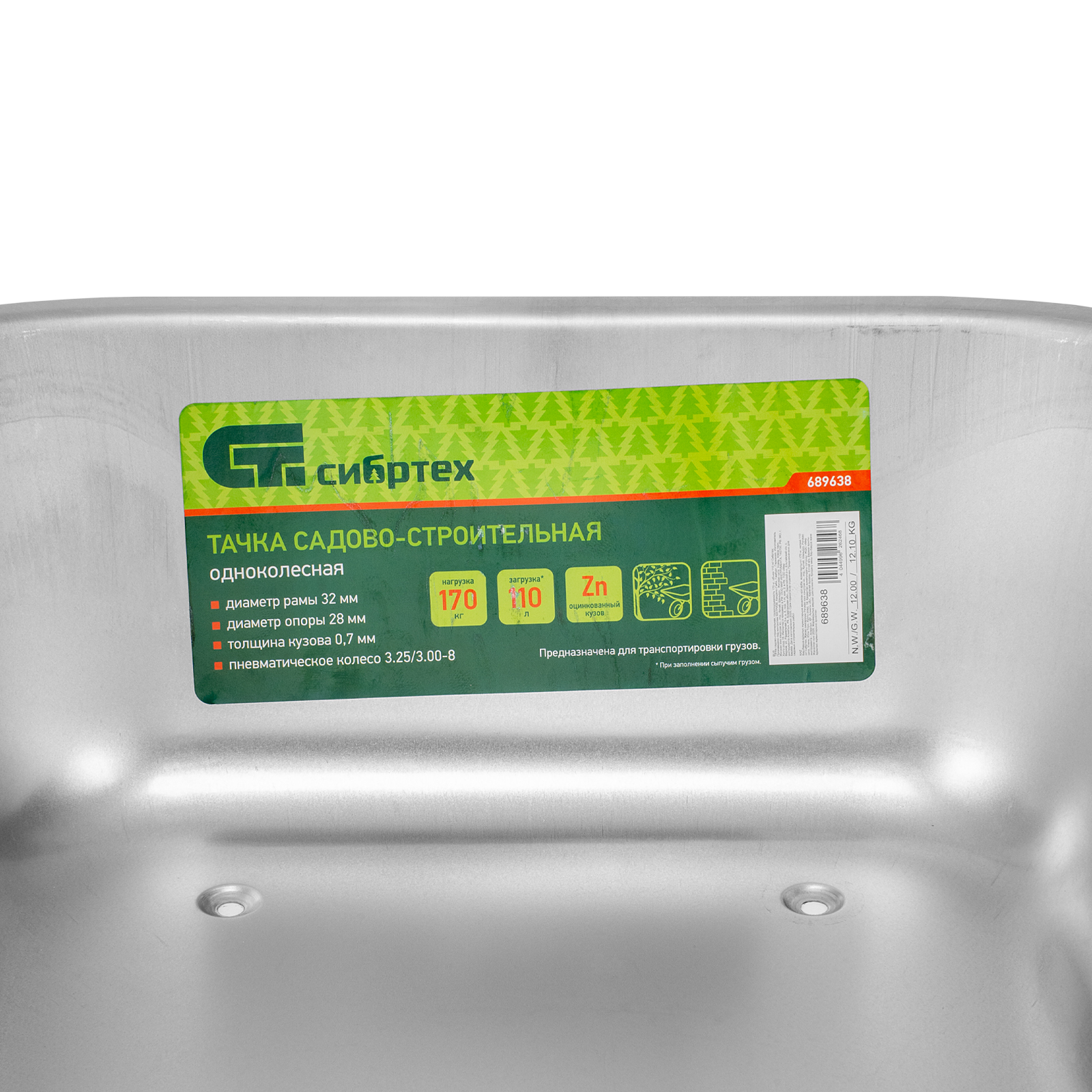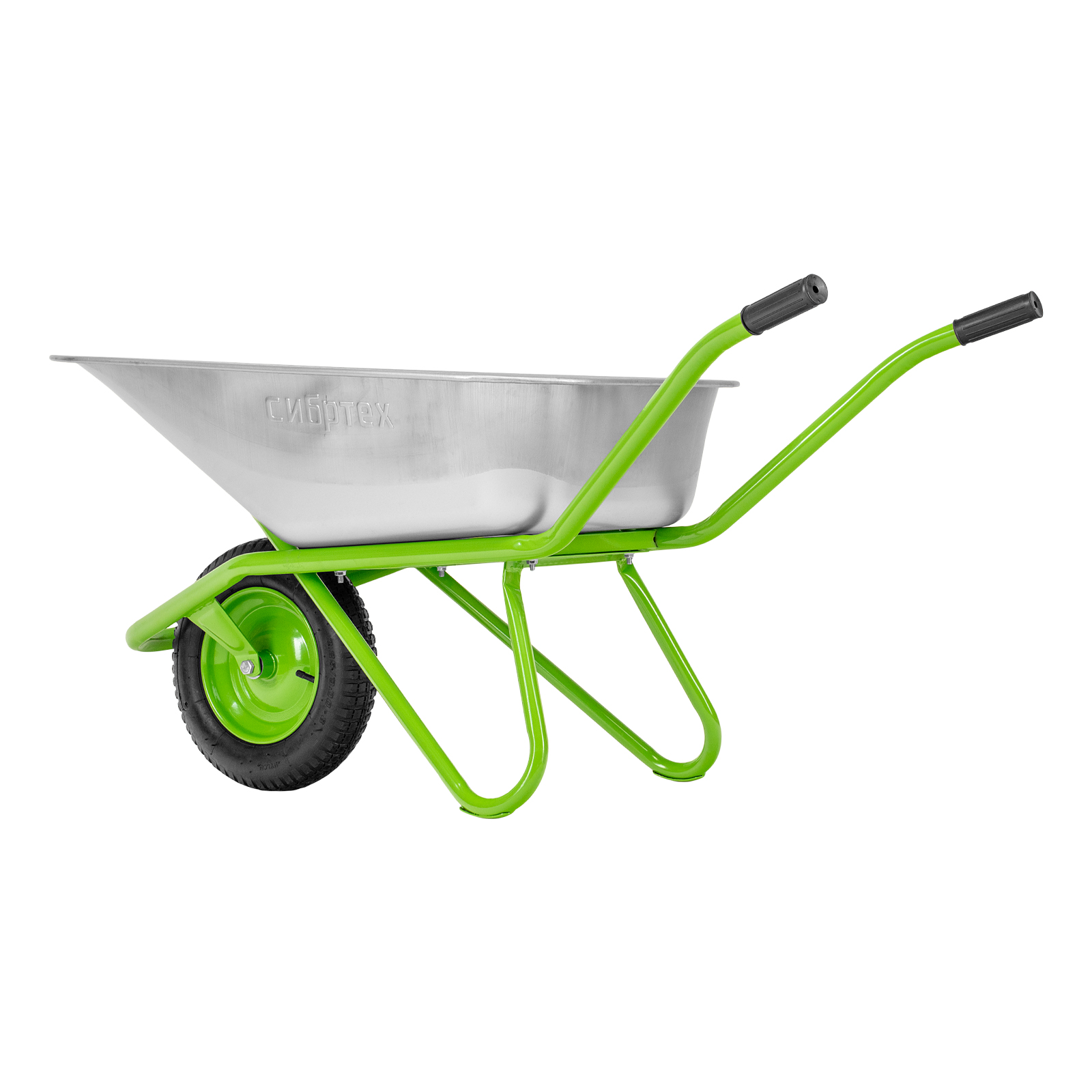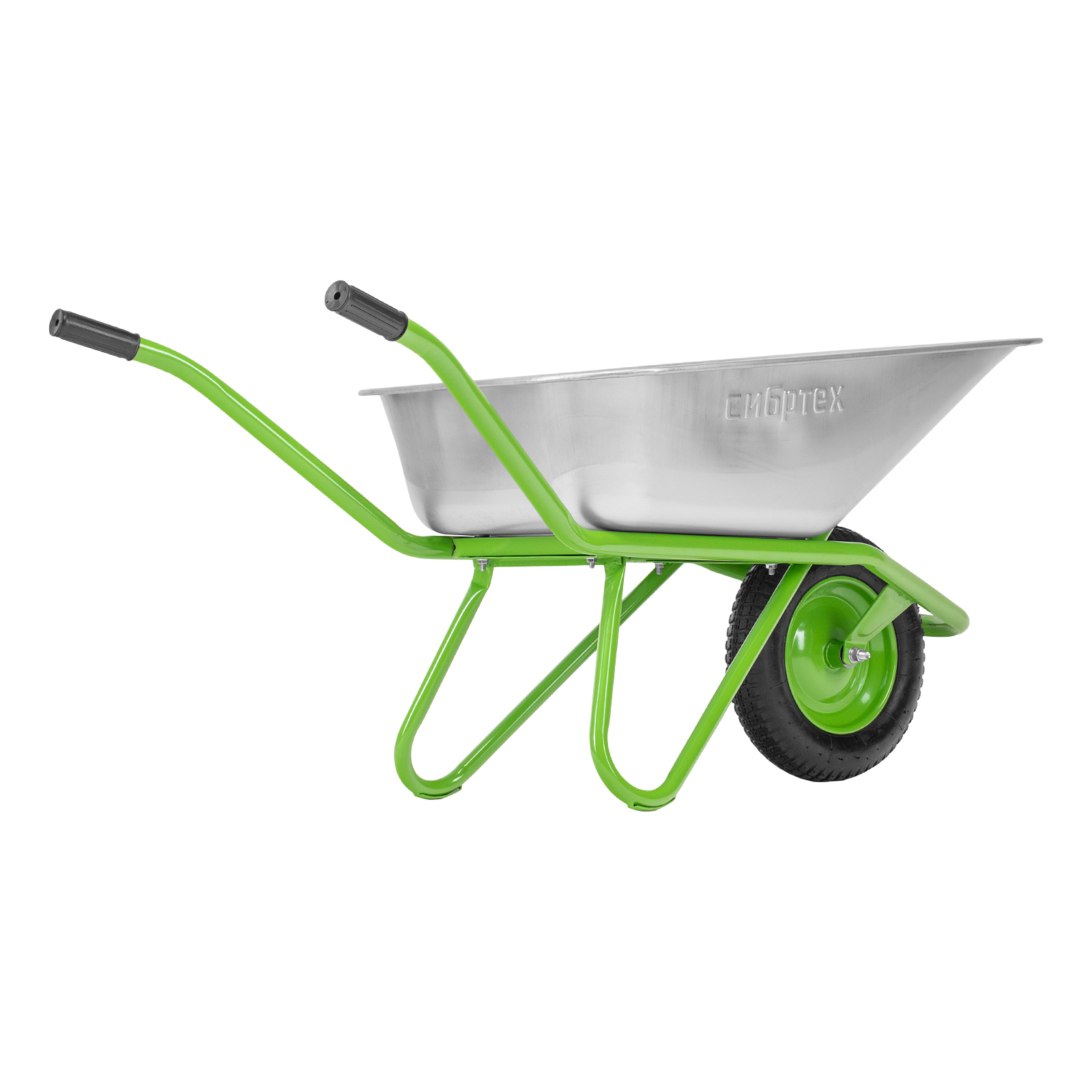 Садово-строительная тачка Сибртех 689638 грузоподъемностью 170 кг, с кузовом объемом 110 л, предназначена для транспортировки грузов. Подходит для перемещения сыпучих материалов (песка, цемента, гравия и т.д.), вывоза строительного и садового мусора, а также для перевозки грунта, дерна, мульчи и других грузов. Одноколесная тачка отличается повышенной маневренностью. Пневматическое колесо обеспечивает плавность хода. Тачка незаменима на строительной площадке, дачном участке, складе.