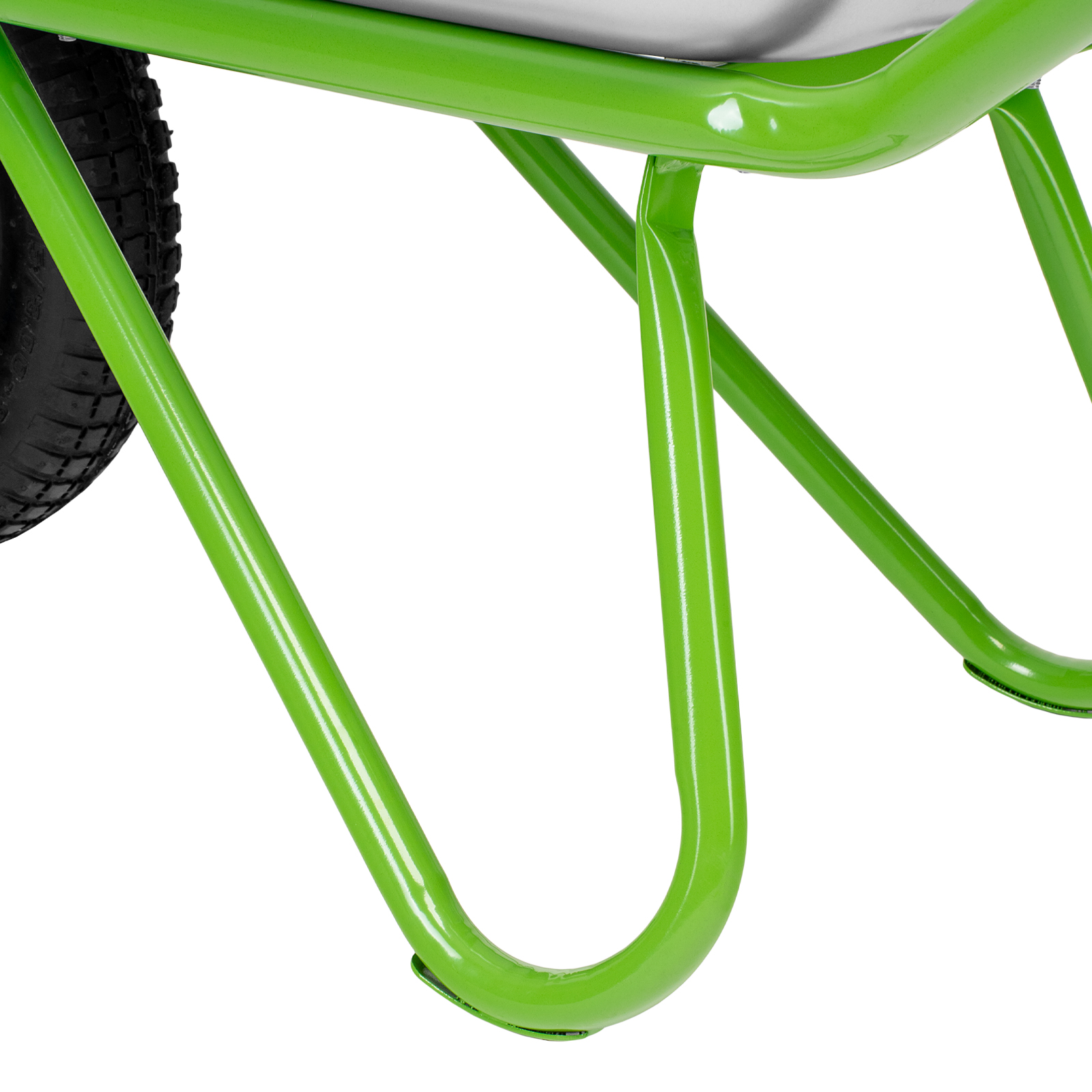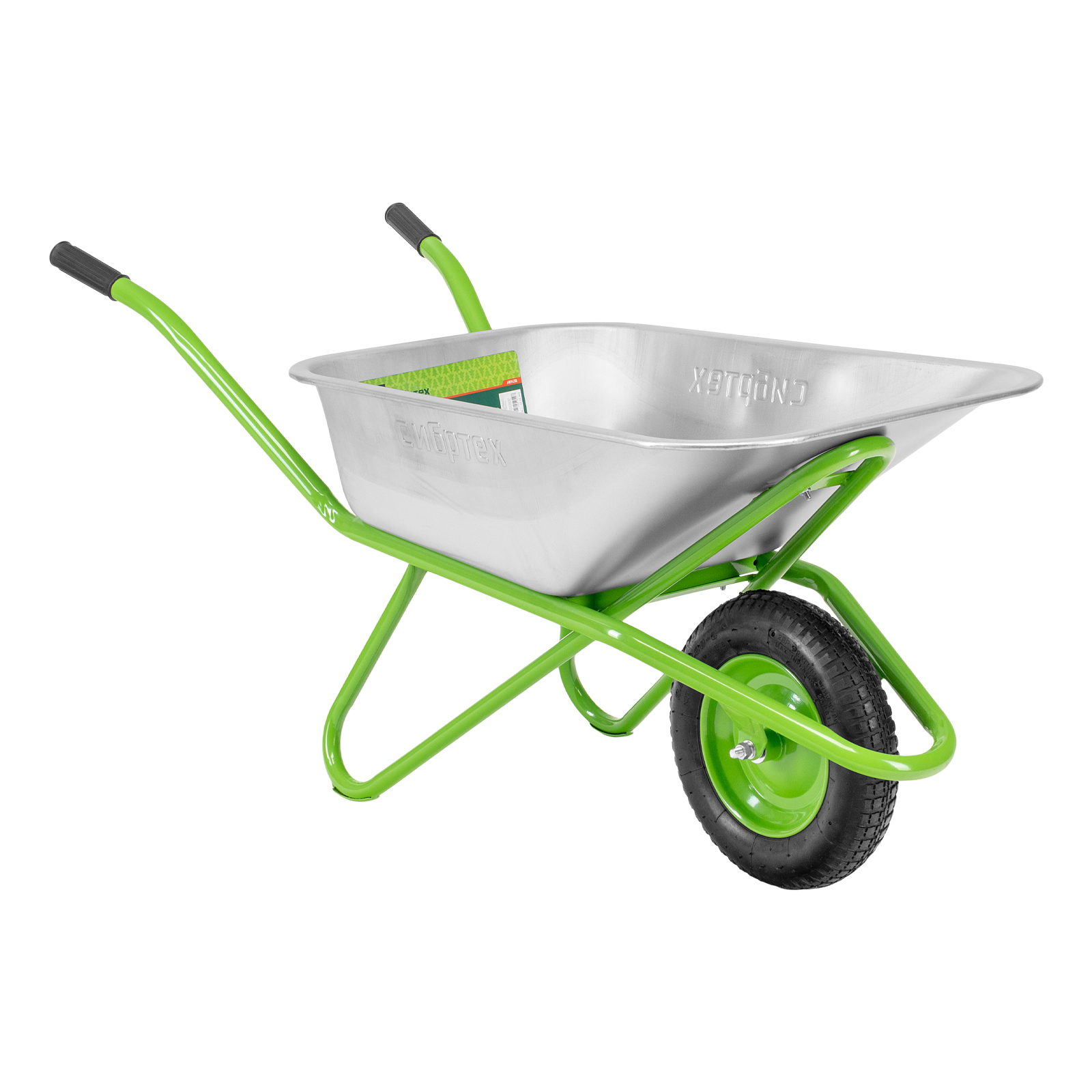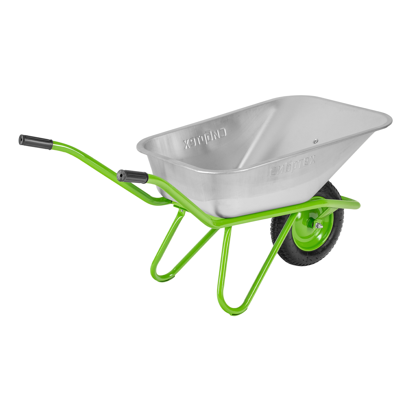 - Надежная конструкция — рама диаметром 32 мм и опора диаметром 25 мм изготовлены из стальной трубы с толщиной стенки 1 мм, поэтому тачка выдерживает нагрузку до 170 кг.