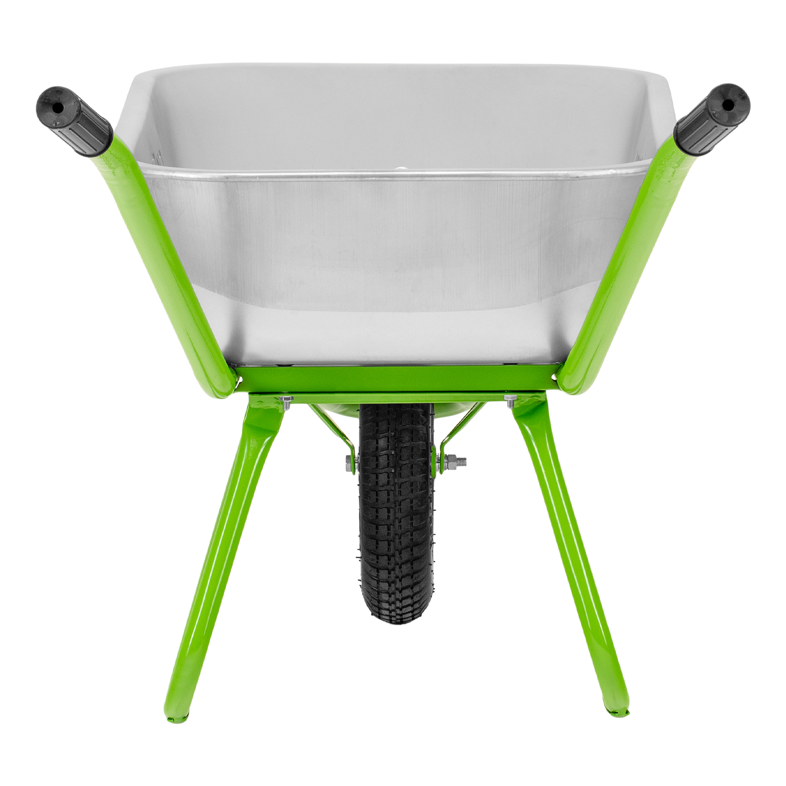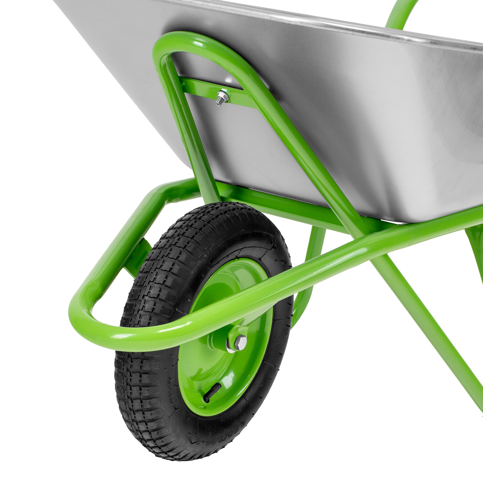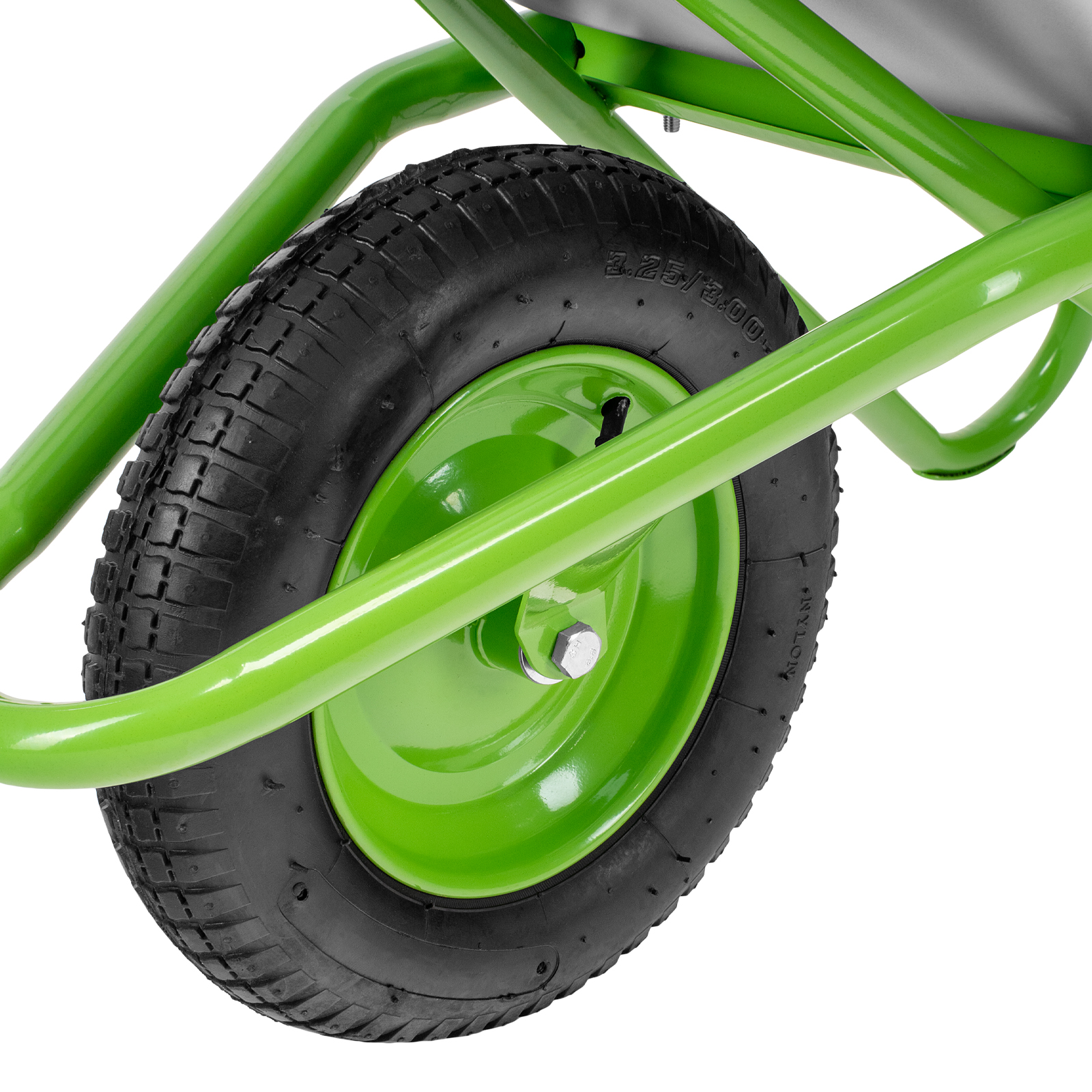 - Надежная конструкция — рама диаметром 32 мм и опора диаметром 25 мм изготовлены из стальной трубы с толщиной стенки 1 мм, поэтому тачка выдерживает нагрузку до 170 кг.