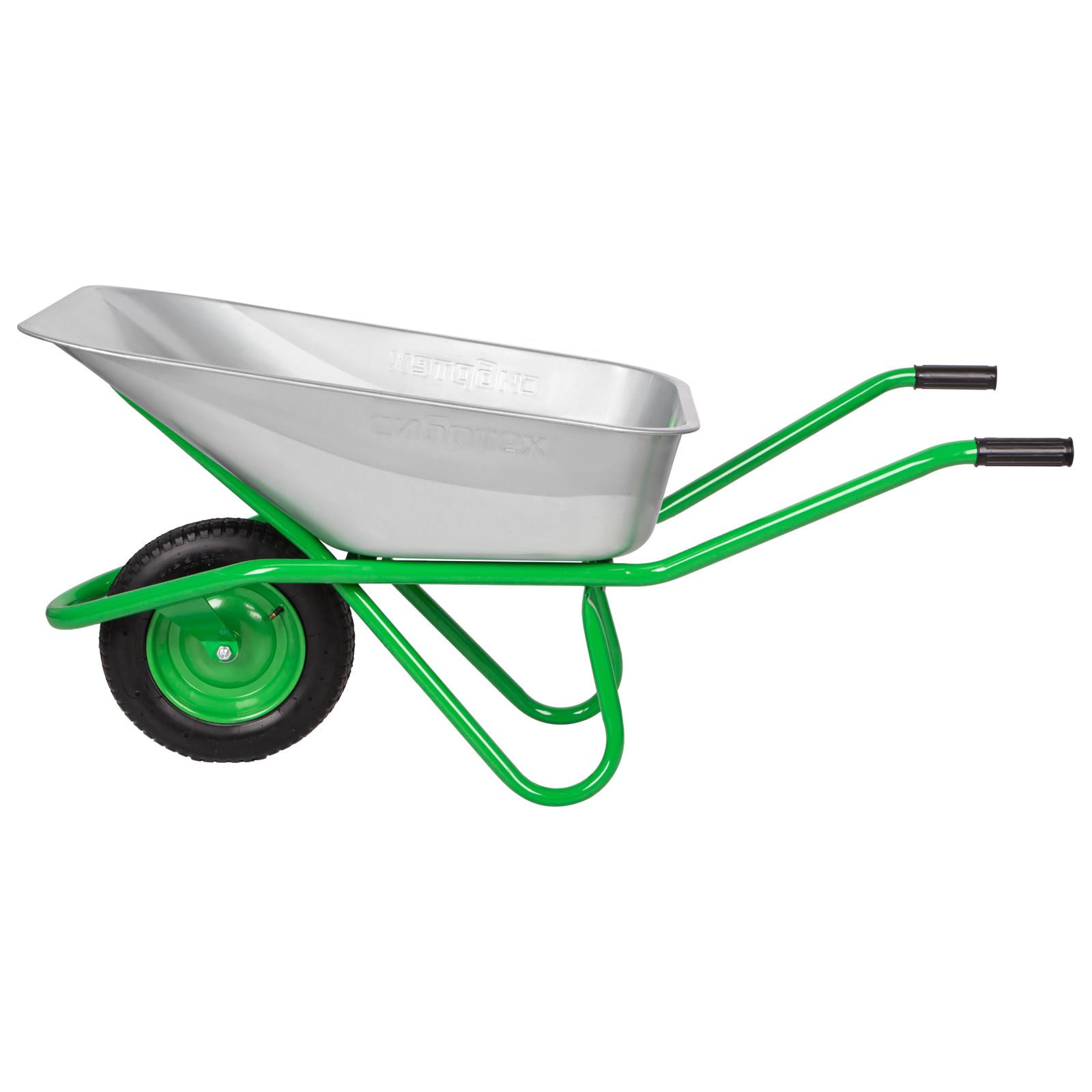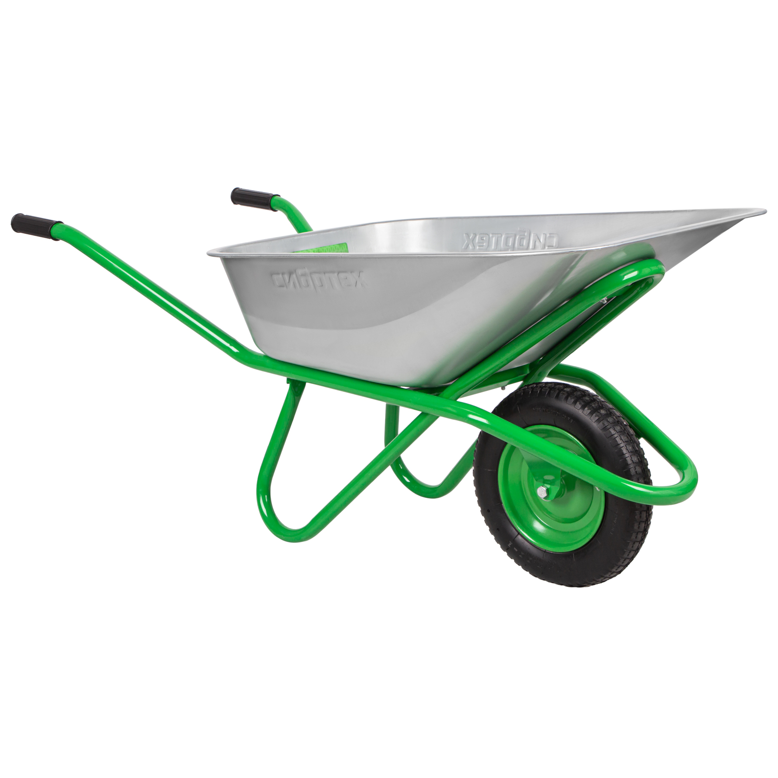 - Высокая грузоподъемность — переднюю часть кузова поддерживает дополнительная опора, поэтому тачка выдерживает вес до 170 кг.