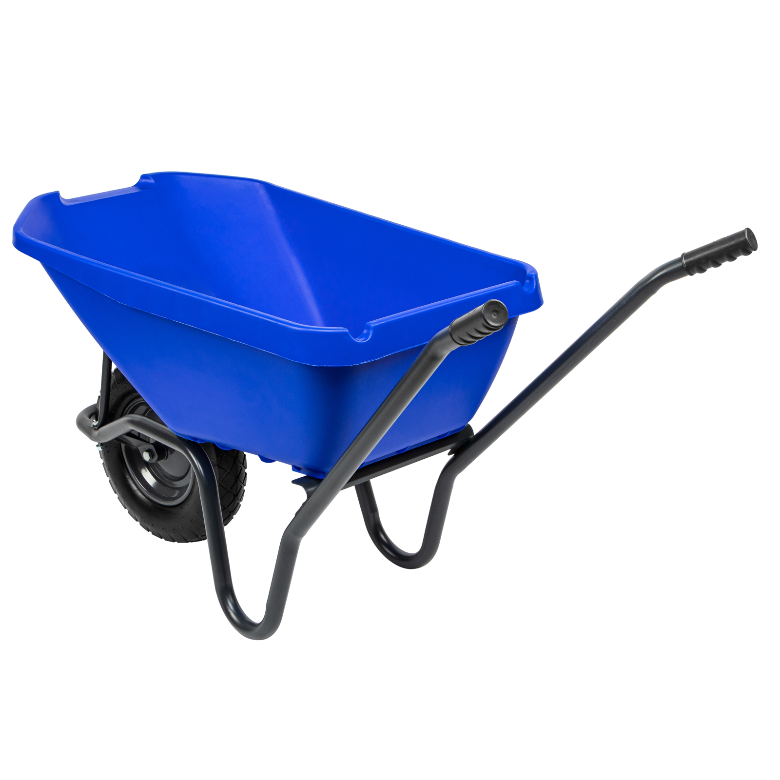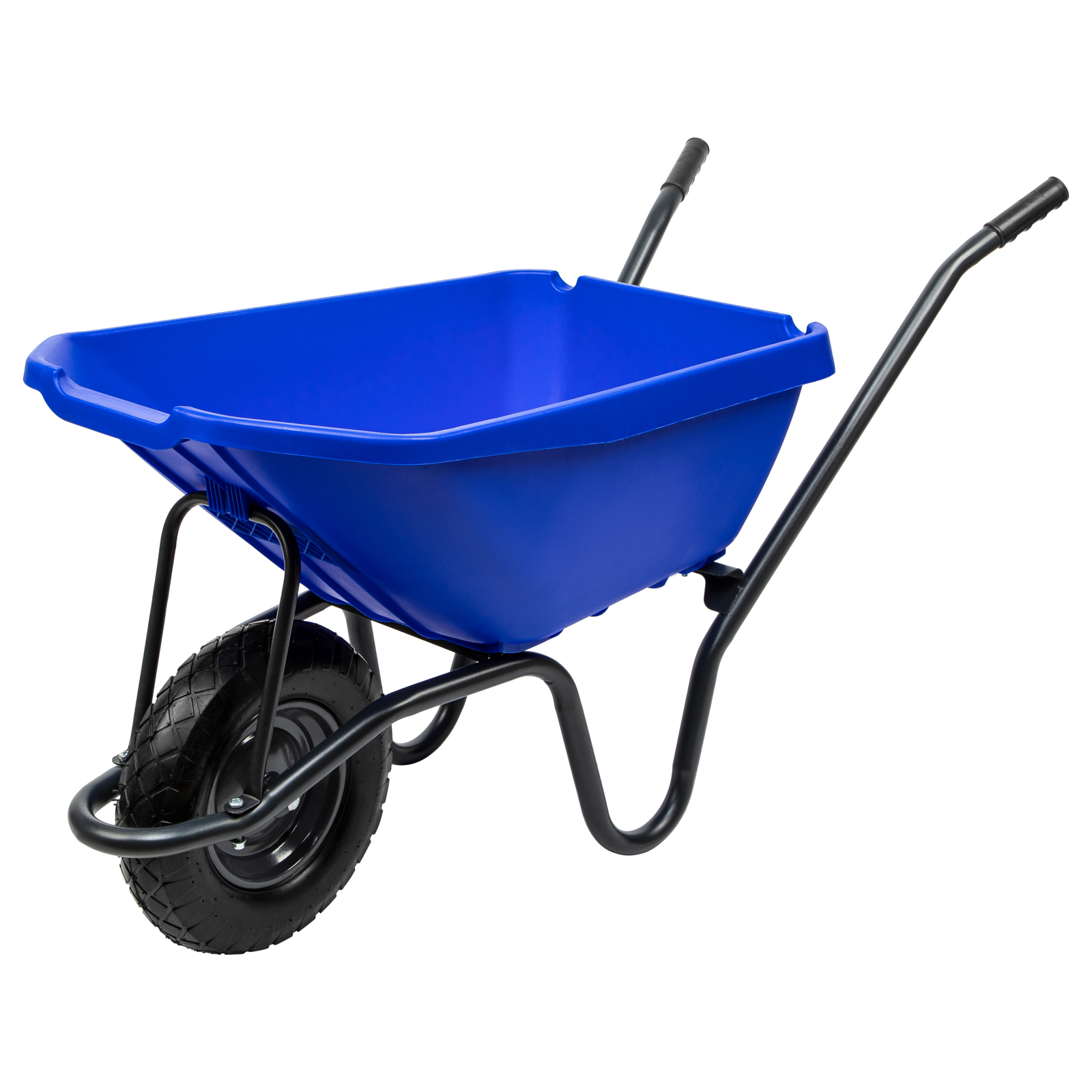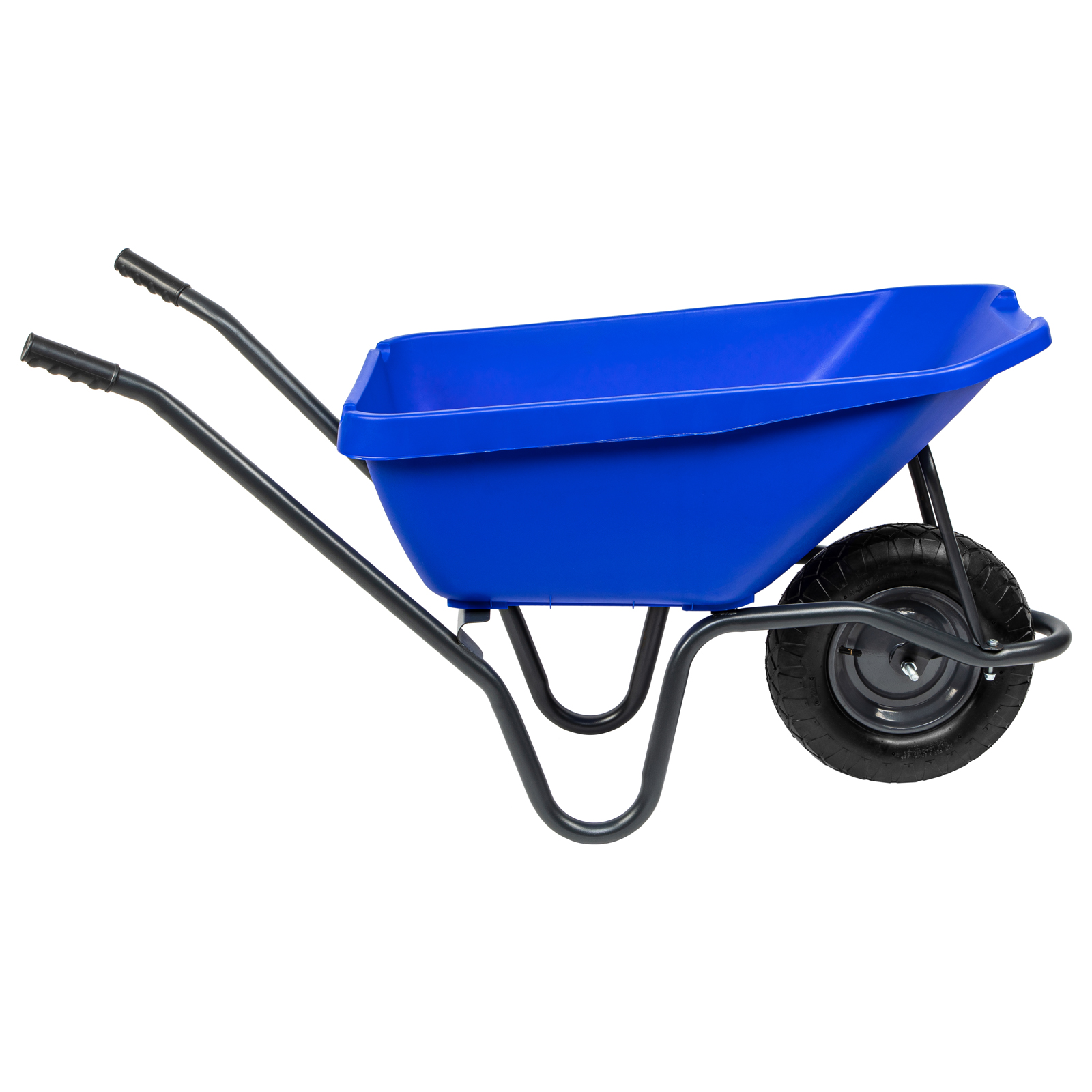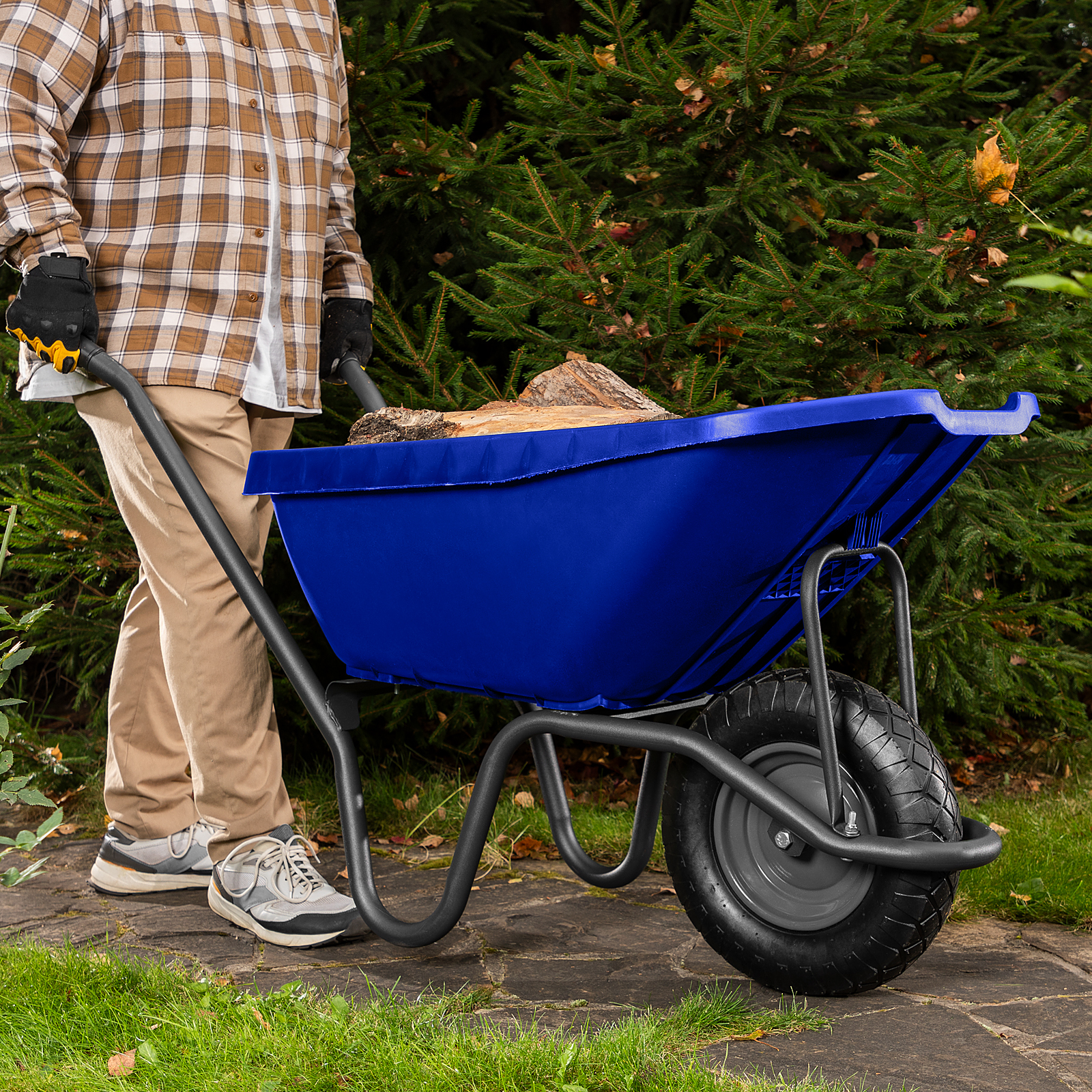 - Высокая грузоподъемность — тачка с корытом из полипропилена толщиной 3 мм и цельной рамой с толщиной стенок 1,2 мм выдерживает нагрузку до 175 кг.