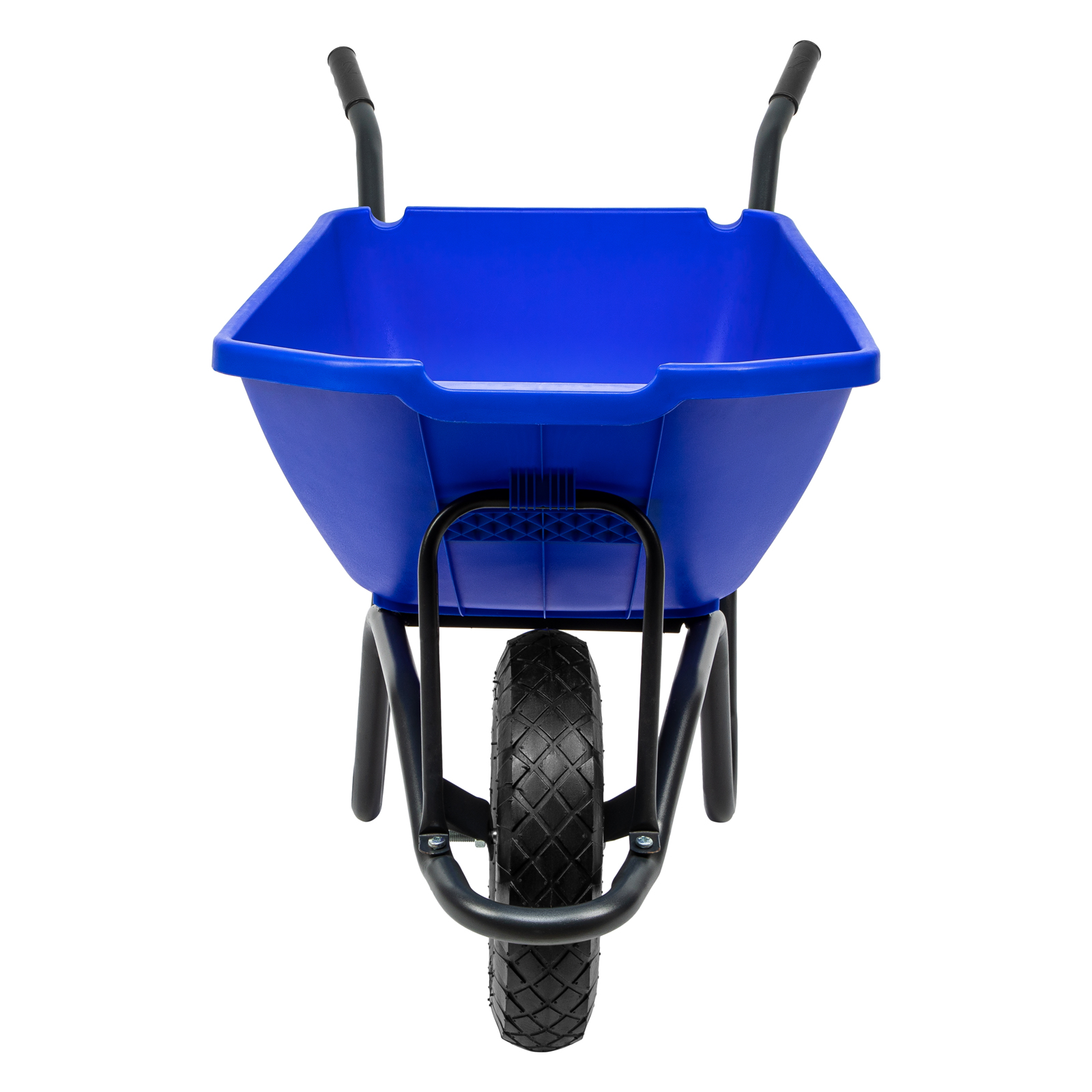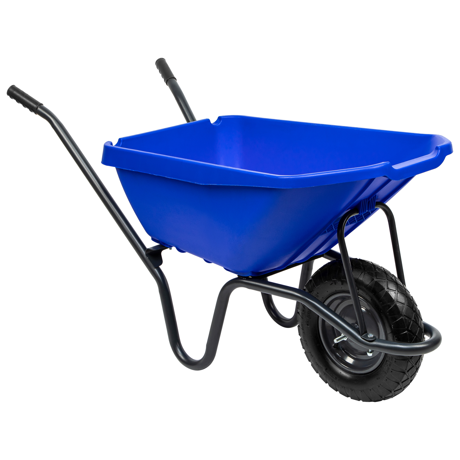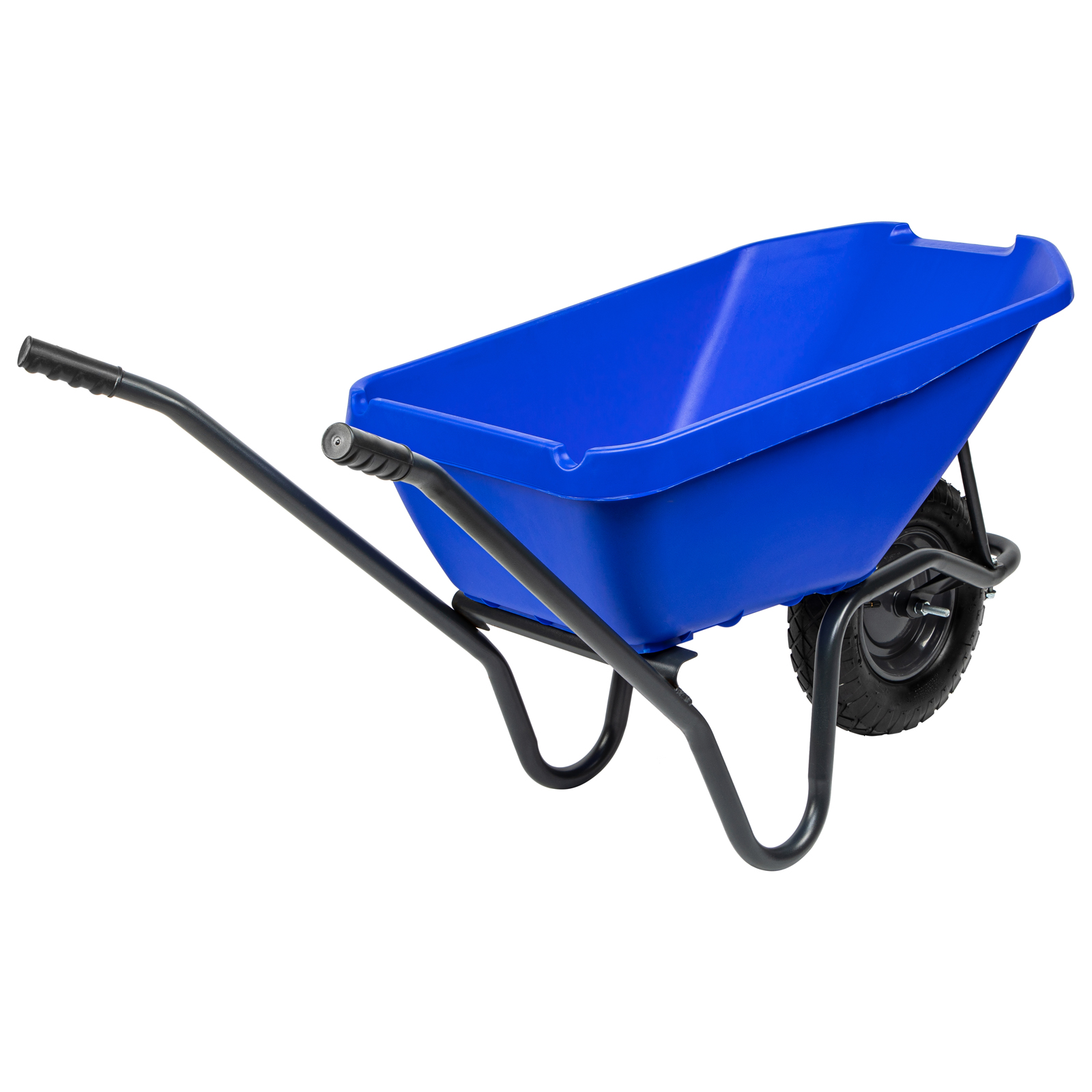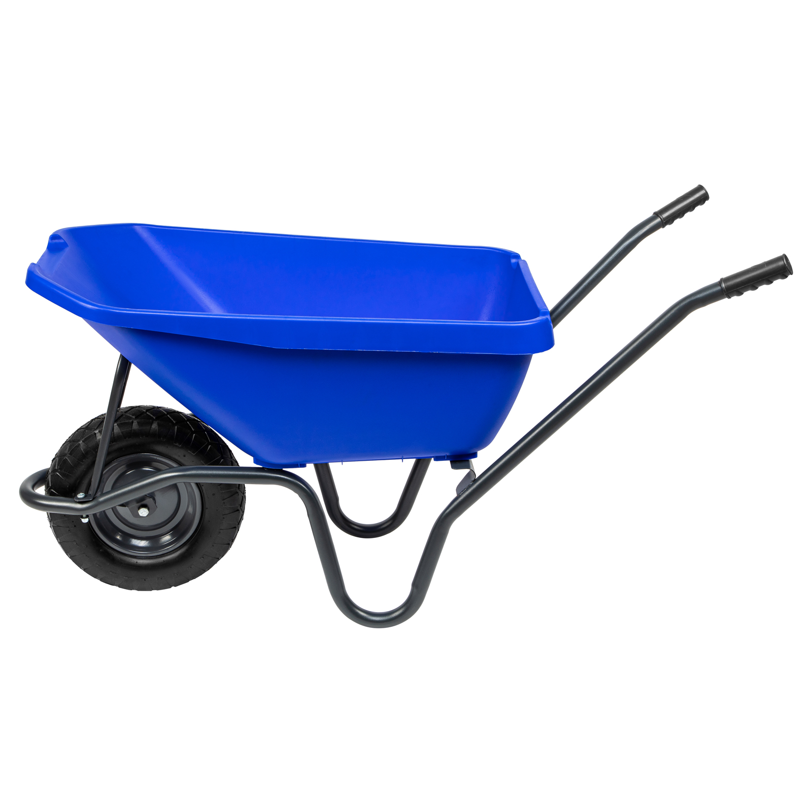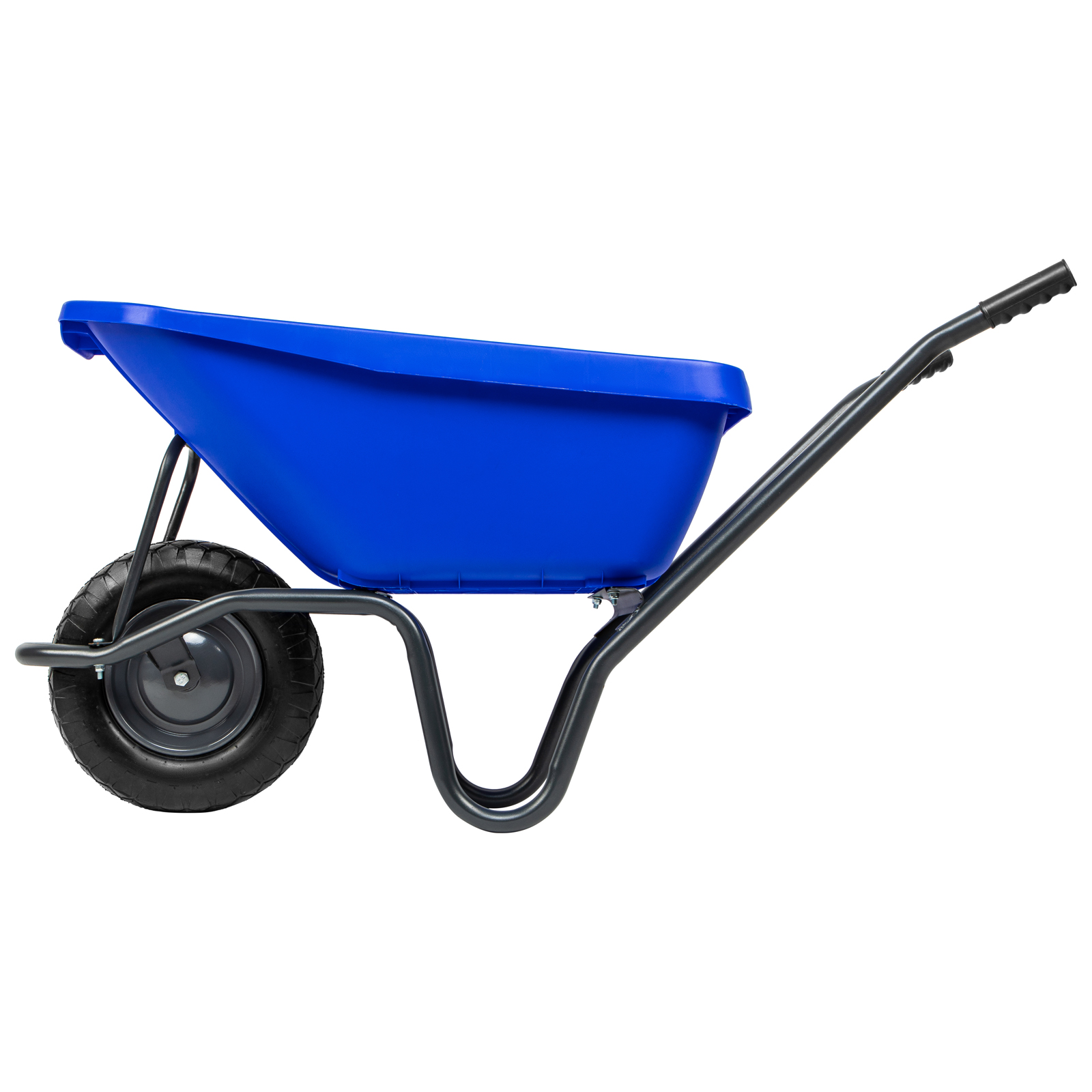 - Высокая грузоподъемность — тачка с корытом из полипропилена толщиной 3 мм и цельной рамой с толщиной стенок 1,2 мм выдерживает нагрузку до 175 кг.