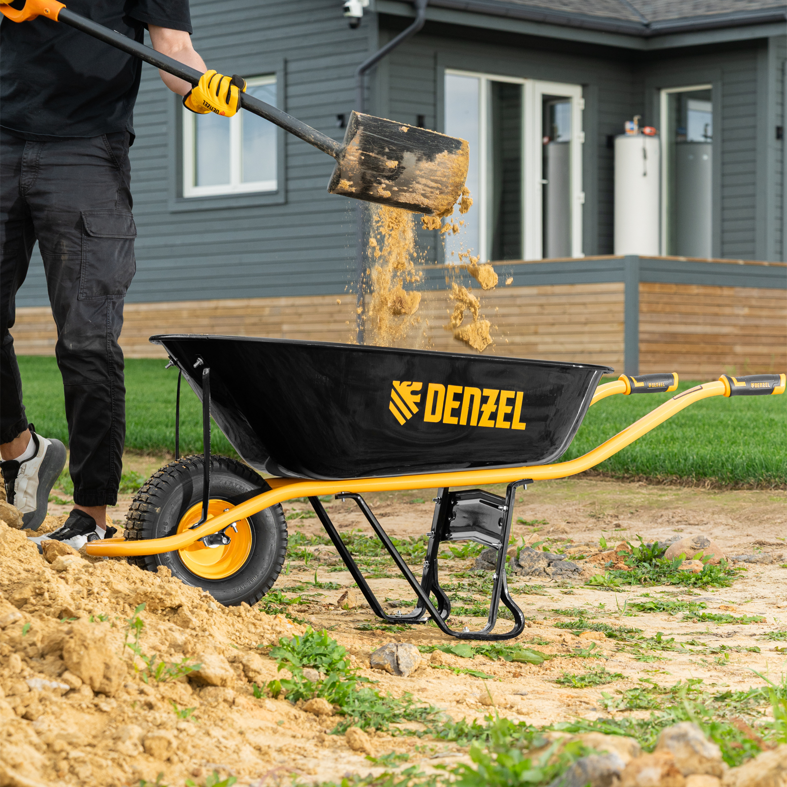 Усиленная строительная тачка Denzel 689965 с колесом 15 х 6.00-6, объемом 130 л и грузоподъемностью до 230 кг, предназначена для профессионального использования на строительной площадке и в сельском хозяйстве. С ее помощью можно транспортировать строительные грузы и различные сыпучие материалы.