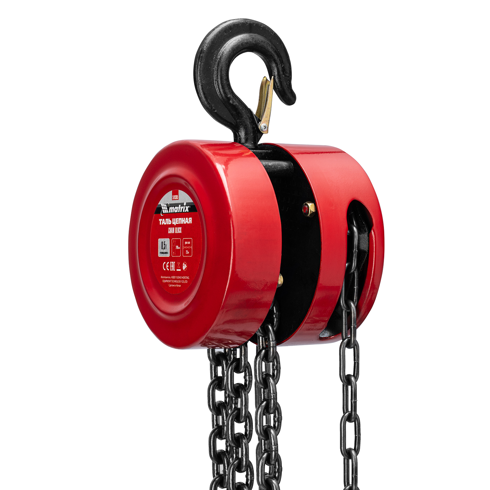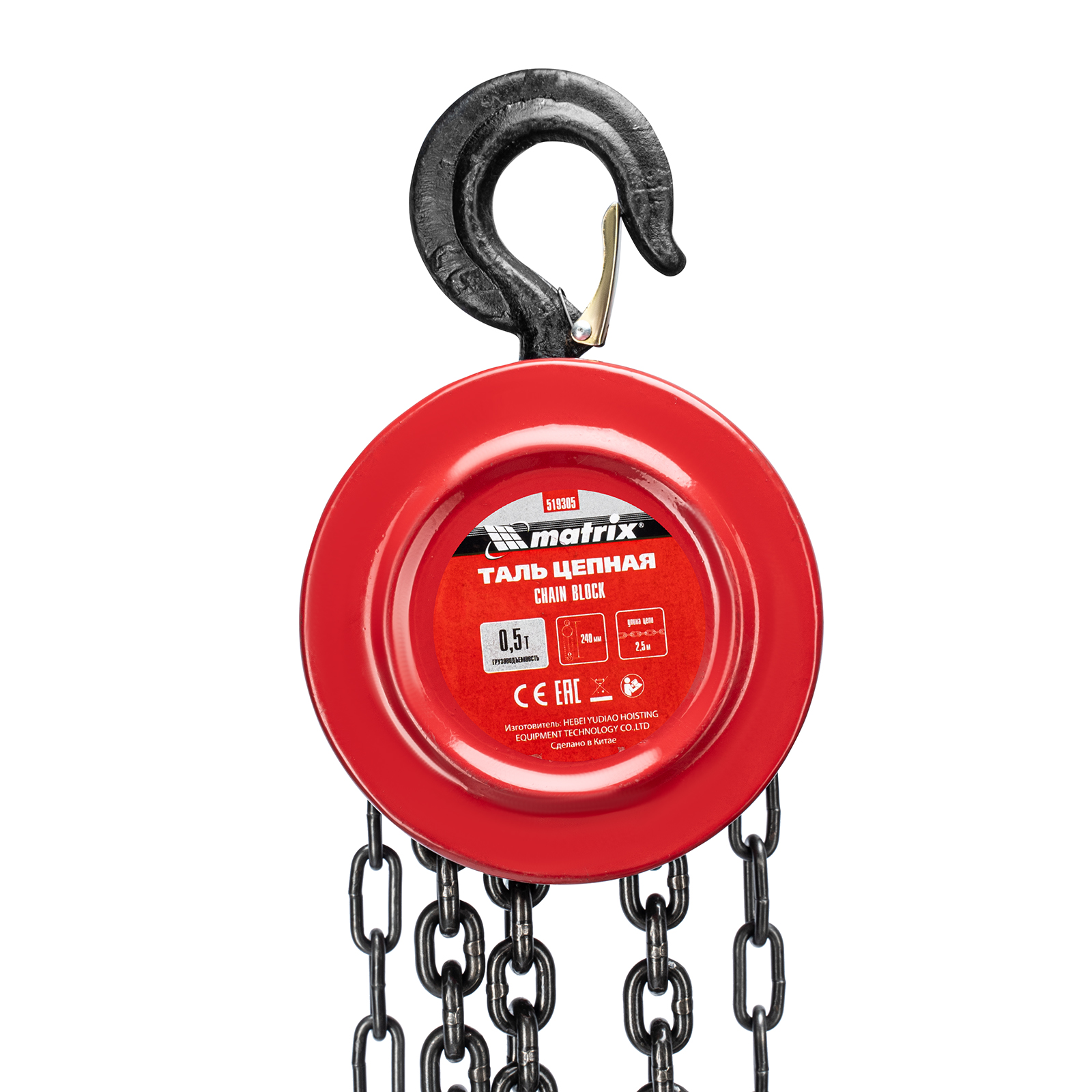Цепная таль Matrix 519305 с расстоянием между крюками 240 мм позволяет поднимать грузы весом не более 0,5 т на высоту до 2,5 м. Простая конструкция облегчает использование. Механизм пригодится для проведения погрузочно-разгрузочных, ремонтных, монтажных работ.
