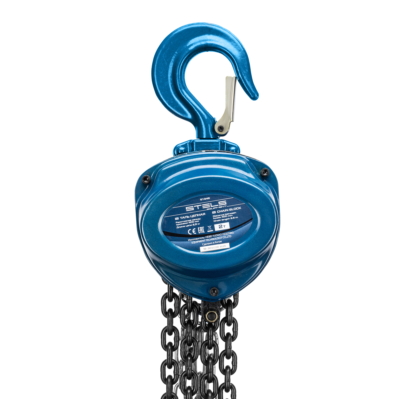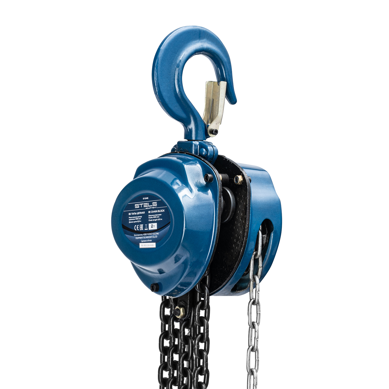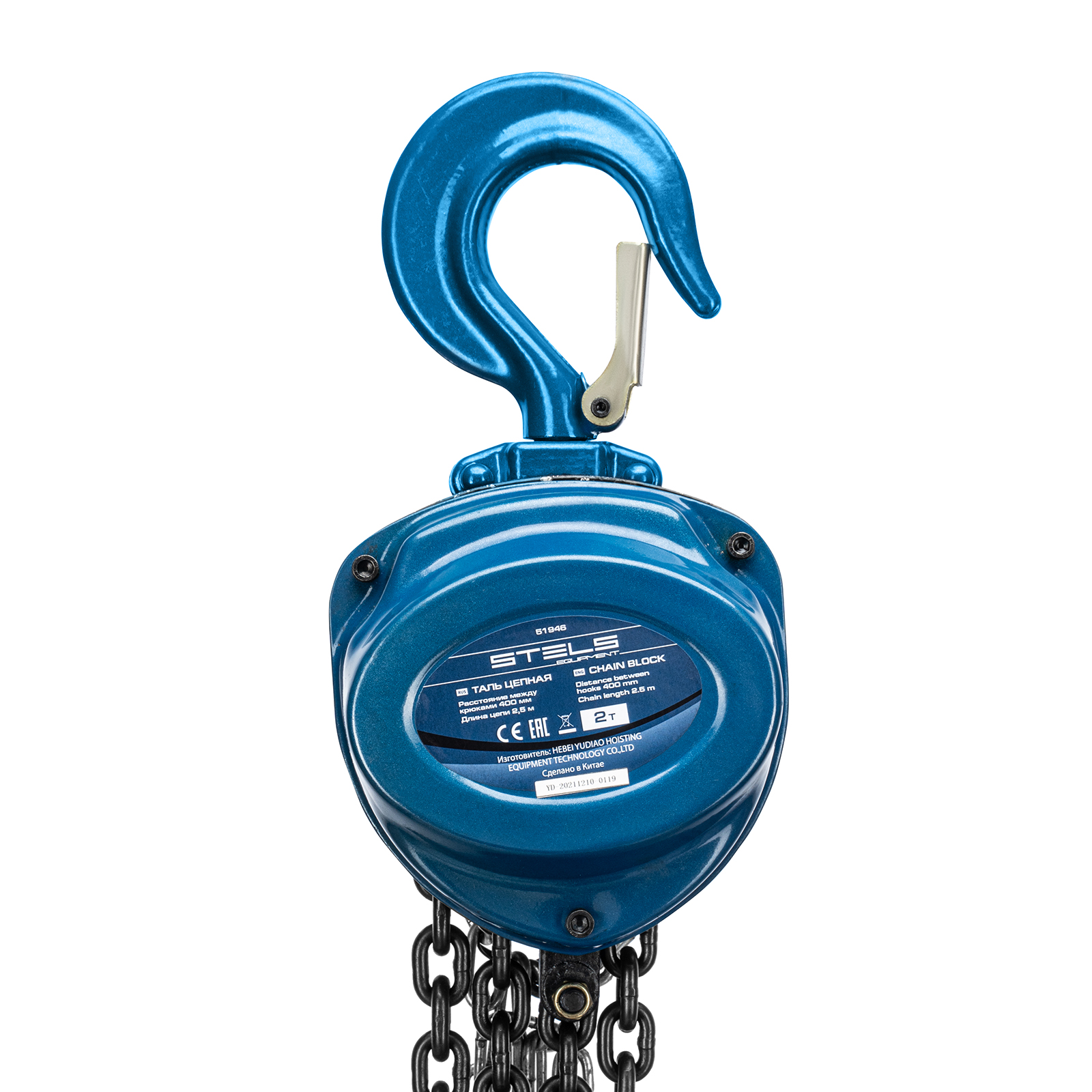 Цепная таль Stels 51946 с расстоянием между крюками 400 мм способна поднимать грузы весом не более 2 т на высоту до 2,5 м. Устройство с оптимальным передаточным числом не требует больших усилий от пользователя. Таль пригодится для проведения погрузочно-разгрузочных работ на производстве, стройке, складе, в цехе, автосервисе и т.д.