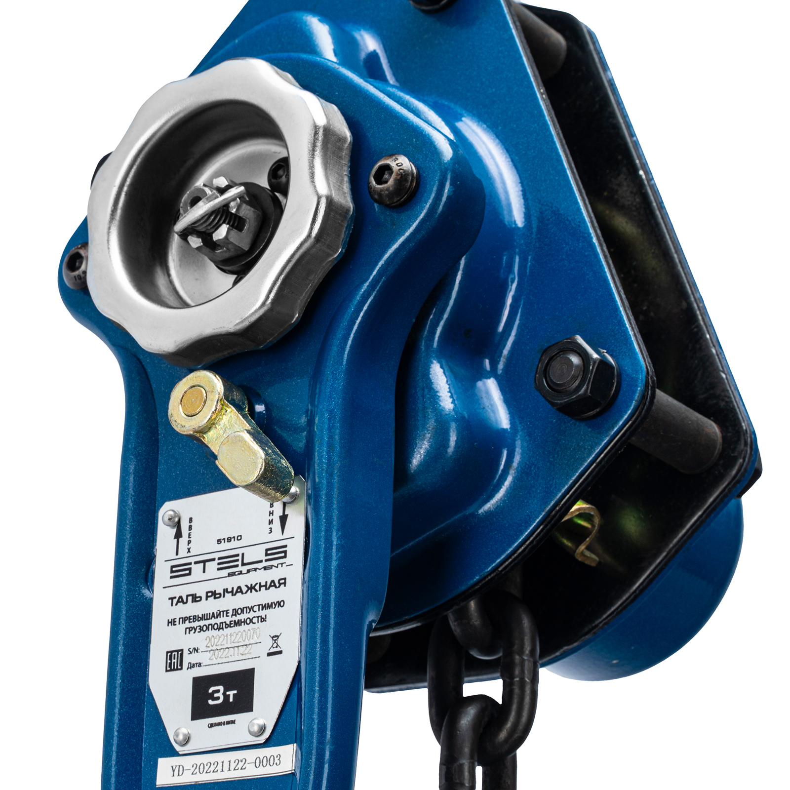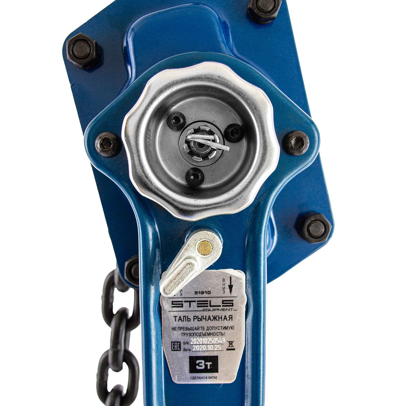 Цепная рычажная таль Stels 51910 используется для поднятия грузов массой не более 3 т на высоту до 1,5 м. Рычажный механизм не требует больших усилий от пользователя. Таль пригодится в автосервисе, на складе или производстве, а также в других местах, где требуется подъем тяжестей без использования электричества.