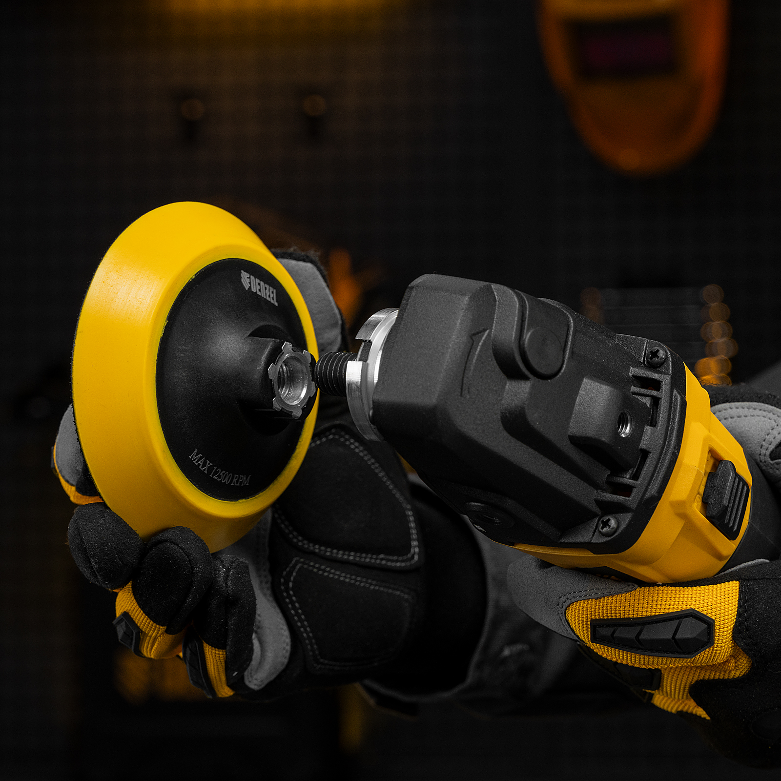 - Простая подготовка к работе — полировальный или абразивный круг с креплением velcro быстро крепится и снимается благодаря липучке.