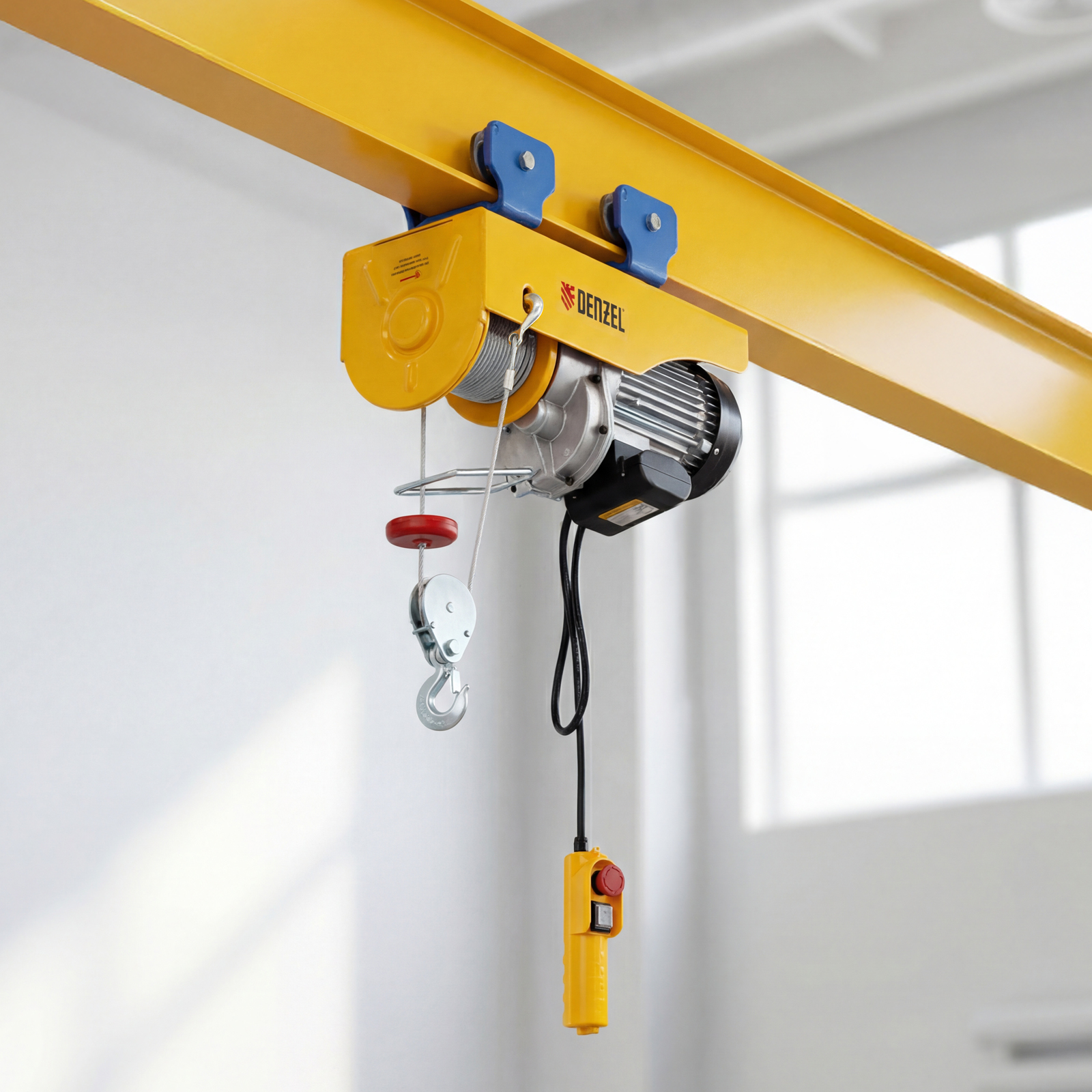 - Функция автоматической остановки — тельфер отключается при превышении допустимого веса груза или высоты подъема.