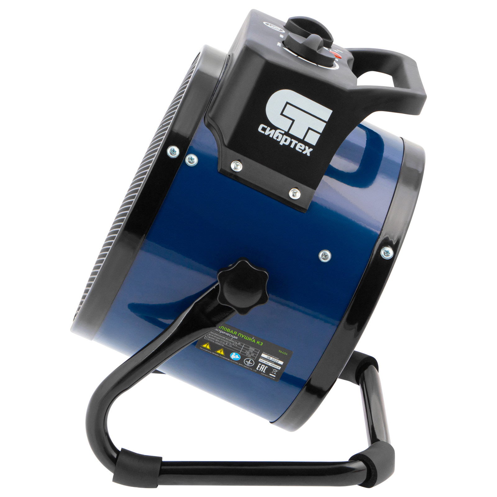 Тепловая пушка Сибртех К3 96404 с керамическим нагревательным элементом работает от сети 230 В и имеет три режима: вентиляция без нагрева, нагрев с мощностью 1500 или 3000 Вт. Предназначена для обогрева или вентиляции нежилых помещений площадью до 30 кв. м, просушки различных поверхностей, например, бетонных стяжек, окрашенных или оштукатуренных стен.,Отличительная черта пушки — технология PTC. Металлокерамические нагревательные элементы обладают функцией саморегуляции электрического сопротивления, что обеспечивает оптимальную температуру нагревательного элемента и пожаро-, взрывобезопасность изделия. При сохранении физической целостности нагревательный элемент не теряет своих свойств на протяжении всего срока службы.