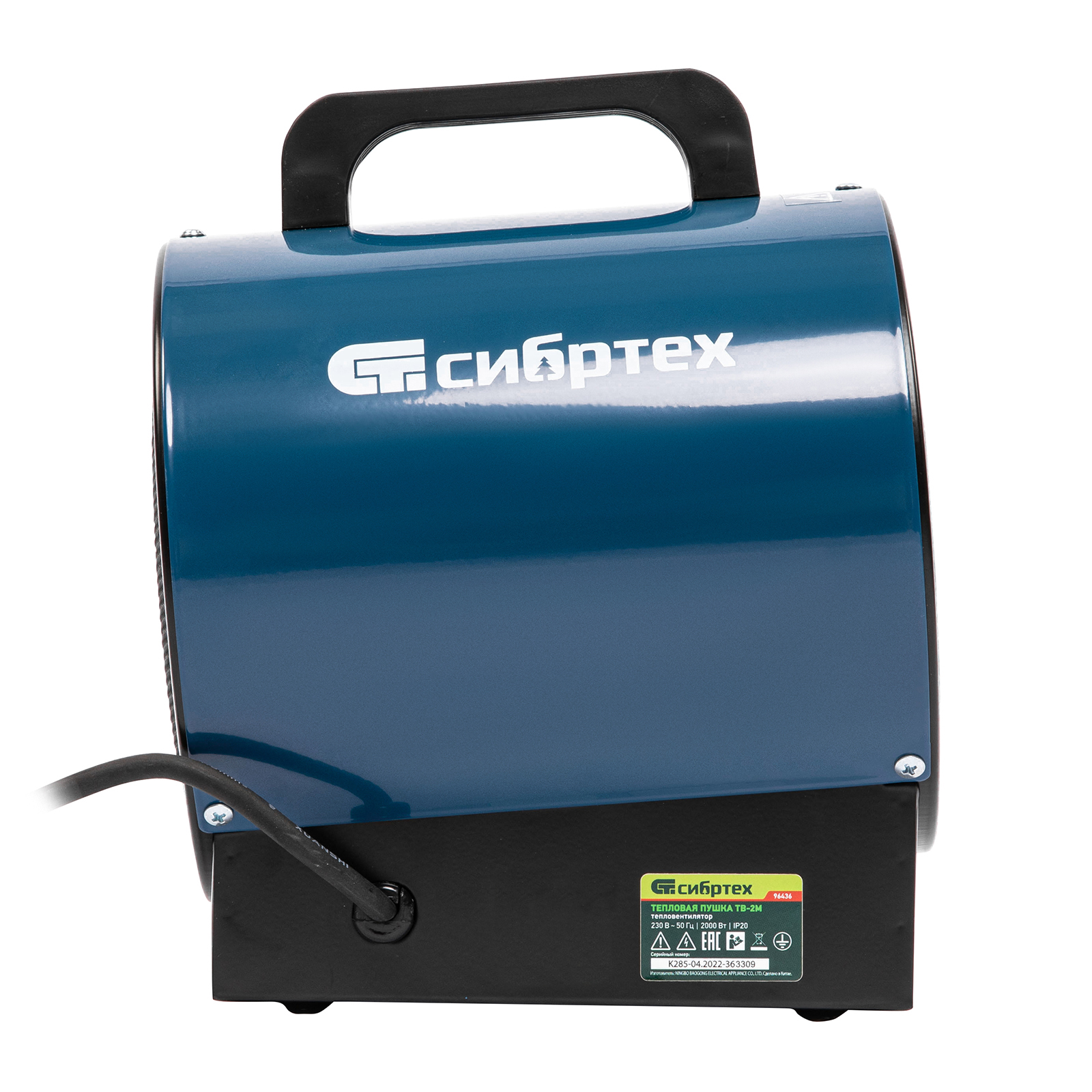 Тепловая пушка (тепловентилятор) Сибртех ТВ-2М 96436 питается от сети 230 В и работает 2 режимах: вентилятор и нагрев на мощности 2000 Вт. В короткие сроки прогревает даже неотапливаемые помещения: бытовые, производственные, подсобные и т.д. В цилиндрический корпус встроен круглый ТЭН, который обеспечивает эффективный теплообмен и практически мгновенно выходит на заданную температуру. Благодаря цилиндрической форме тепловентилятор формирует направленный поток воздуха. Подходит для помещений площадью до 20 кв. м, а также точечного прогрева поверхностей.