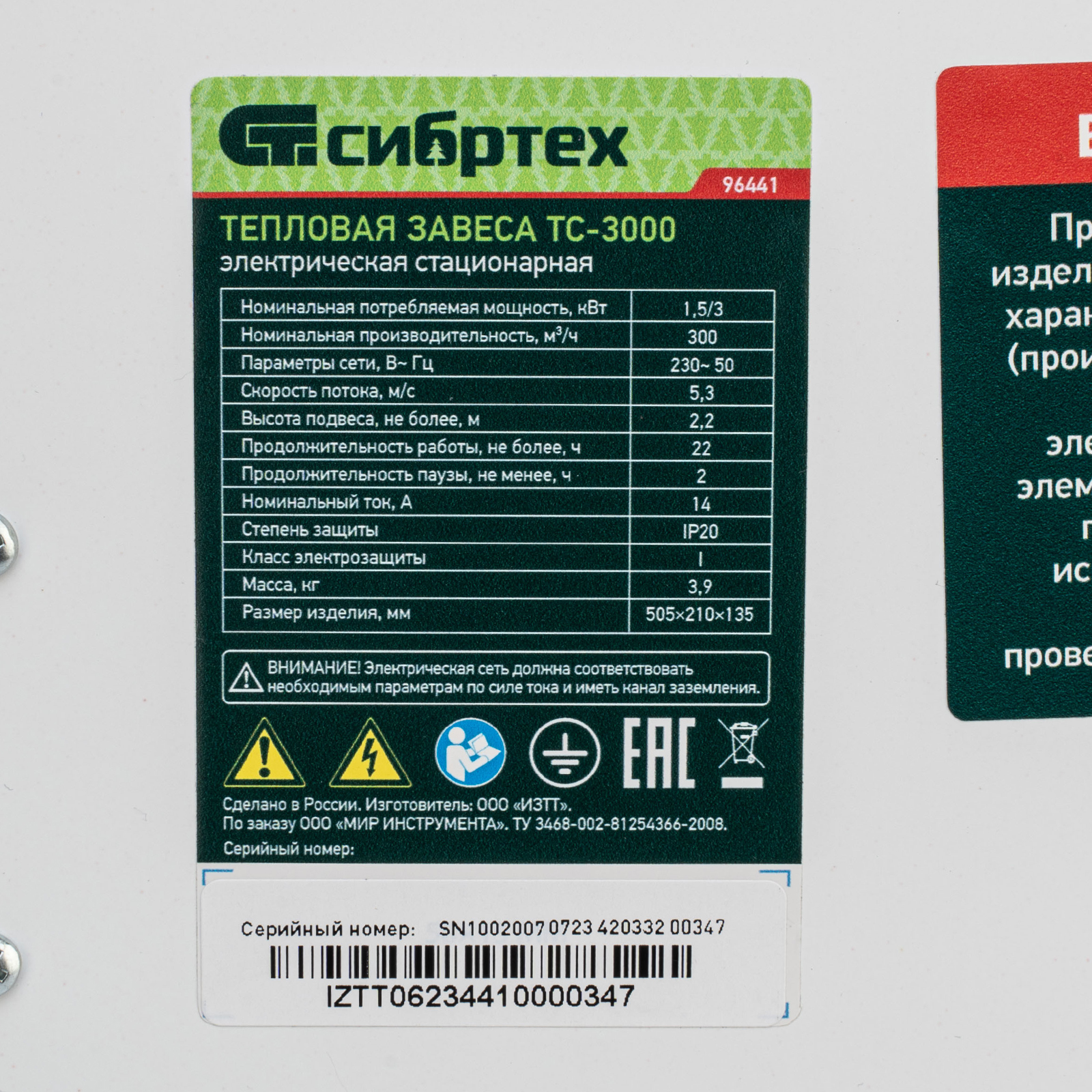 - 2 режима работы — нагрев на мощности 1,5 кВт и 3 кВт — позволяют использовать завесу для различных целей.