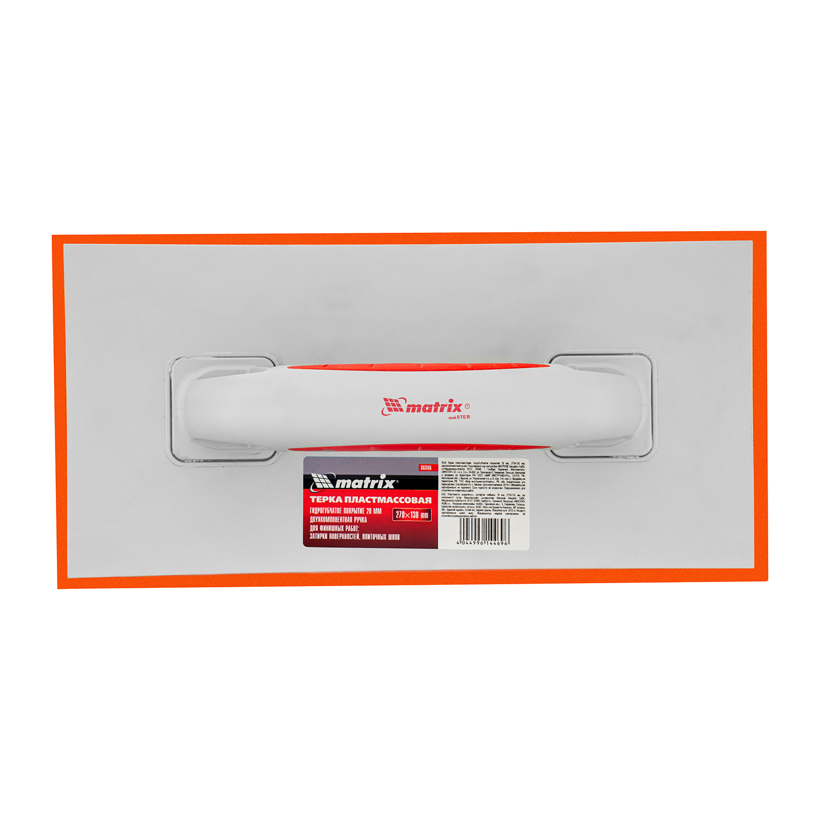 Пластмассовая терка Matrix 86806 размером 270 х 130 мм, с гидрогубчатым покрытием высотой 20 мм и двухкомпонентной рукояткой, используется для финишной доводки штукатурного покрытия, а также для мытья плитки после нанесения затирки. Плотное гидрогубчатое полотно не повреждает обрабатываемую поверхность и позволяет получить идеально гладкий штукатурный слой.