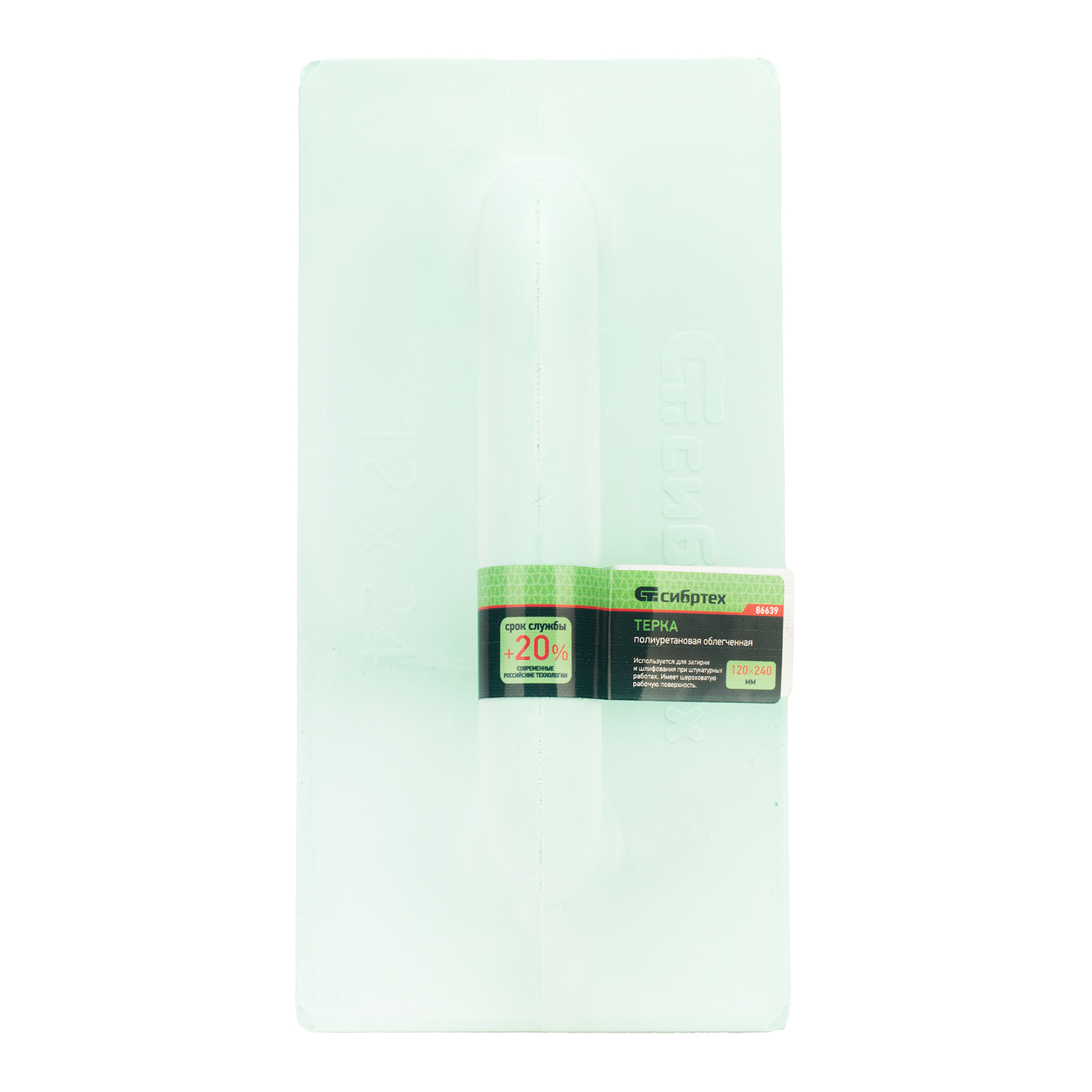 Облегченная полиуретановая терка Сибртех 86639 размером 120 х 240 мм предназначена для затирки и шлифования оштукатуренной поверхности во время отделочных работ. Успешно справляется со своей задачей благодаря шероховатой подошве. Компактная терка удобна для обработки небольших участков. Инструмент используется в профессиональной сфере, подойдет также для выполнения самостоятельного ремонта помещения.