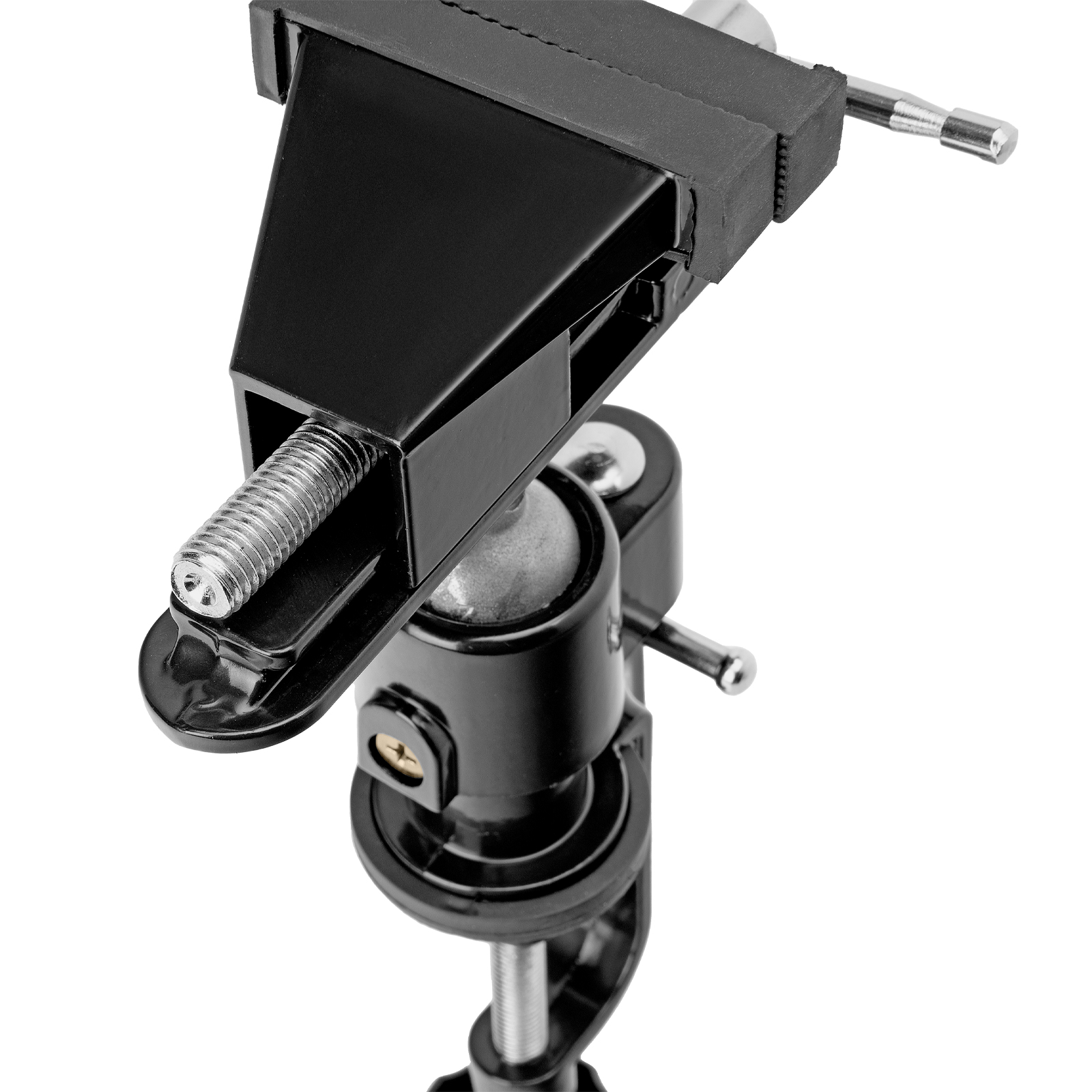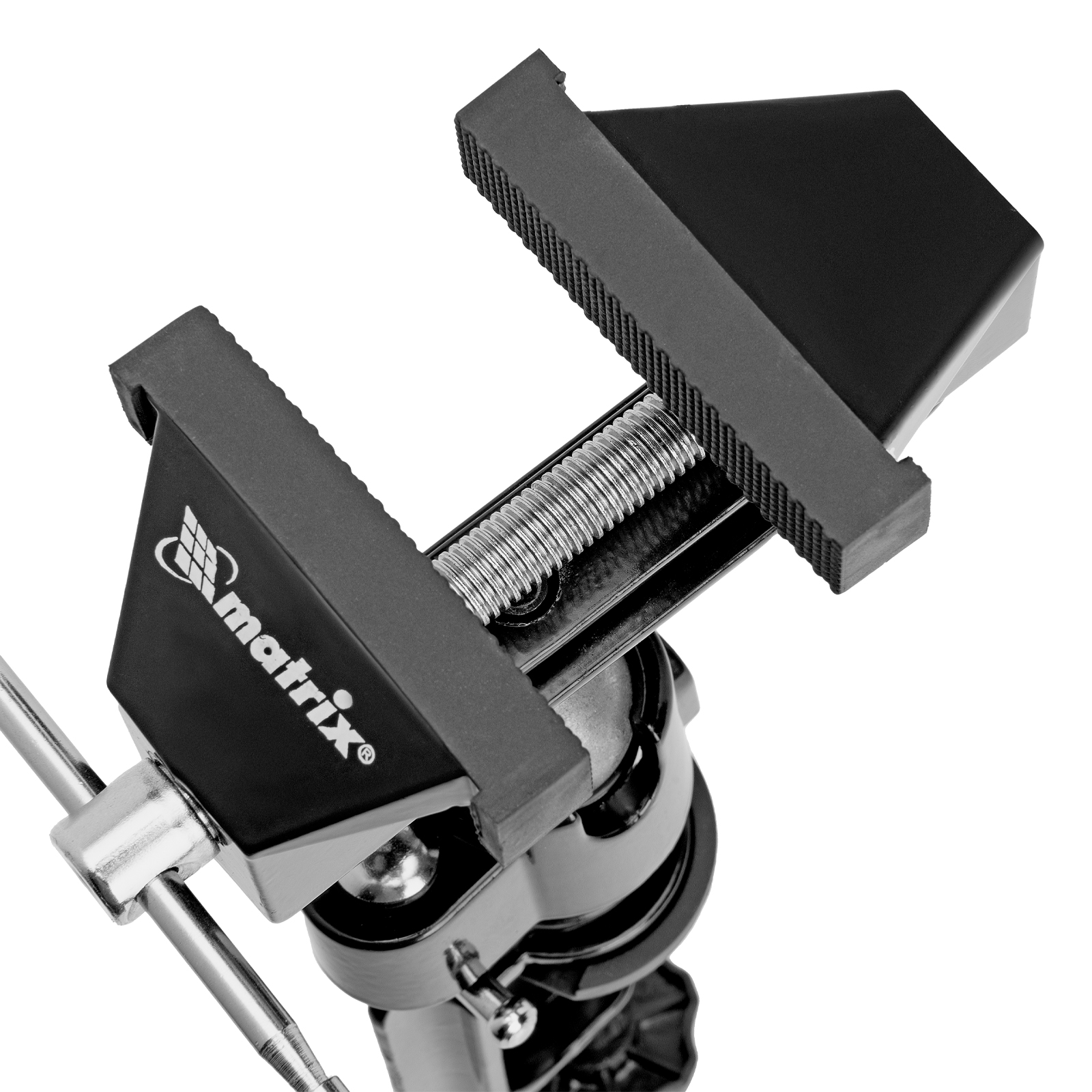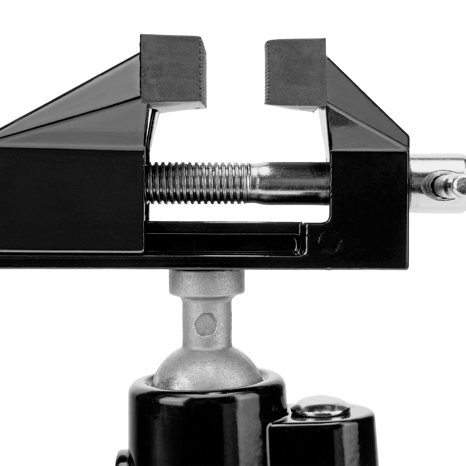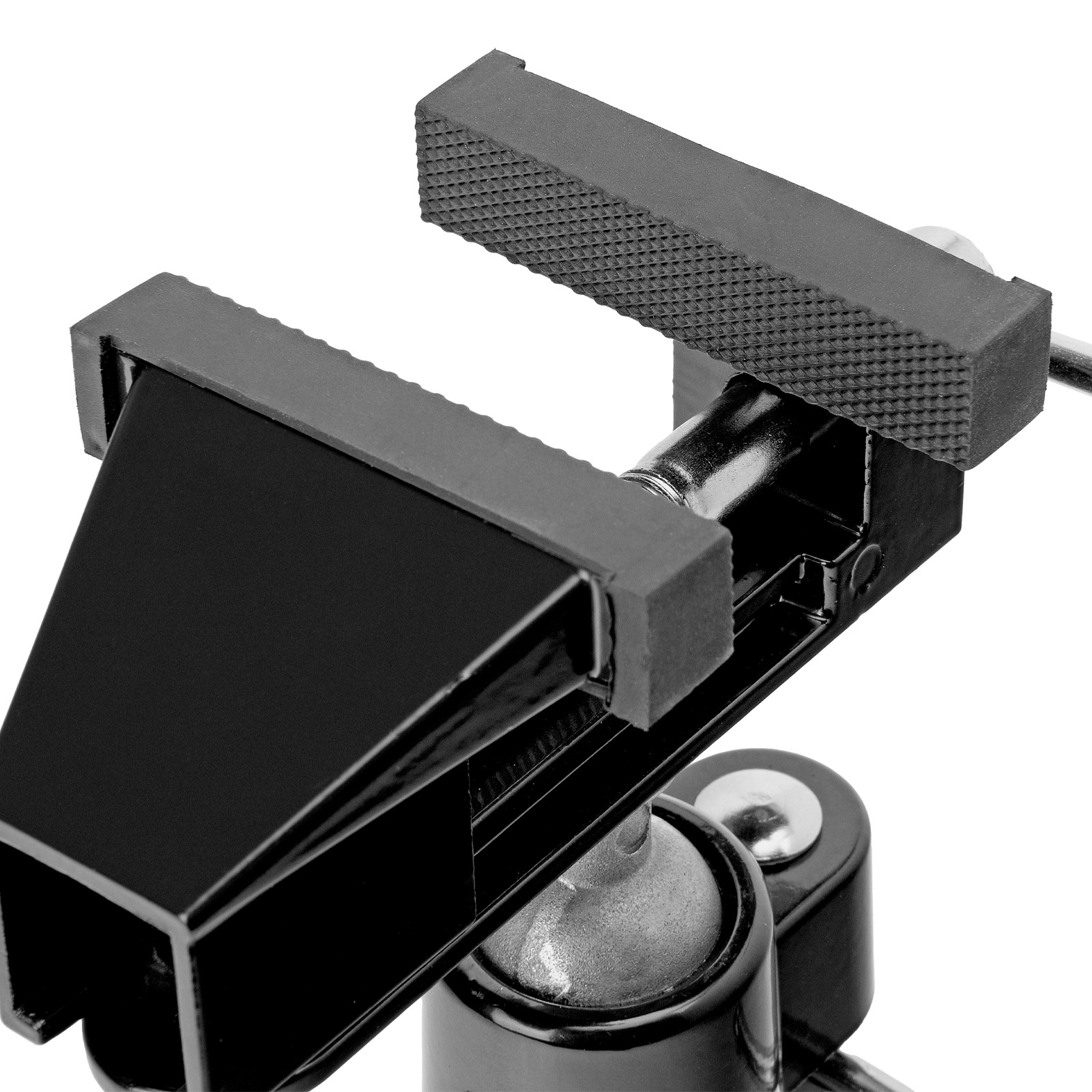 - Шарнирный механизм позволяет вращать и наклонять верхнюю часть тисков, поэтому заготовку можно обрабатывать под разными углами.