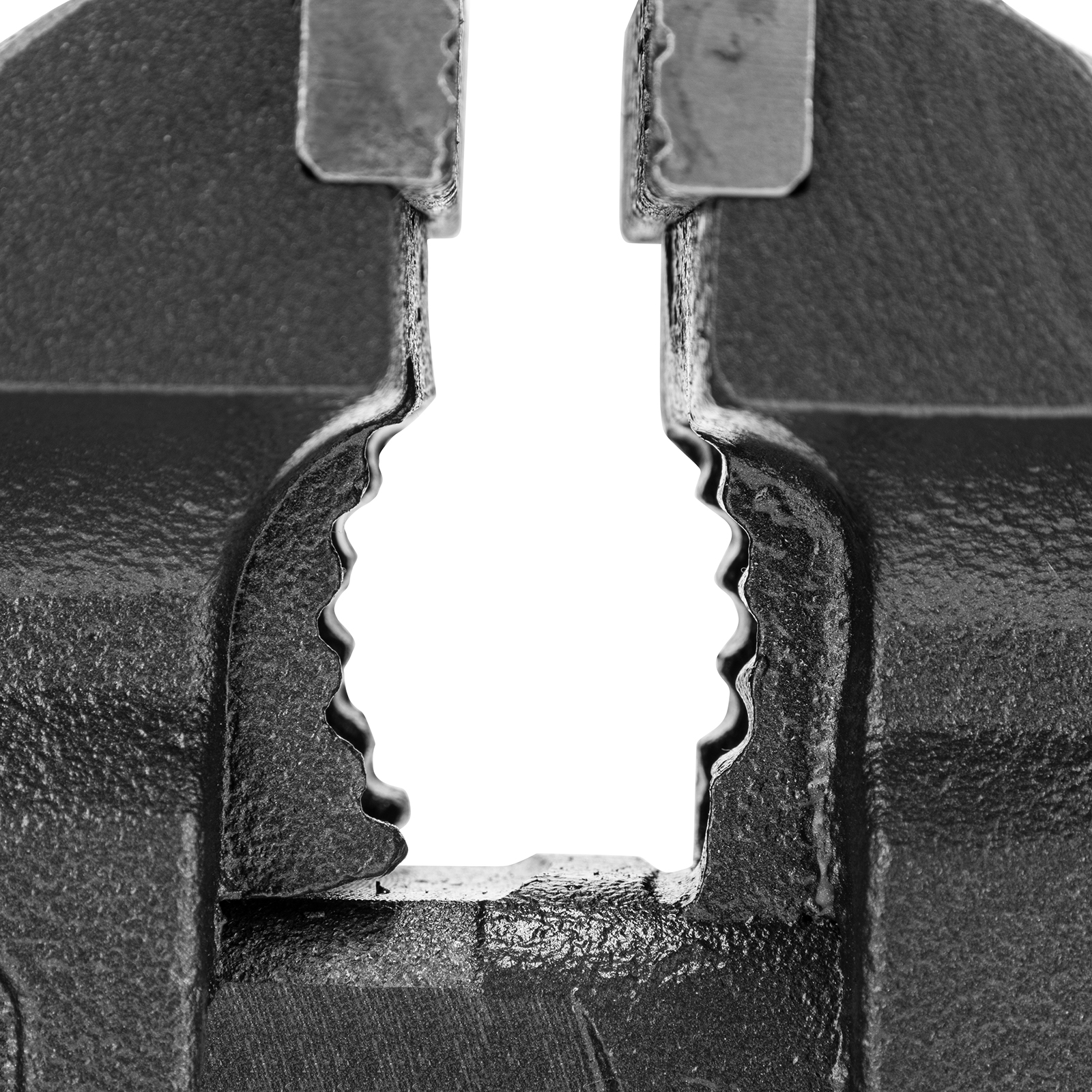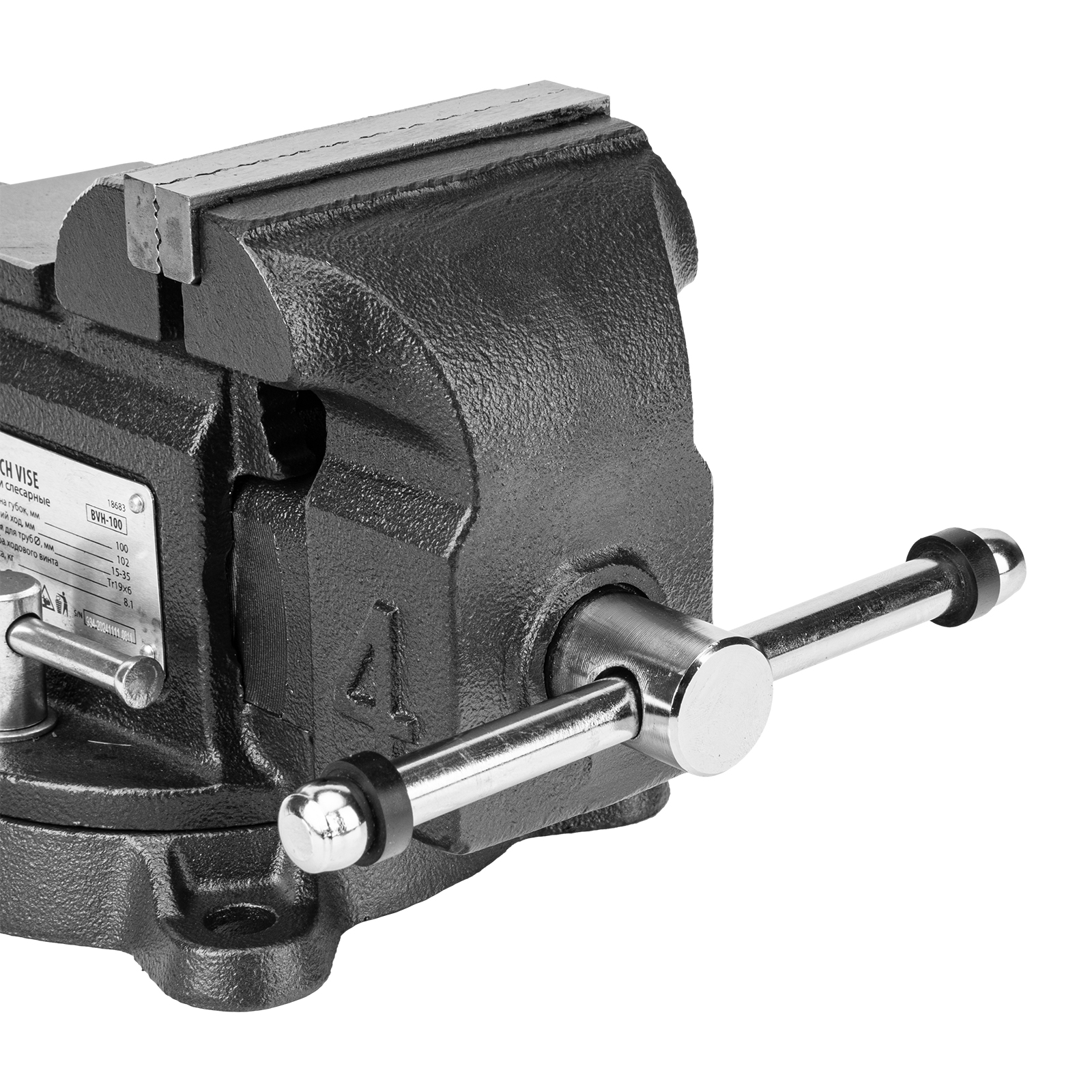 - Функциональность — тиски поворачиваются на 360°, что позволяет менять и выбирать позицию инструмента для удобной работы с заготовкой.