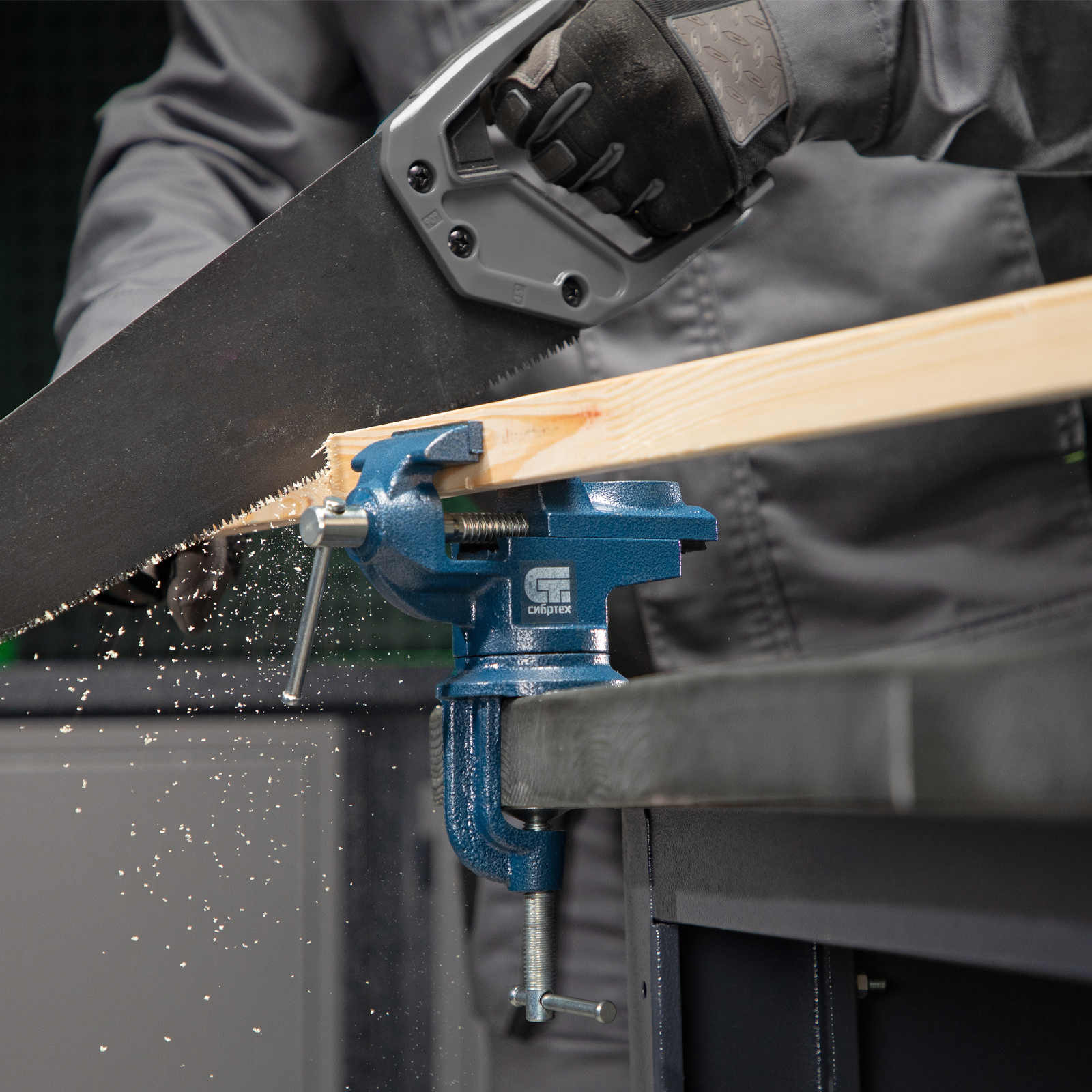 - Винтовой зажим позволяет быстро устанавливать и снимать тиски, поэтому их можно использовать на различных рабочих местах.