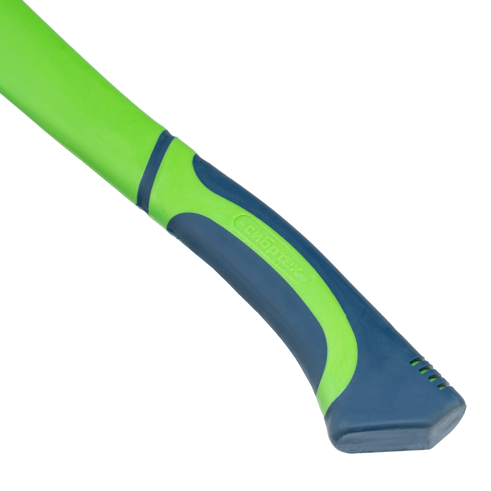 - Комфортная работа — фибергласовое топорище гасит вибрации, а благодаря небольшому изгибу и прорезиненным вставкам не выскальзывает из рук.