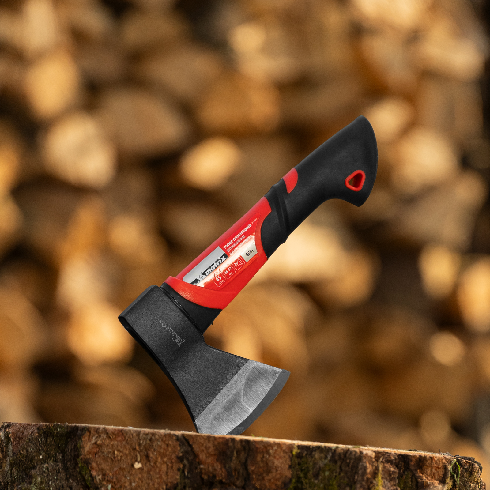 - Безопасное хранение и транспортировка — топор поставляется с защитной пластиковой накладкой на лезвии.