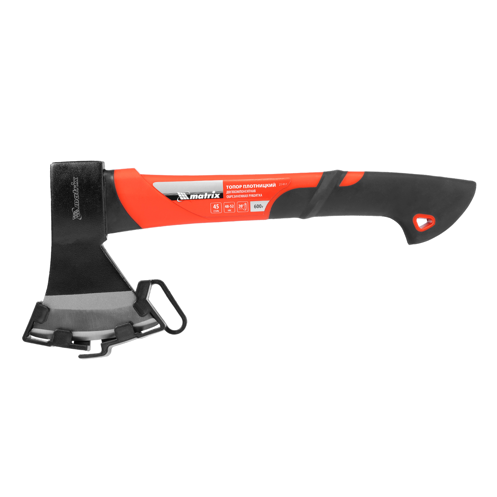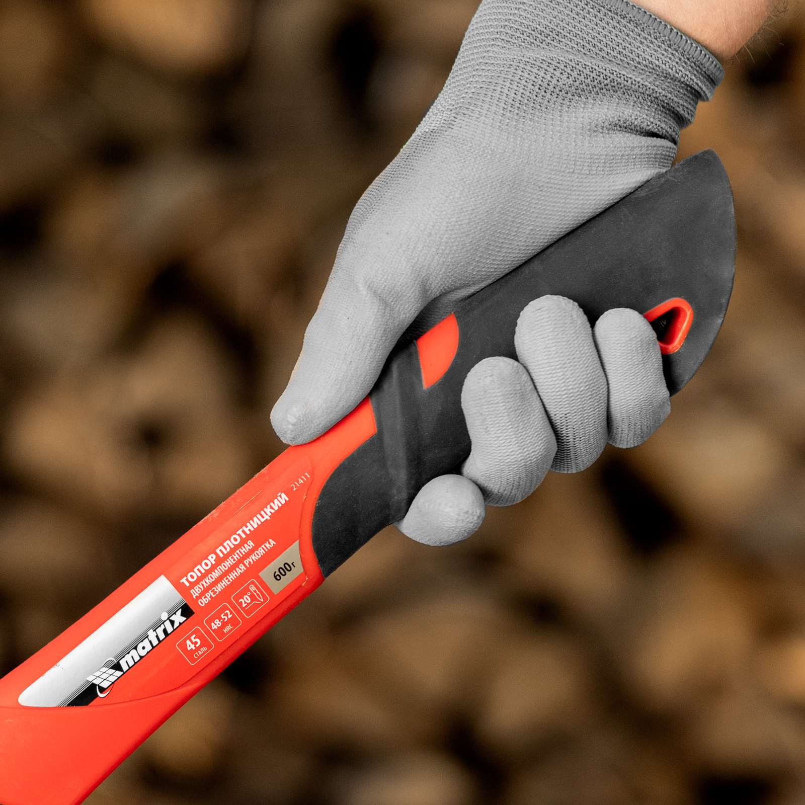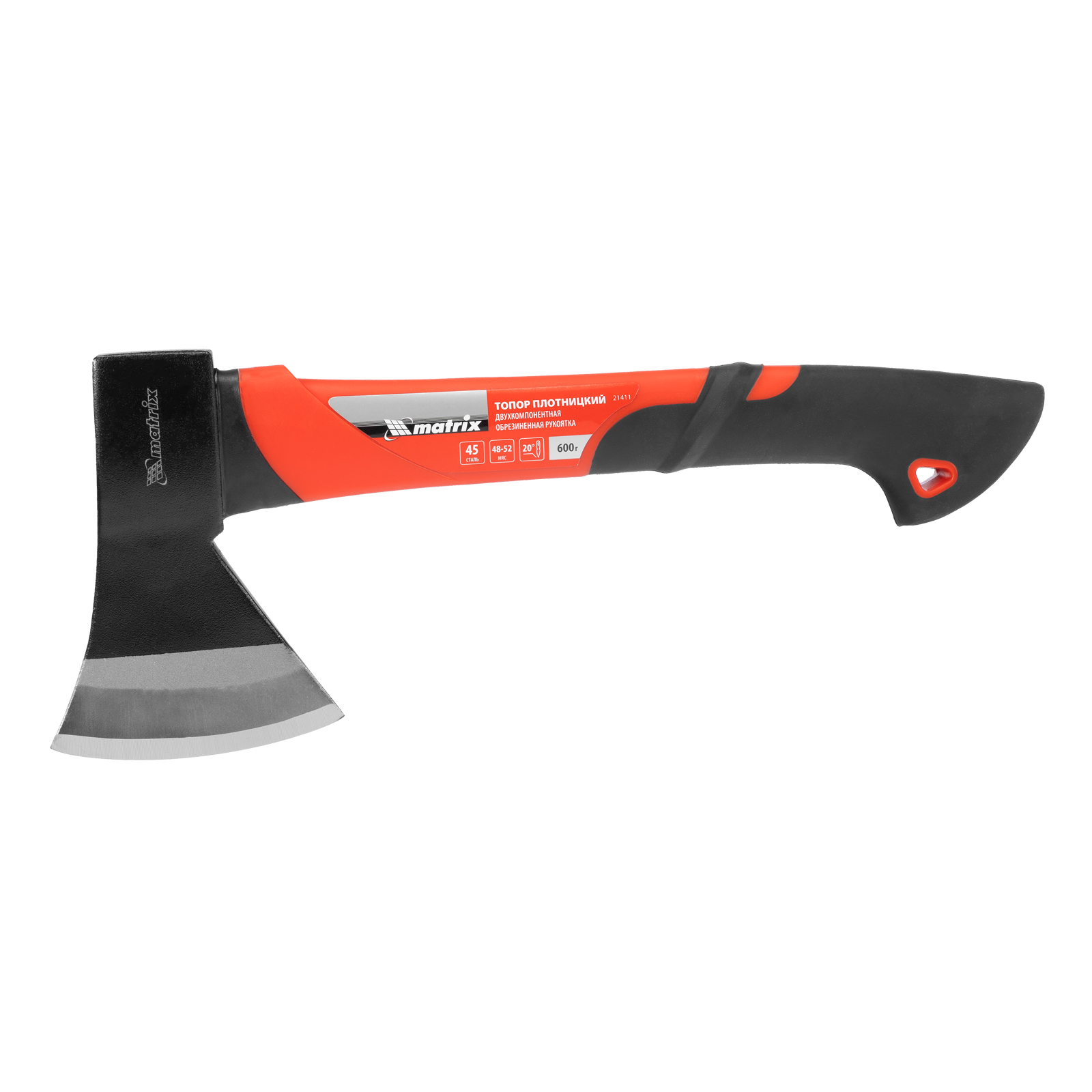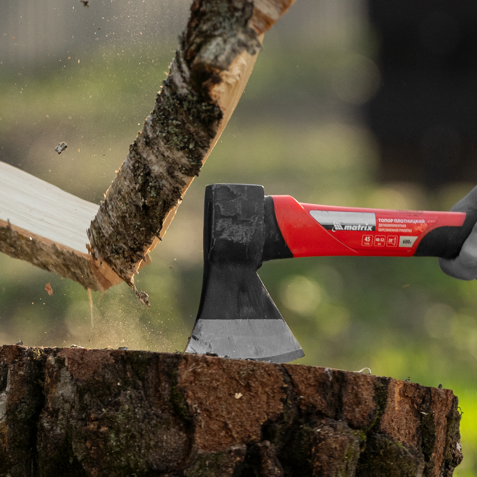 Топор Matrix 21411 длиной 360 мм, с рабочей частью весом 600 г и эргономичной фибергласовой рукояткой, используется для колки дров, заострения колышков, вырубки кустов, рубки сучьев, а также выполнения других работ. Полукруглое лезвие в сочетании с оптимальным соотношением длины и веса упрощает работу. Инструмент используется для решения бытовых задач.