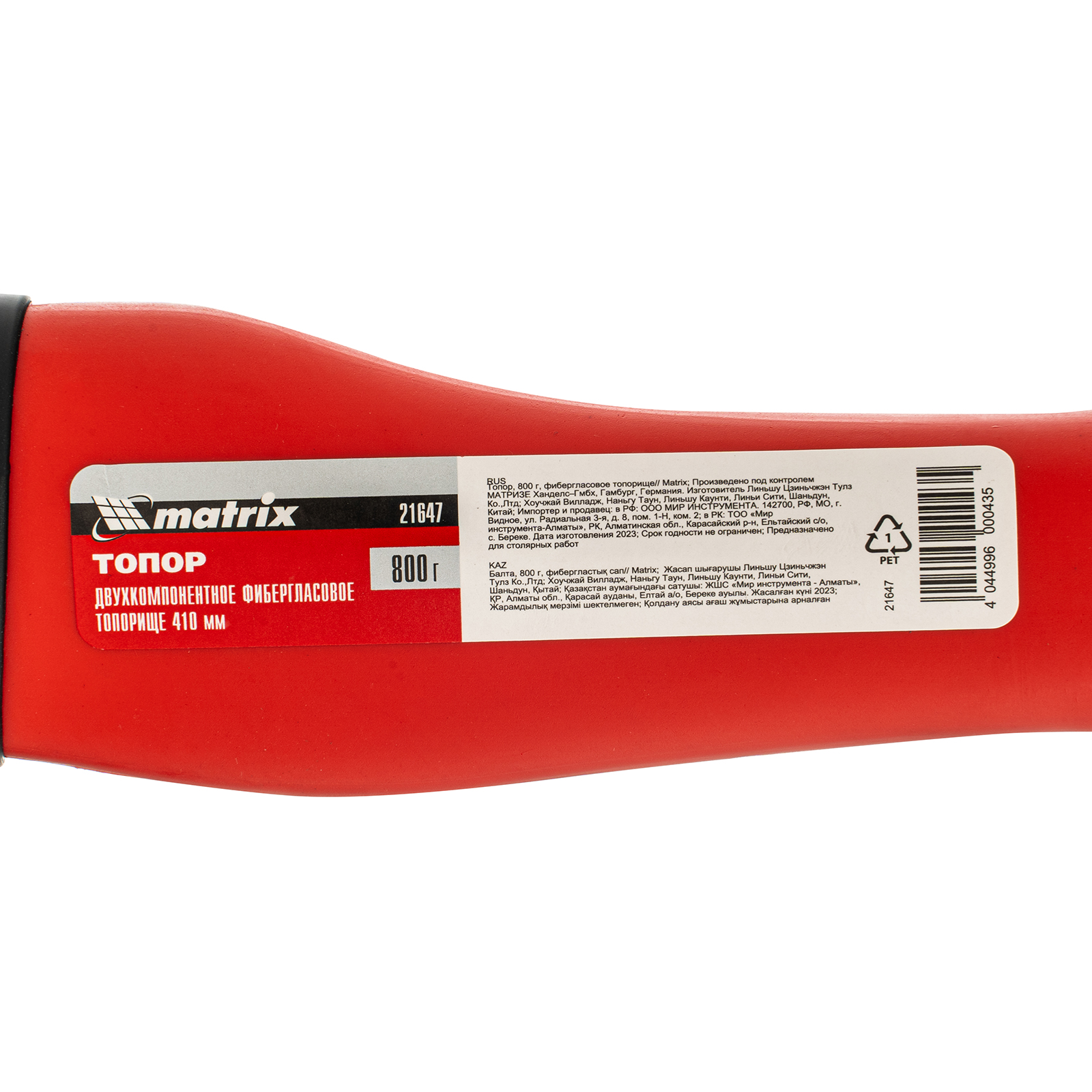Топор Matrix 21647 с рабочей частью весом 800 г и фибергласовым топорищем предназначен для рубки, тесания и колки твердой или мягкой древесины. Будет полезен на дачном и сельскохозяйственном участке для заготовки дров, рубки кустов, сучьев, а также выполнения других работ. Топор оптимален для полупрофессионального применения.