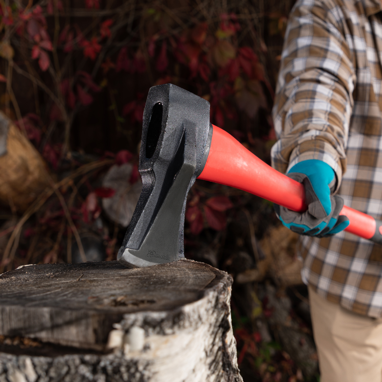 - Комфортное использование — благодаря резиновым накладкам топорище не выскальзывает из рук.
