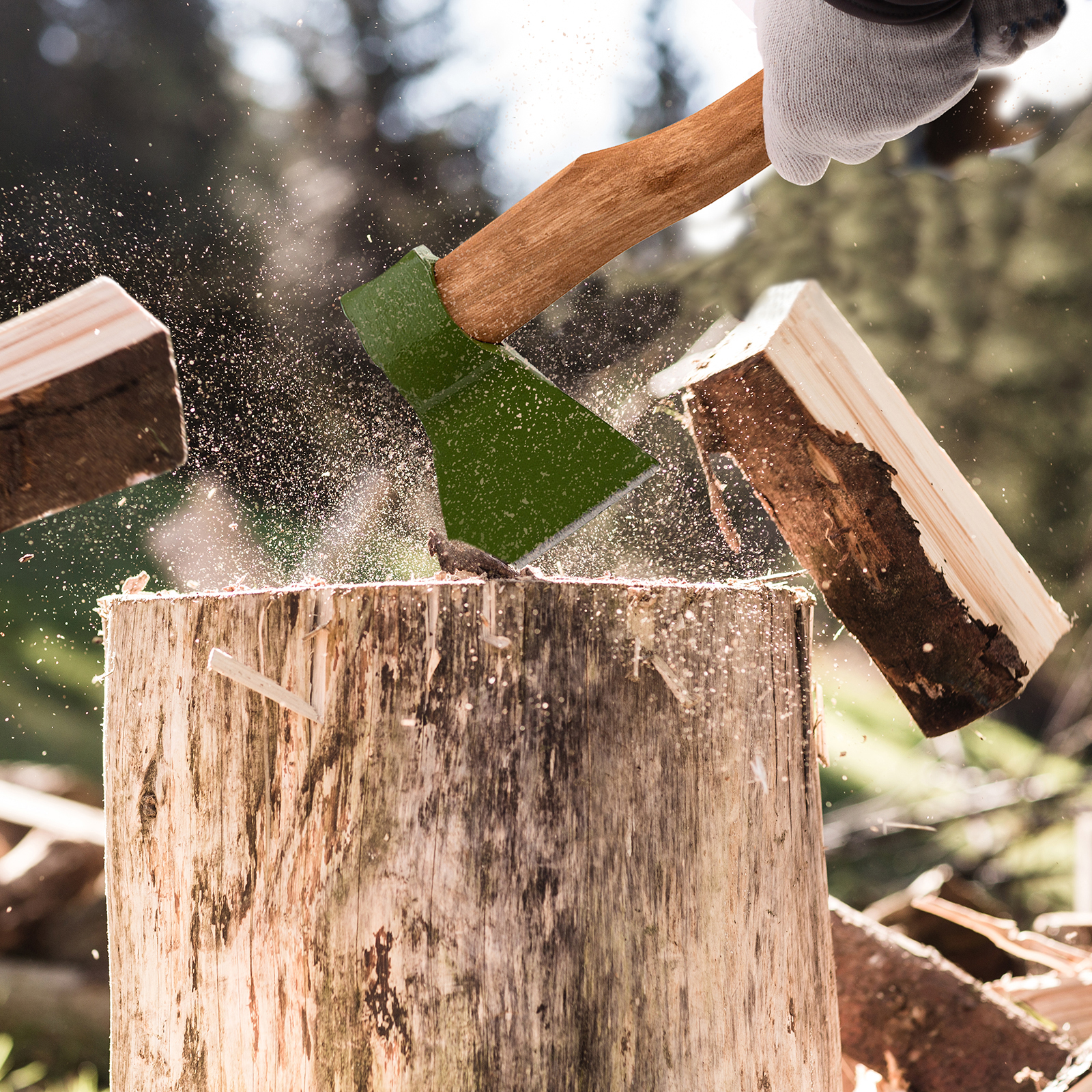 - Долговечность — топорище изготовлено из древесины твердых лиственных пород и пропитано защитным составом.