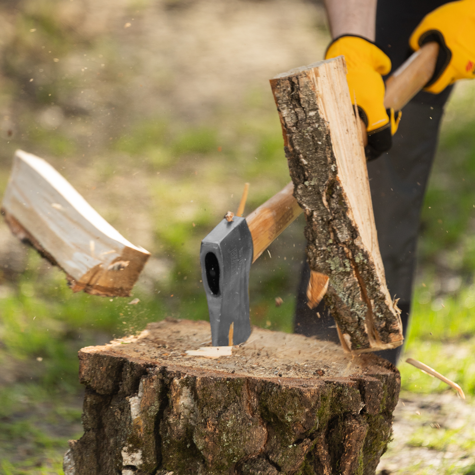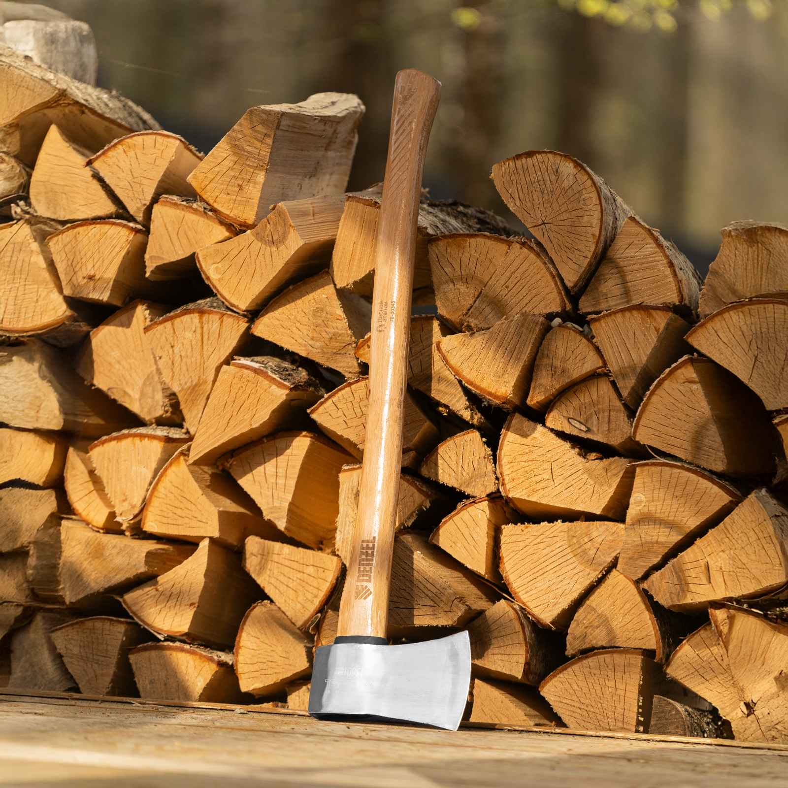 - Прочность — топорище изготовлено из твердой древесины бука и покрыто защитным лаком для предотвращения рассыхания и разбухания.