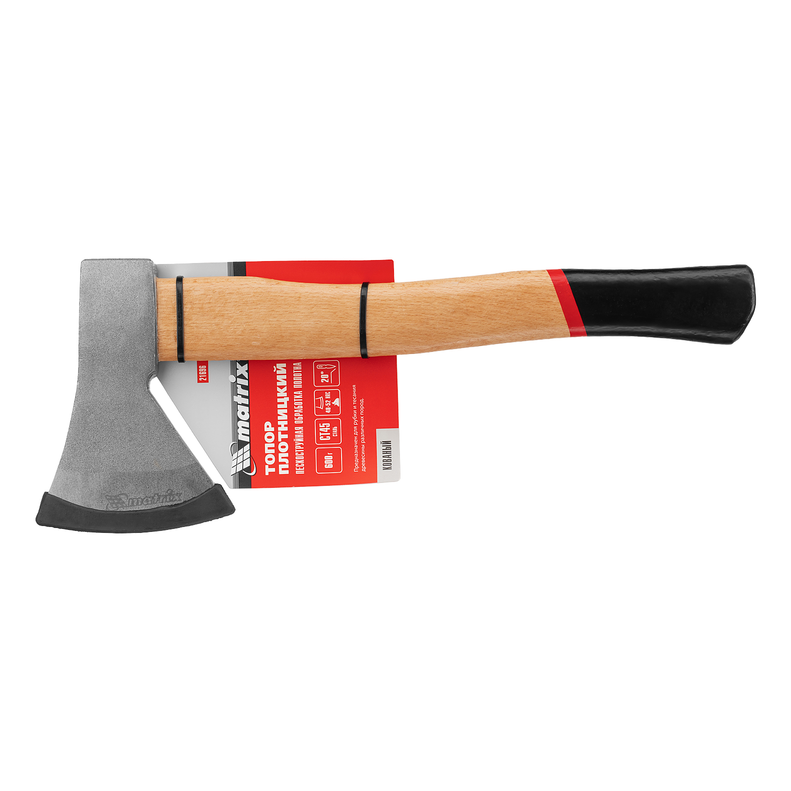 Кованый плотницкий топор Matrix 21696 с весом рабочей части 600 г имеет эргономичную деревянную рукоятку и пескоструйную обработку полотна. Топор используется при рубке и тесании древесины любых видов пород.