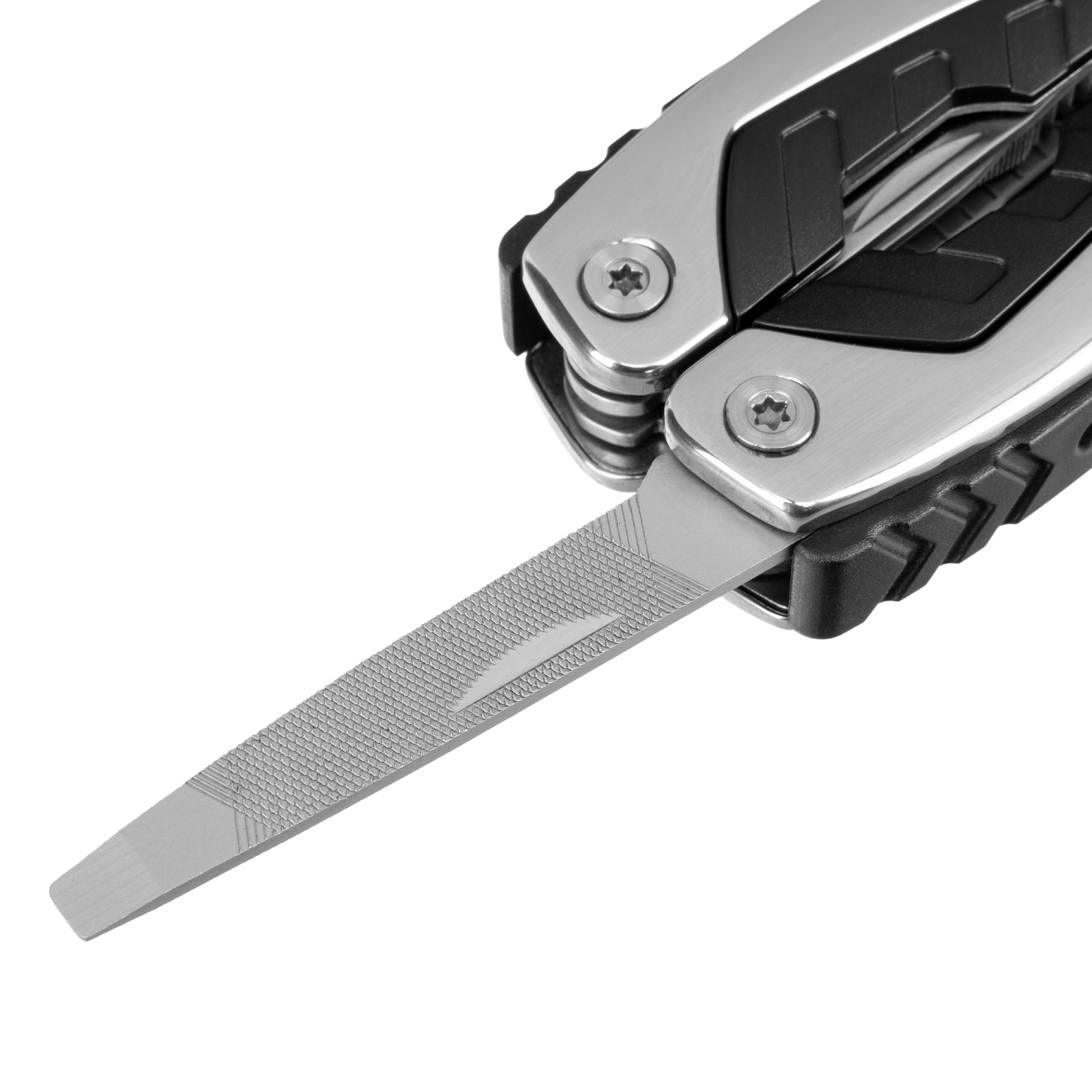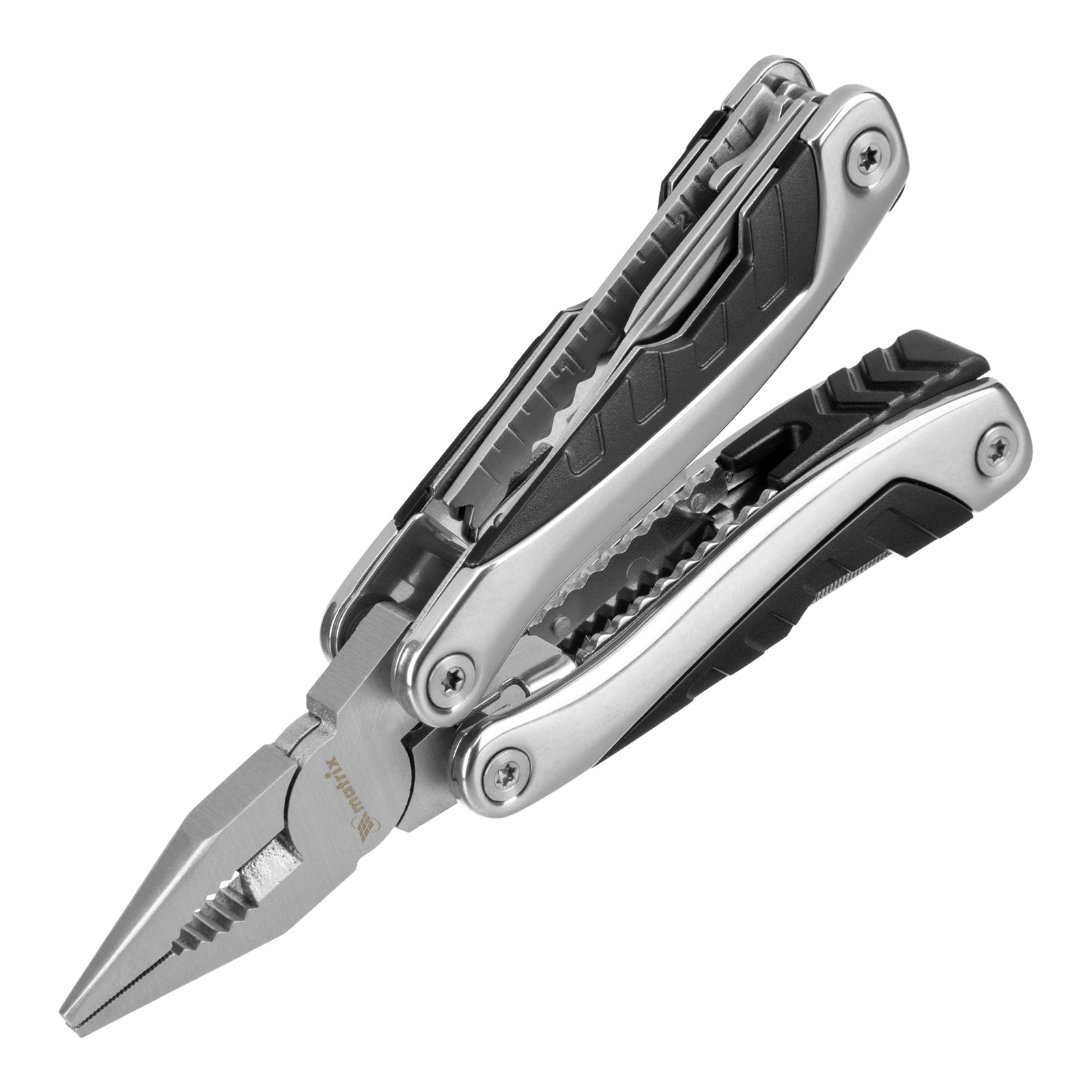 Трансформер Matrix 17623 длиной 160 мм имеет 15 функций и авторазжим, поставляется с чехлом. Может использоваться в гараже, т.к. включает длинногубцы с кусачками и захватом полукруглых предметов, а также отвертки и линейку. Трансформер пригодится в походе, на рыбалке или охоте, поскольку имеет в составе нож, пилу, открывалку, консервный нож, инструменты для чистки рыбы и удаления крючка. Благодаря пилке для ногтей мультитул будет полезен в быту.