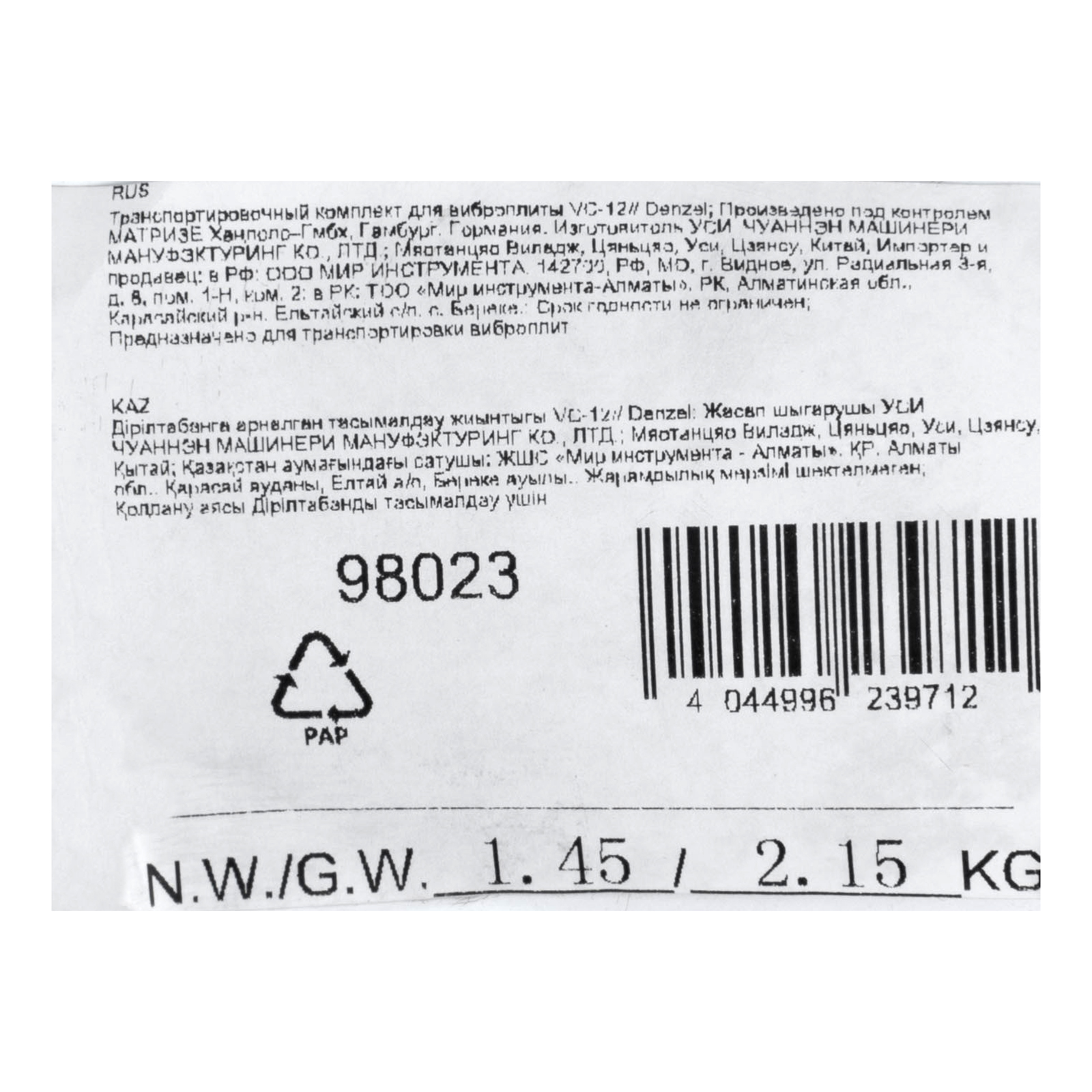 Транспортировочный комплект Denzel 98023 предназначен для перемещения виброплиты Denzel VC-12 на небольшие расстояния. Ускоряет выполнение работ по уплотнению гравия, песка, щебня и укладку тротуарной плитки.