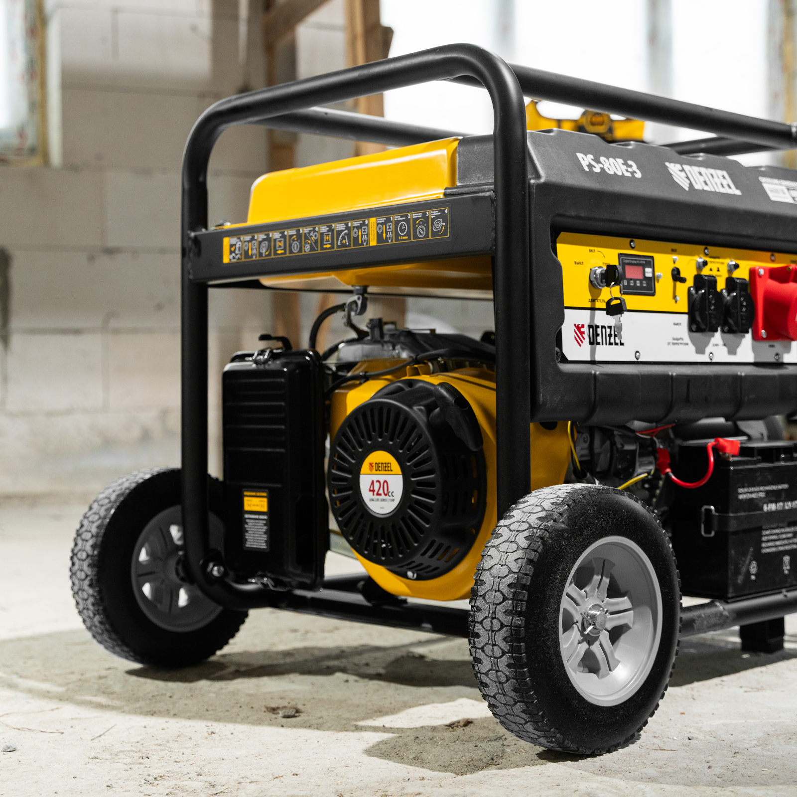 Удобное использование — транспортировка генератора происходит быстро и без усилий.