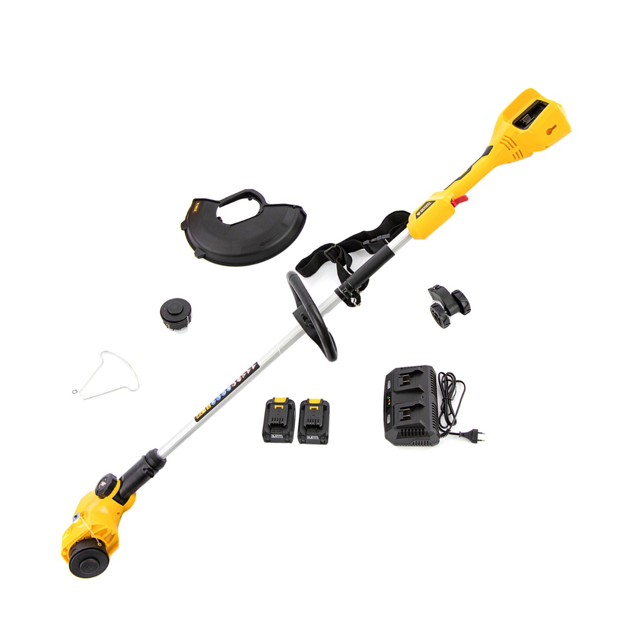 Триммер аккумуляторный Denzel RT300-36 58710 работает от батареи Li-Ion напряжением 36 В и емкостью 4 А·ч, обеспечивая ширину скашивания 300 мм. Предназначен для скашивания свежей травы, обработки границ газона, удаления растительности на небольших приусадебных участках. Выполняет поставленные задачи с помощью лески, совмещая функции триммера и кромкореза. Поворотная голова с расположенным в ней электродвигателем обеспечивает комфортную эксплуатацию в самых труднодоступных местах.,Триммер не требует использования топлива и подключения к сети электроснабжения. Он комплектуется двумя аккумуляторными батареями увеличенной емкости с интеллектуальной системой распознавания типа нагрузки.
