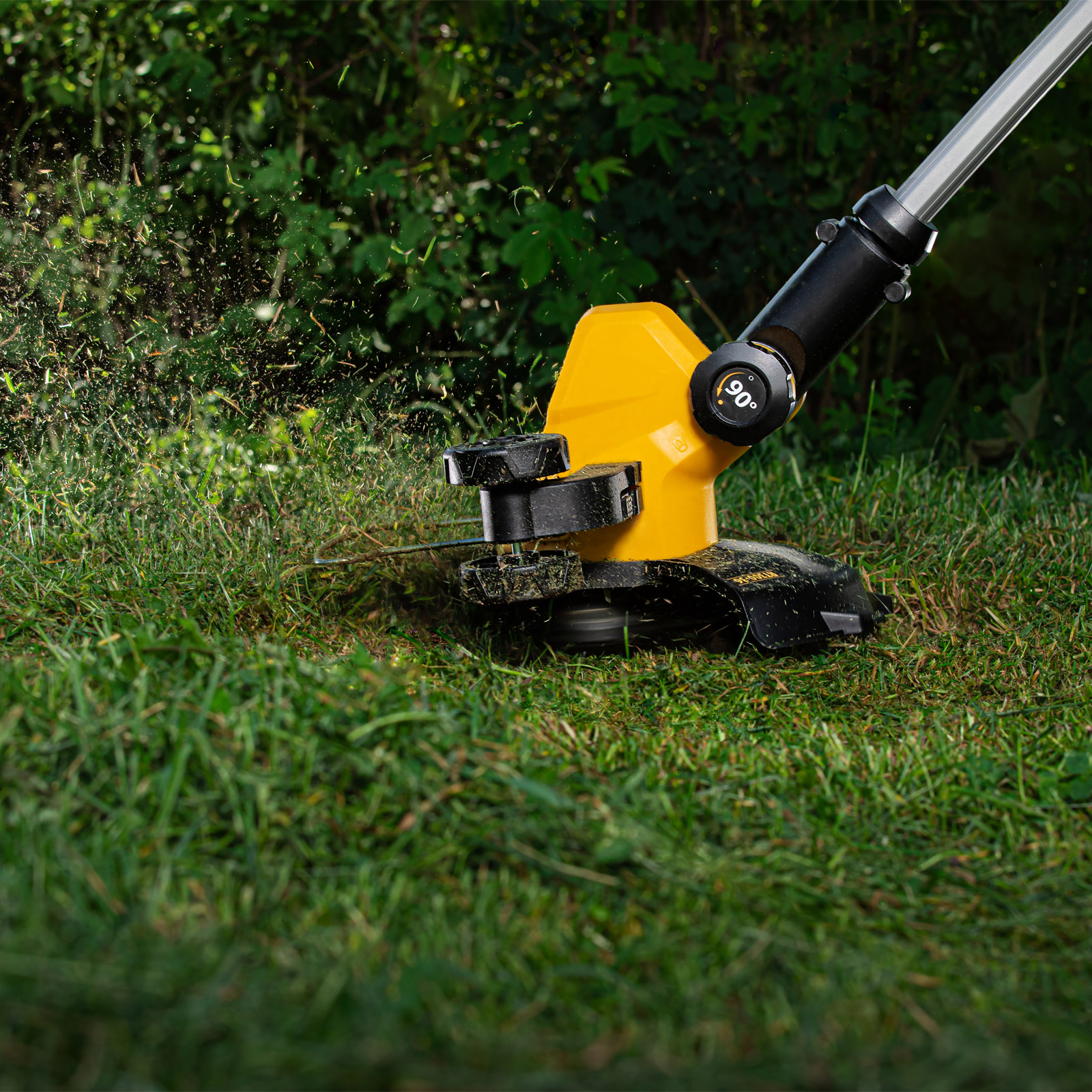- Удобная настройка под рост пользователя — угол наклона триммера относительно штанги можно настроить, поэтому использовать его будет удобно любому человеку.