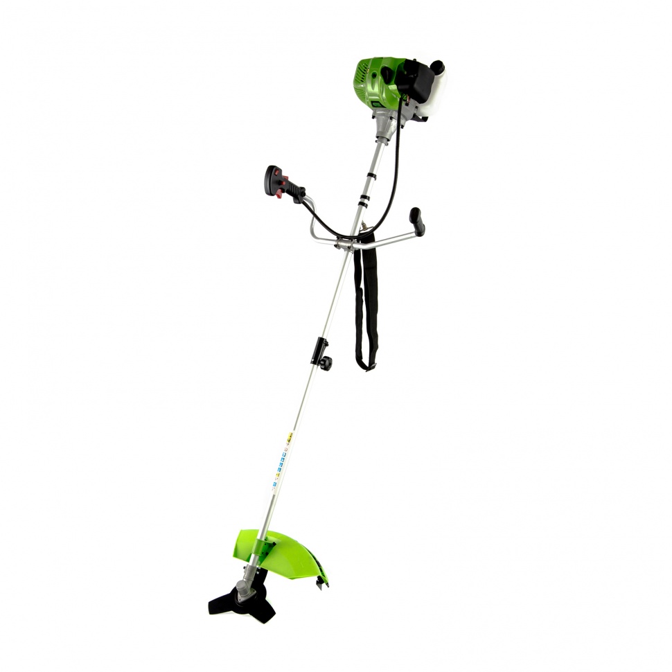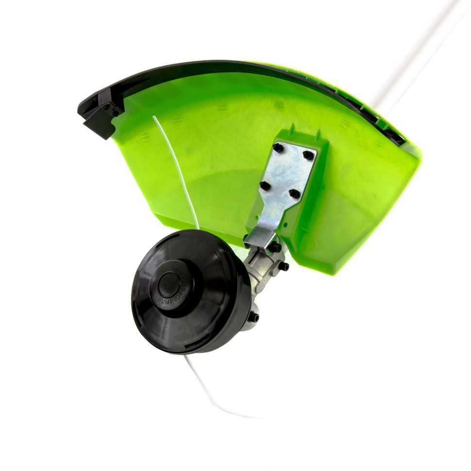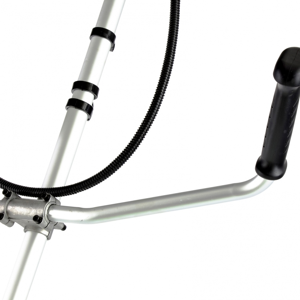 - Комфортная работа — ручки велосипедного типа позволяют легко удерживать и направлять триммер, а плечевой ремень снижает нагрузку на спину.