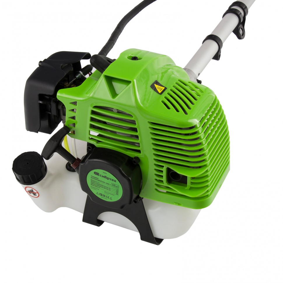 Бензиновый триммер Сибртех БКС-2500-2 96244 с разъемной штангой из 2 частей, с двигателем объемом 43 куб. см и мощностью 2,5 л. с., предназначен для бытового и сельскохозяйственного использования. С его помощью легко можно подстричь газон, избавиться от сорняков и бурьяна или заготовить сено. В комплекте леска и трехлопастный нож, поэтому триммер подходит как для ухода за дачным участком, так и для облагораживания запущенных территорий. Мощный бензиновый двигатель обеспечивает высокую скорость вращения шпинделя 9500 об/мин, что позволяет эффективно справляться даже с густыми зарослями. Ширина скашивания леской составляет 42 см, ножом — 25,5 см, что позволяет быстро обрабатывать участки большой площади.