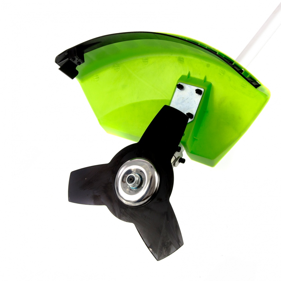 - Безопасность пользователя — прочно закрепленный кожух надежно защищает от летящей травы и веток.