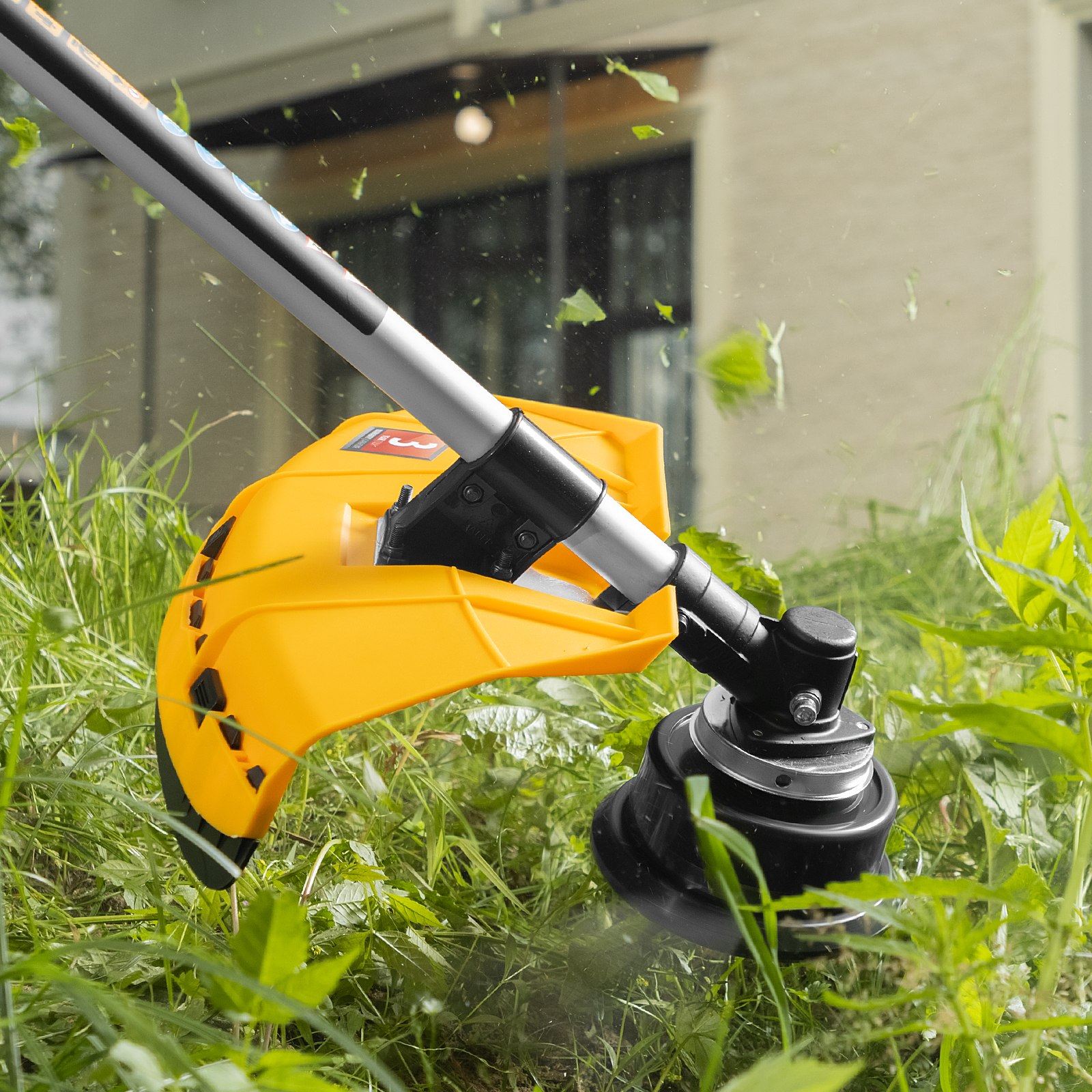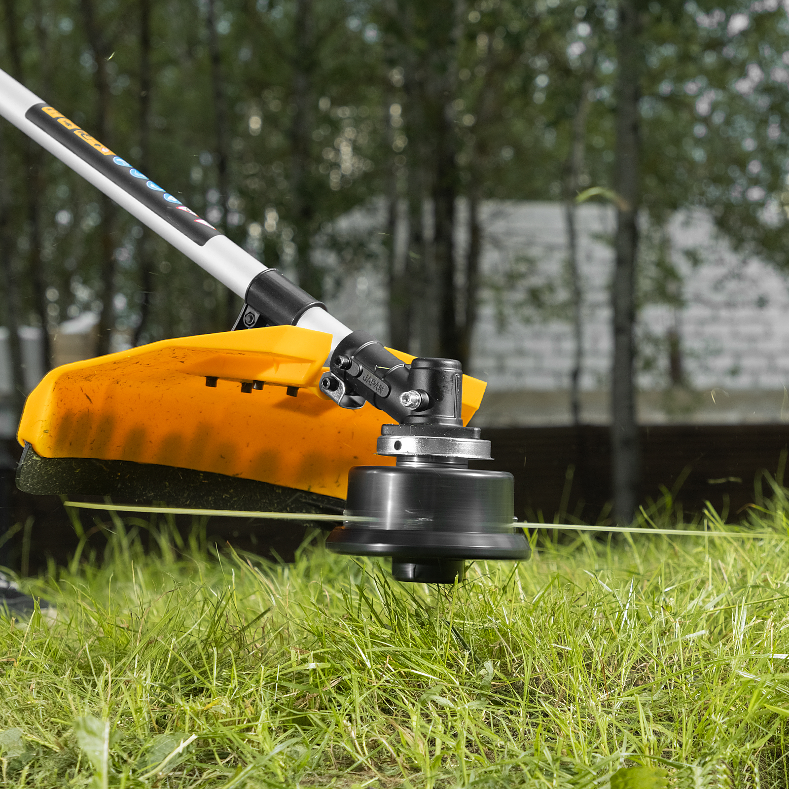 - Безопасность — прочный пластиковый кожух защищает пользователя от вылетающей травы и мелких частиц.