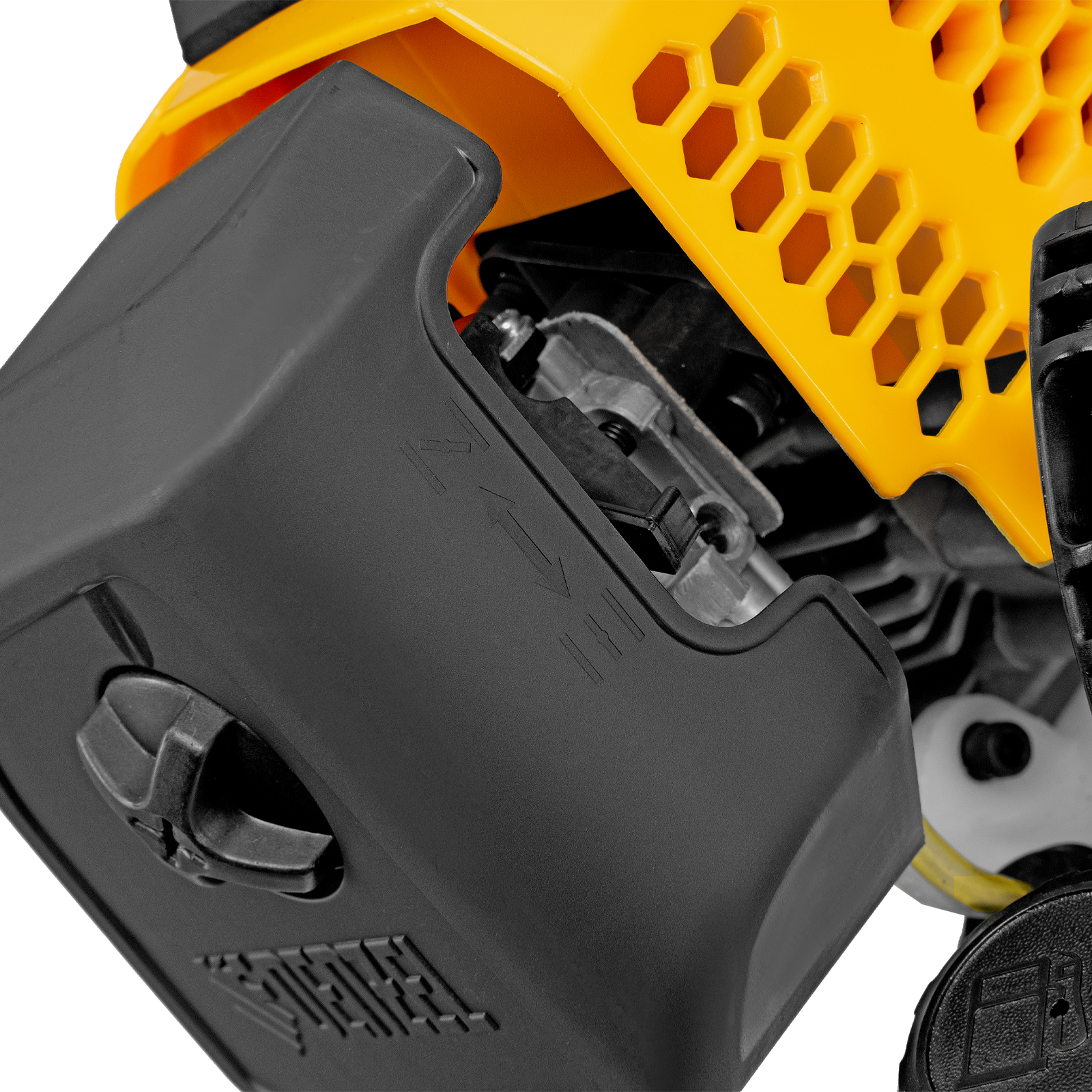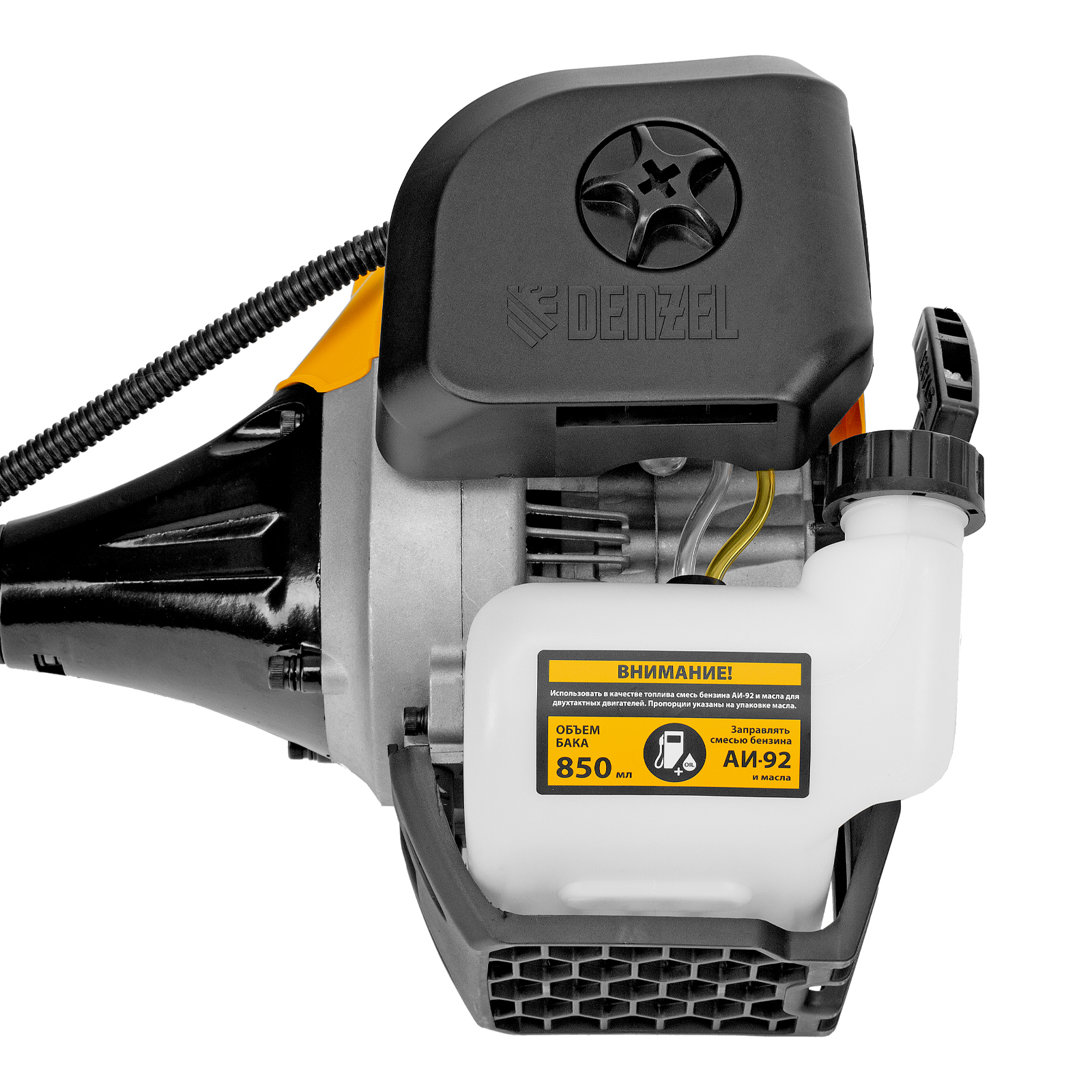 - Полупрозрачный топливный бак — пользователь сможет отслеживать уровень бензина и своевременно заправлять инструмент.