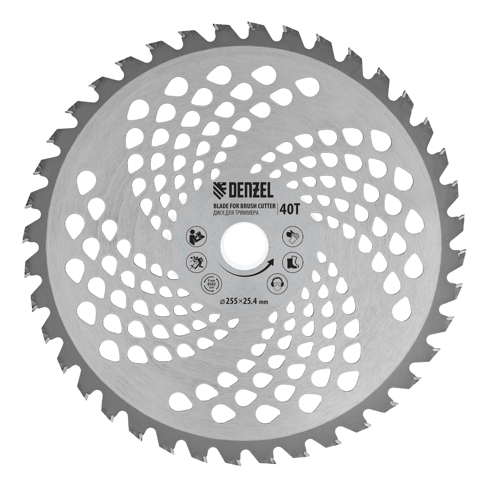 - Дополнительные возможности — можно приобрести и установить на триммер диск Denzel 96323 для быстрого удаления растительности с жесткими стеблями, 96328 для скашивания молодых побегов кустарника диаметром до 3 мм
