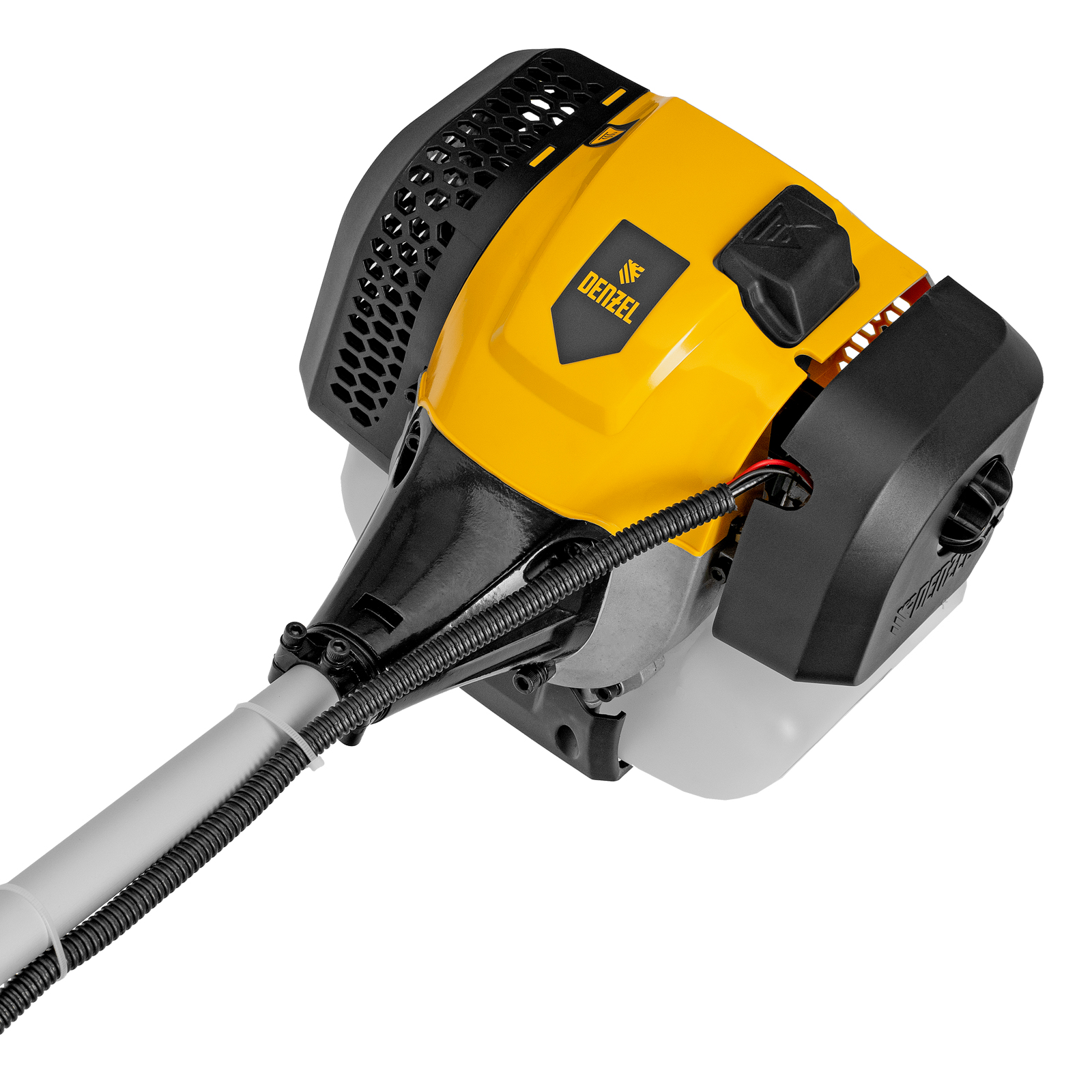 Бензиновый триммер Denzel DGT-520 96238 с неразъемной штангой состоит из 2 частей и оснащен мощным двигателем объемом 52 см3 и мощностью 3 л. с., при этом отличается легкостью и экономичным расходом топлива. Детали двигателя покрыты хромом, что значительно увеличивает ресурс инструмента. Усиленная катушка из полиамида, трехлопастный нож и пильный диск позволяют легко справляться со скашиванием травы всех типов, в том числе с жесткими древовидными стеблями (полыни, крапивы, лебеды, борщевика), а также срезанием кустарника и молодых побегов деревьев с диаметром стволов до 10 мм. Триммер удобен для работы в недоступных для колесной косилки местах. Хорошая сбалансированность инструмента, современная антивибрационная система, подвесной двухплечевой ремень и удобное управление позволяют работать с комфортом даже продолжительное время.