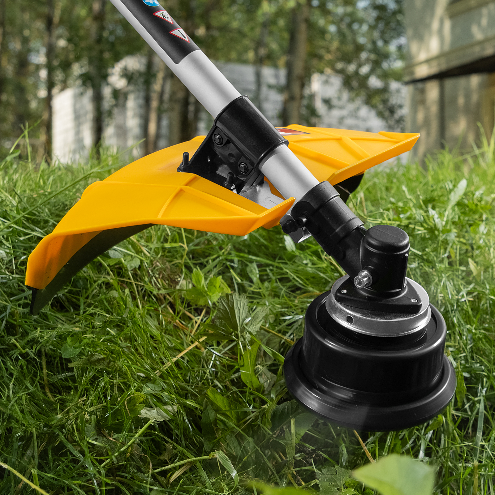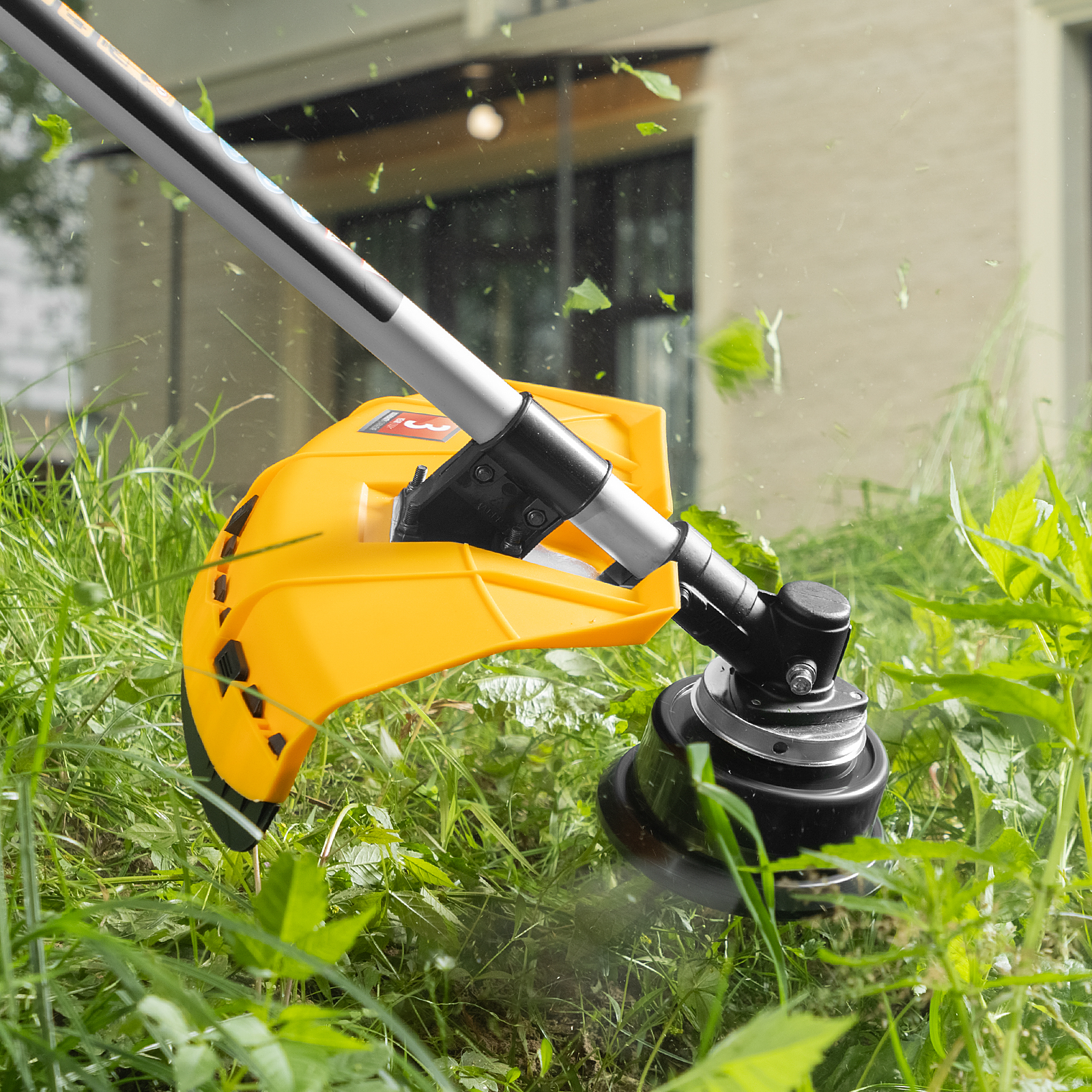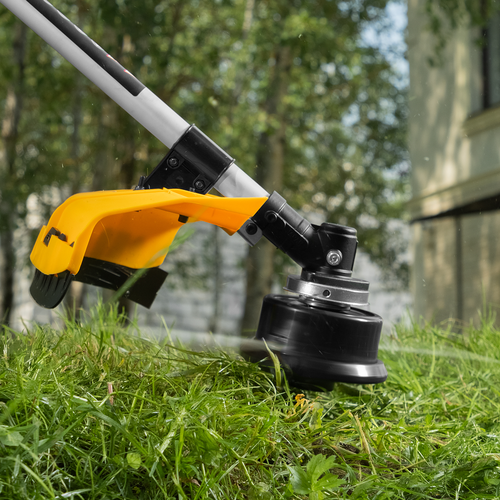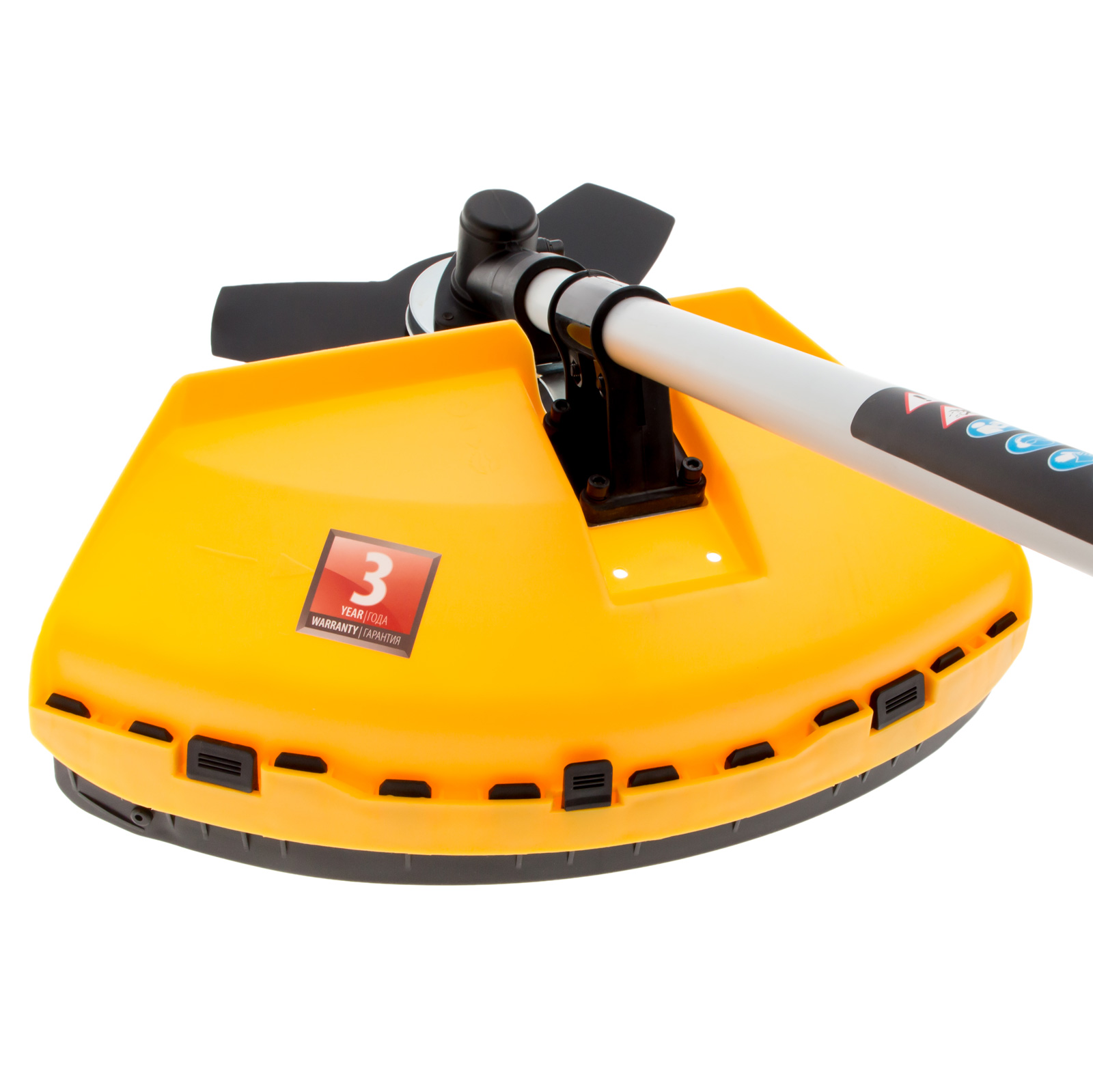 - Автоматическое подравнивание лески — лишний корд отсекается ограничительным ножом, расположенным на защитном кожухе, что позволяет избежать перегрева и перегрузки двигателя.