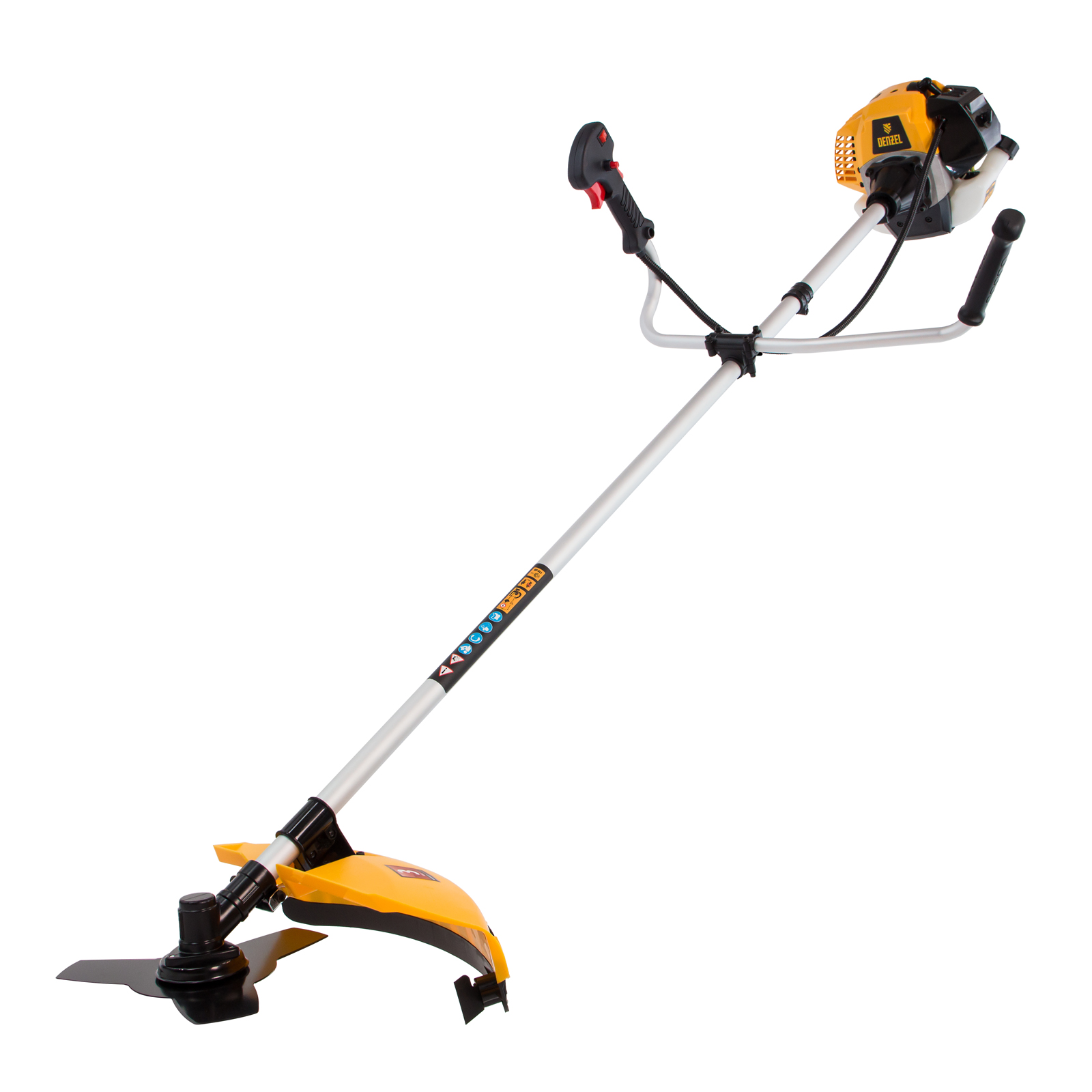 Бензиновый триммер Denzel DR-52 96275 с двигателем объемом 52 см3 и неразъемной штангой состоит из 2 частей и предназначен для ухода за газоном и формирования у него ровных границ, скашивания травы различных типов, в том числе с жесткими стеблями (полынь, крапива, лебеда). Эффективное решение этих задач обеспечивают режущие насадки — трехлопастный нож из стали и усиленная катушка из полиамида с леской. Они вращаются со скоростью 9500 об/мин, ширина скашивания составляет 25,5 и 42 см. Данная модель является самой производительной из линейки DR. Двигатель мощностью 3 л.с. обеспечивает уверенную работу даже на сложном рельефе.