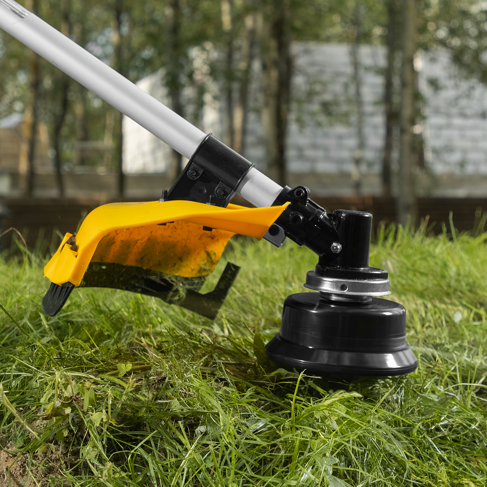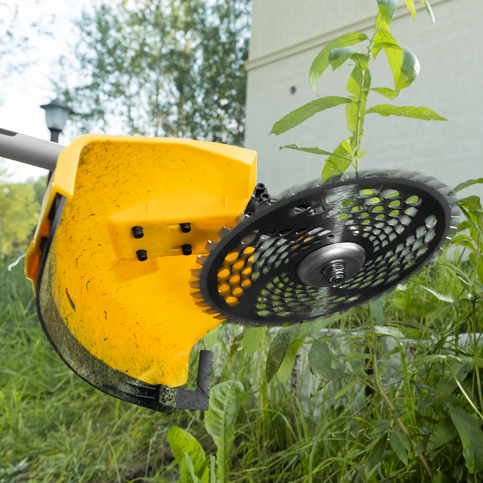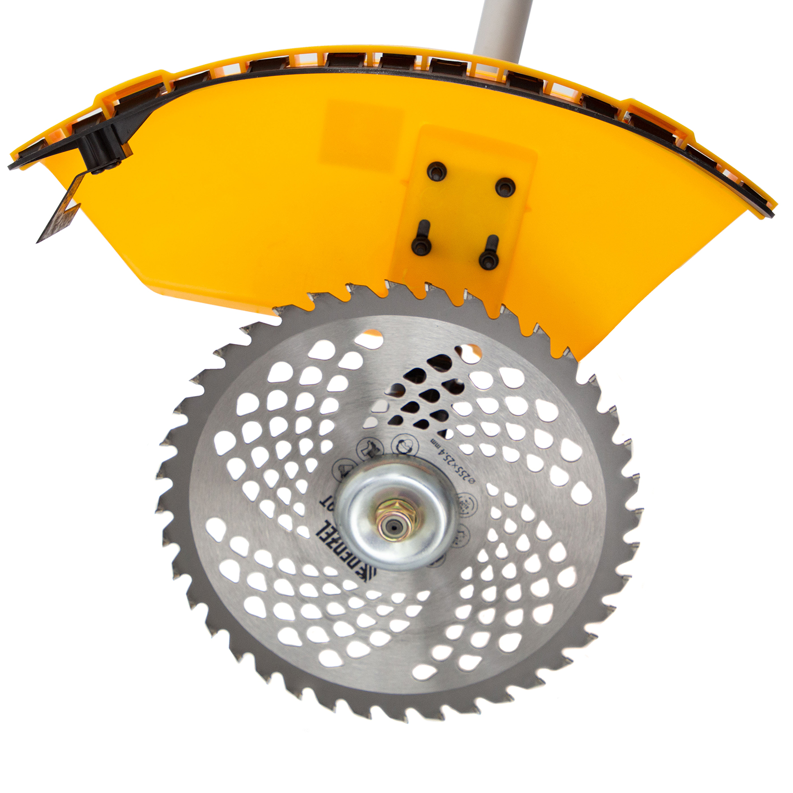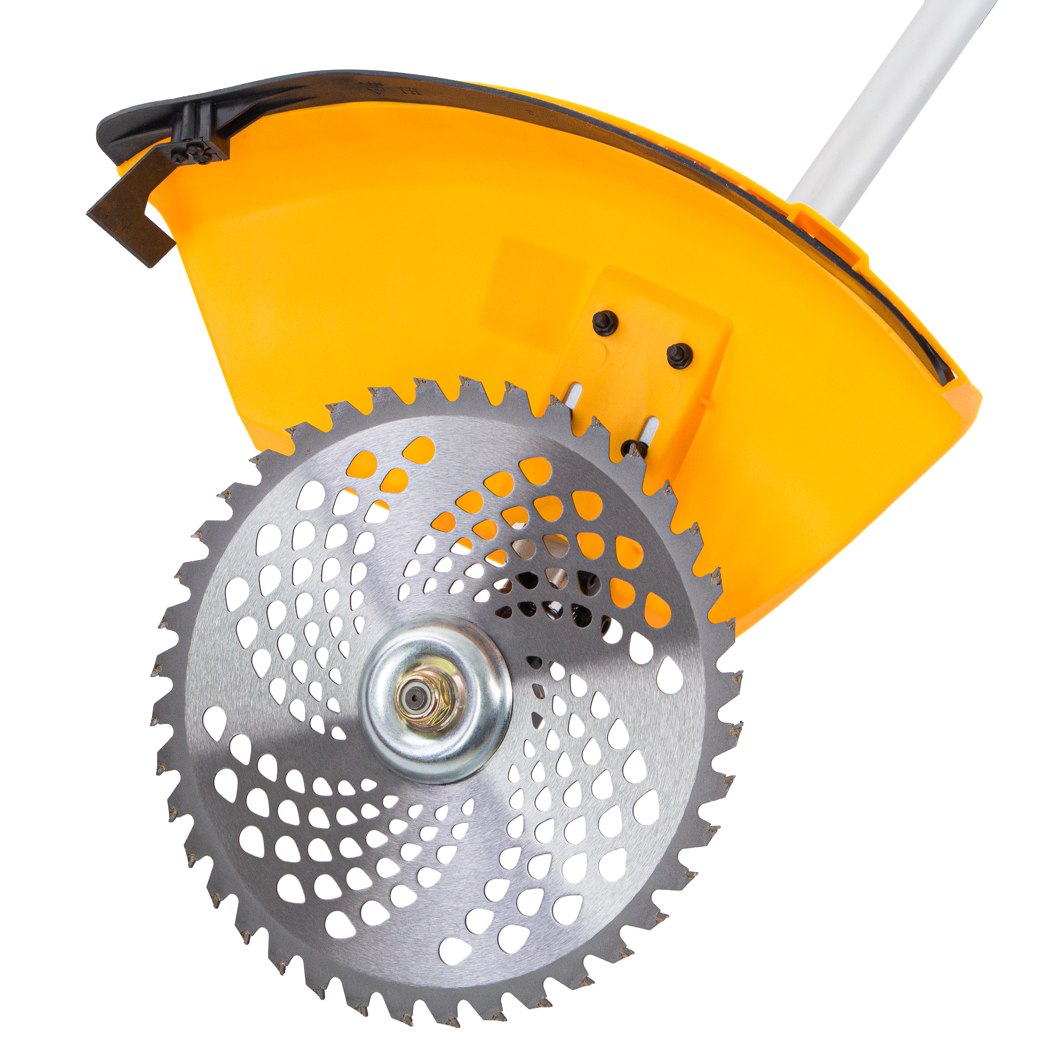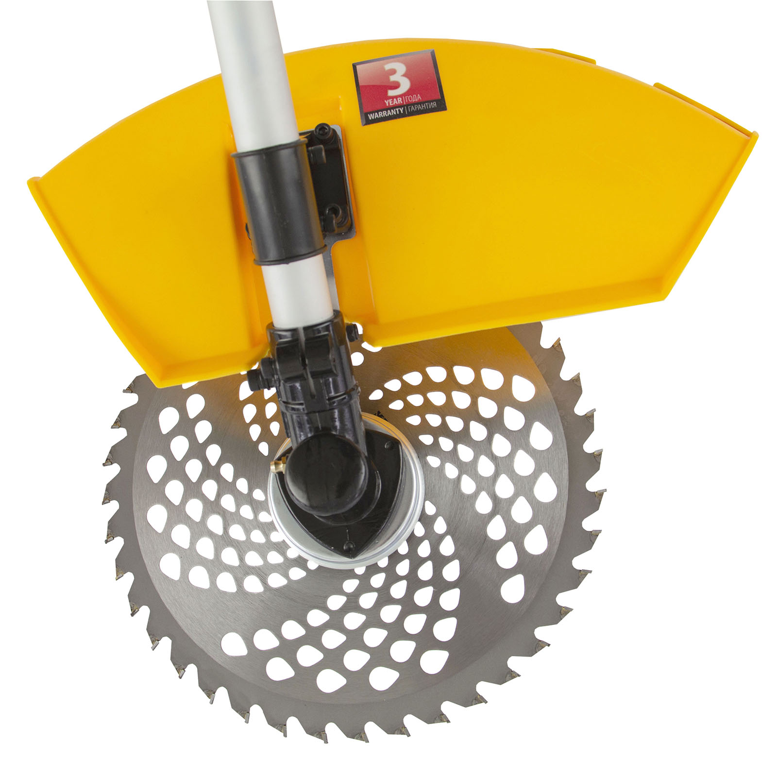 - Безопасность — кожух из прочного PA-пластика защищает пользователя от вылетающей травы, камней, веток и мелких частиц.