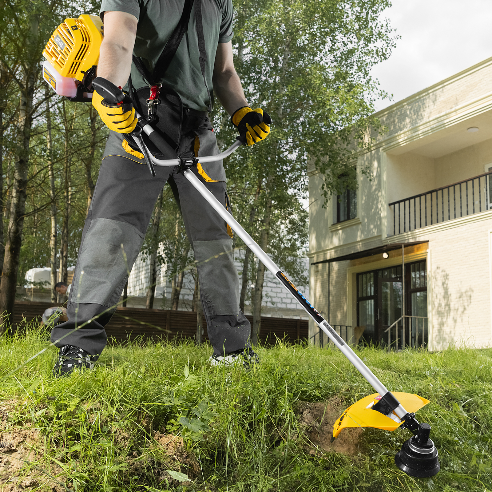 - Уменьшенная нагрузка на плечи и спину — триммер комплектуется одноплечевым ремнем с защитой бедра.